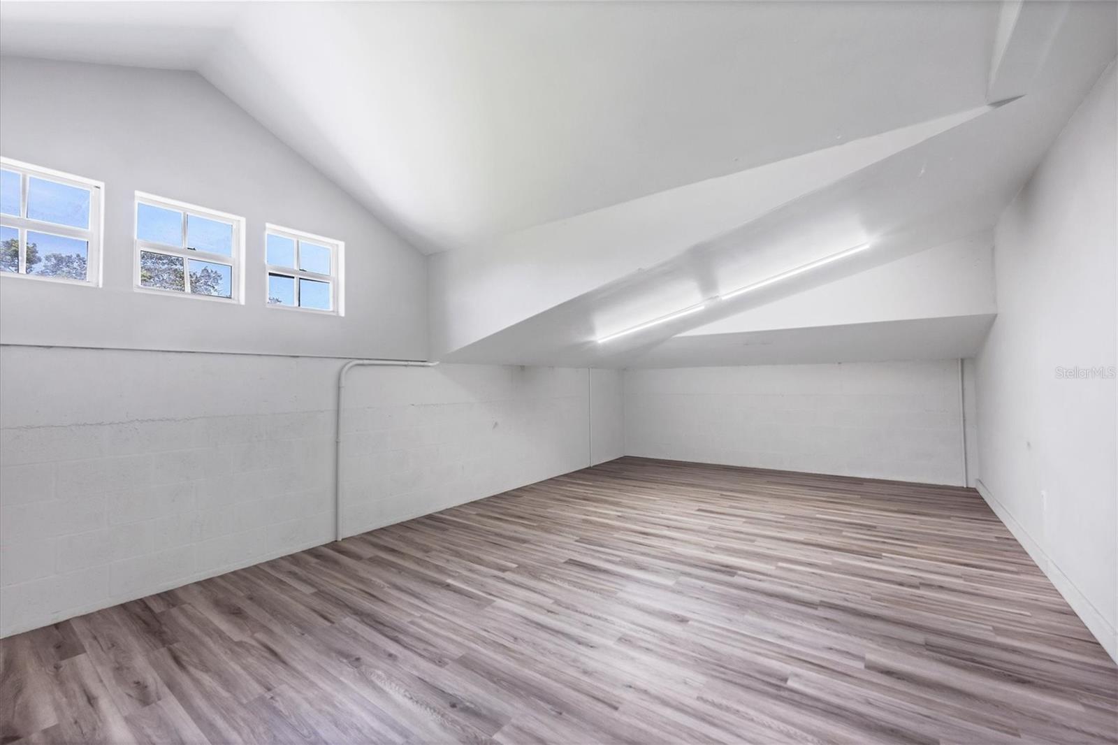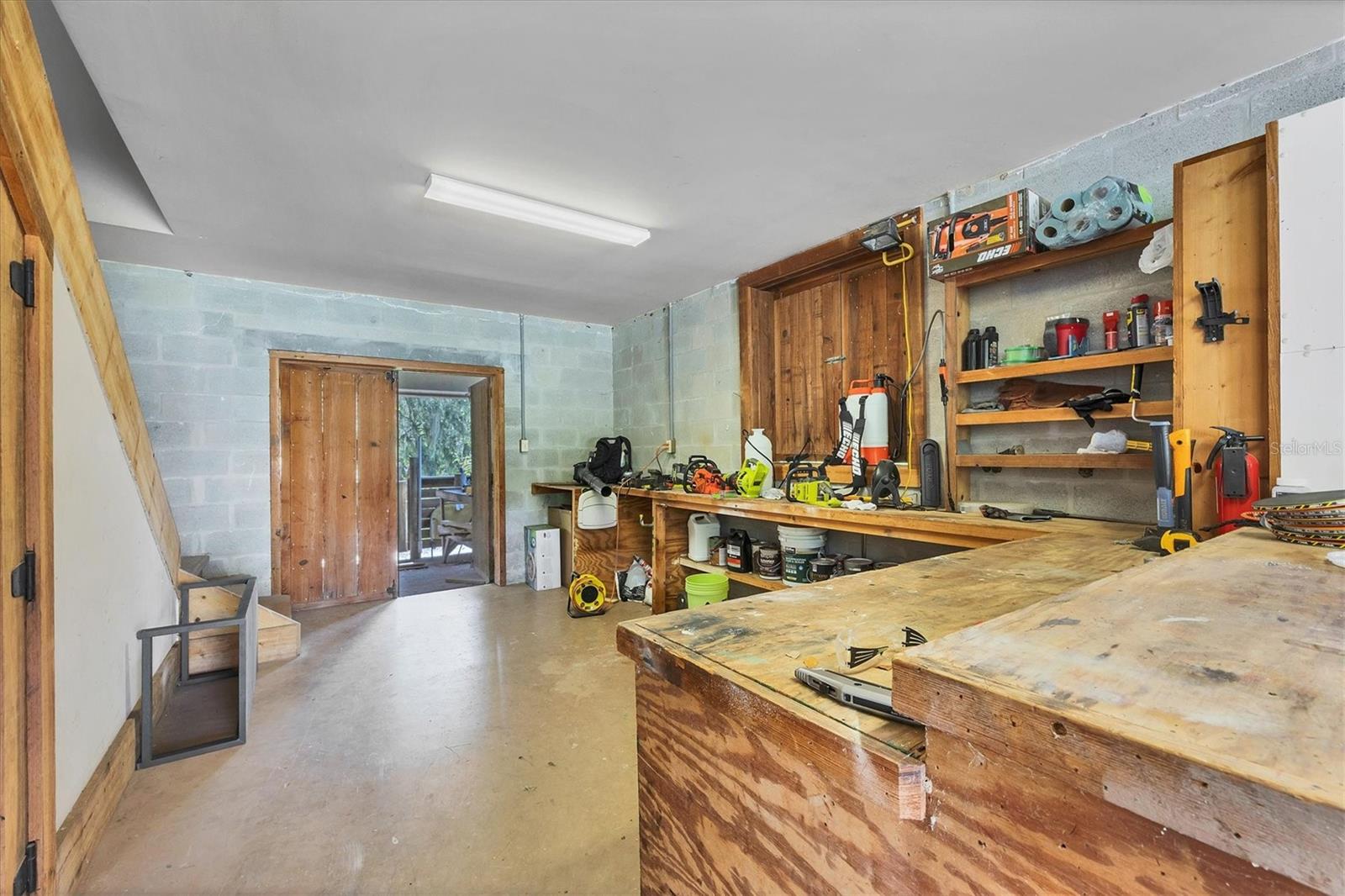 includes workbenches, a half bath, and a climate-controlled upstairs room--ideal for a home