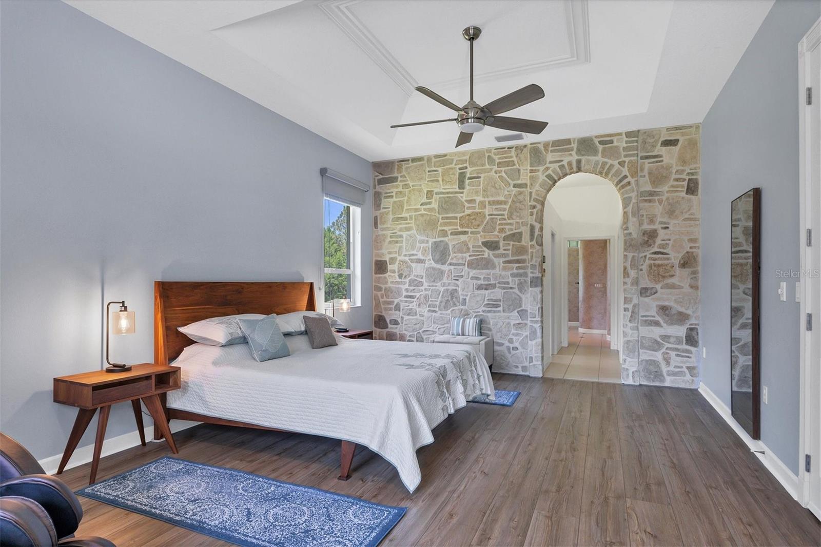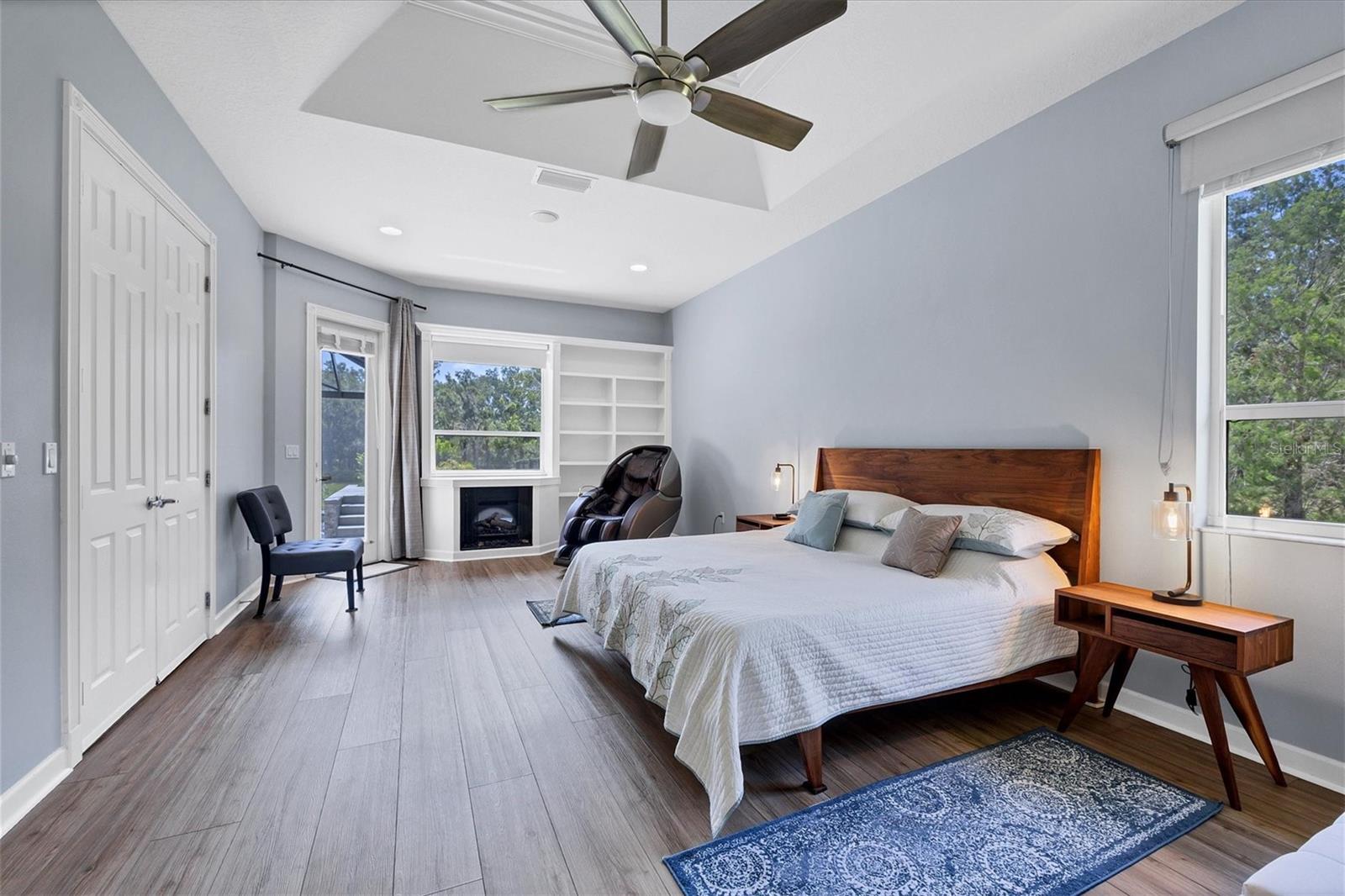 The first-floor owner's suite is a true retreat, featuring a spacious walk-in closet, built-in storage,