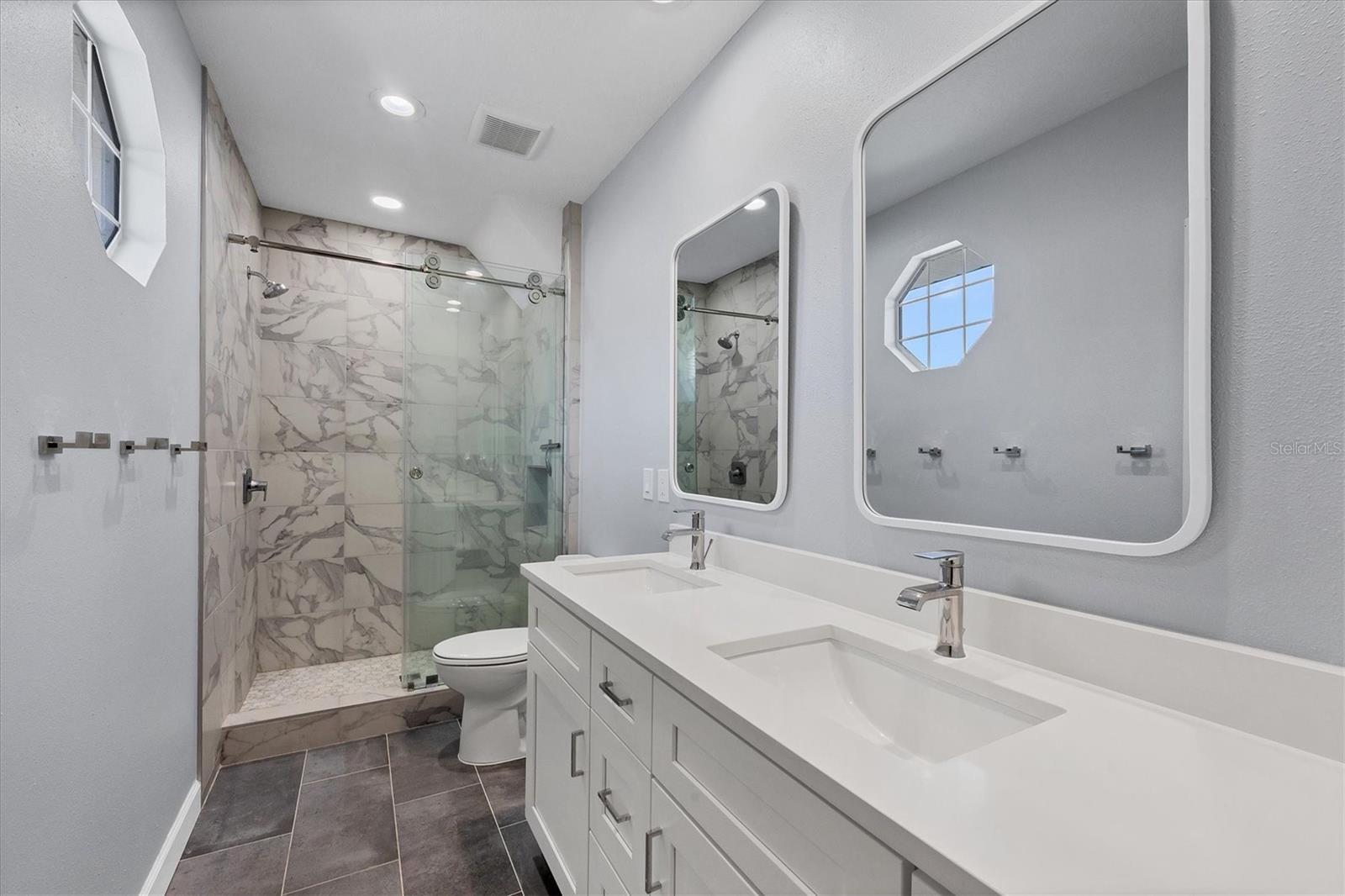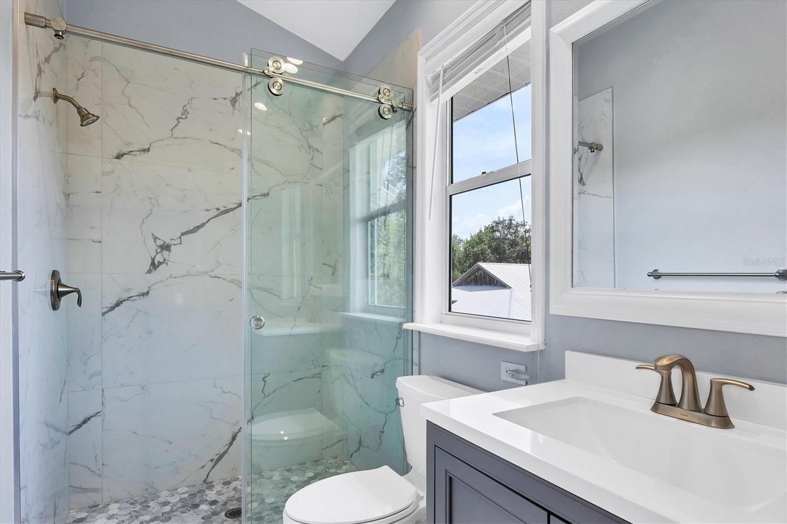 a claw-foot tub, and a walk-in shower. Upstairs, the three additional bedrooms provide unique features