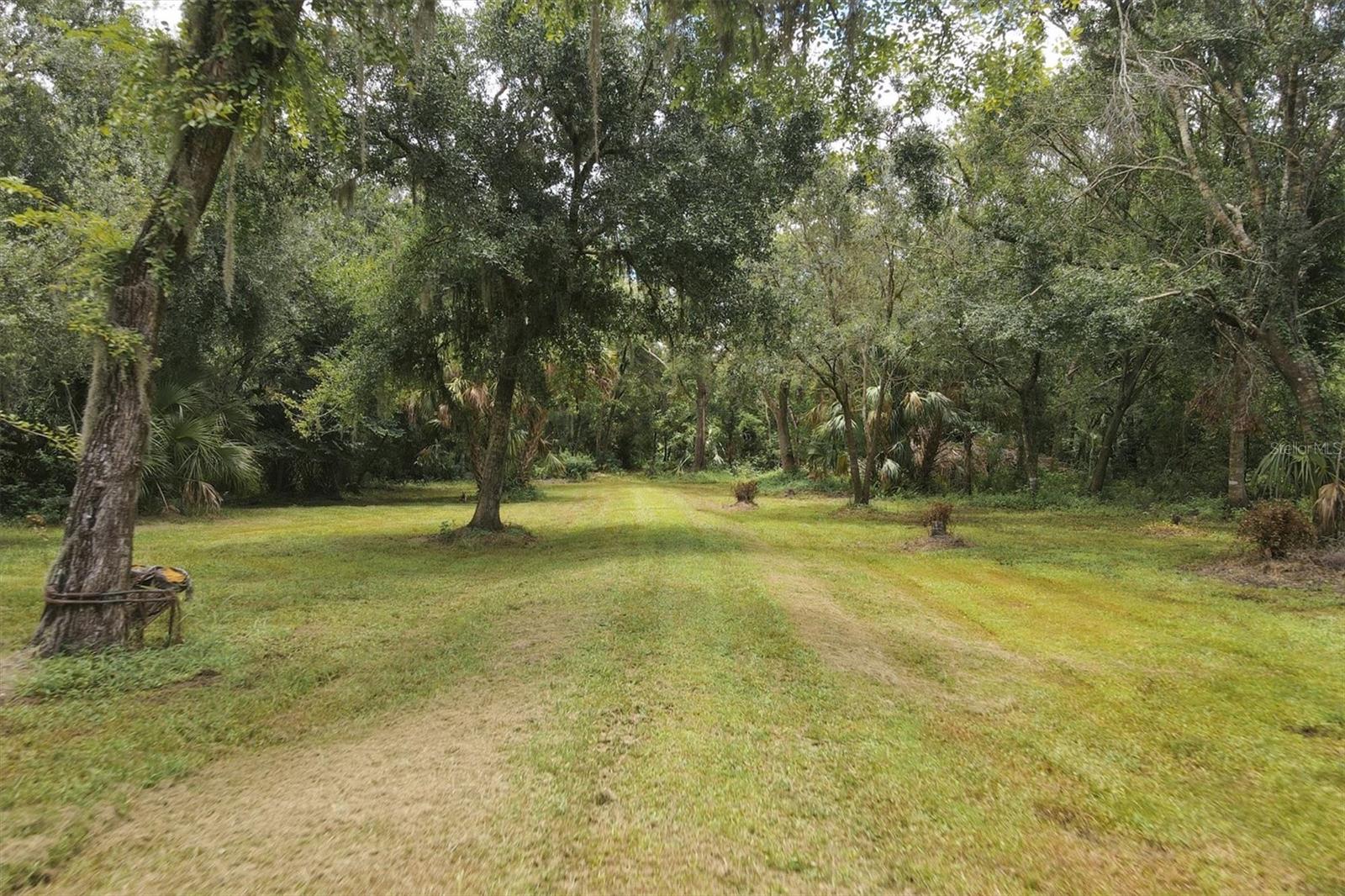 Outside, mature trees and a dry creek bed create a secluded, natural escape. A 31' x 40' block