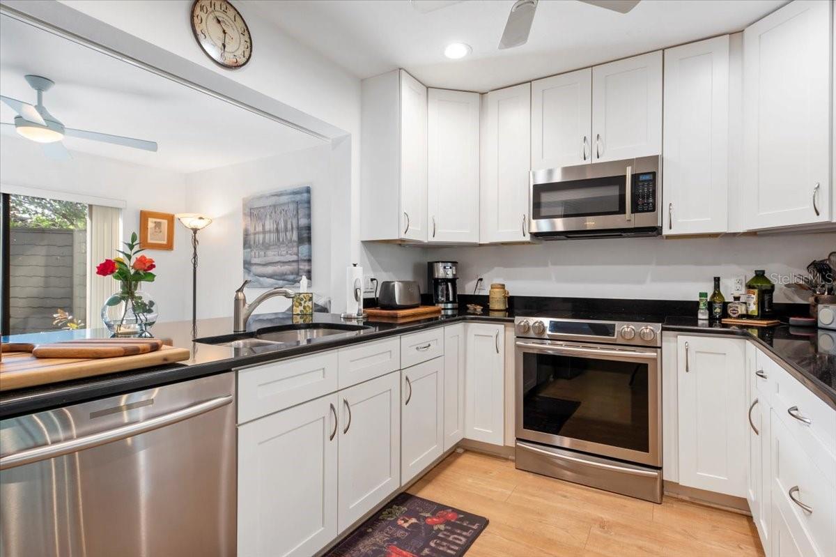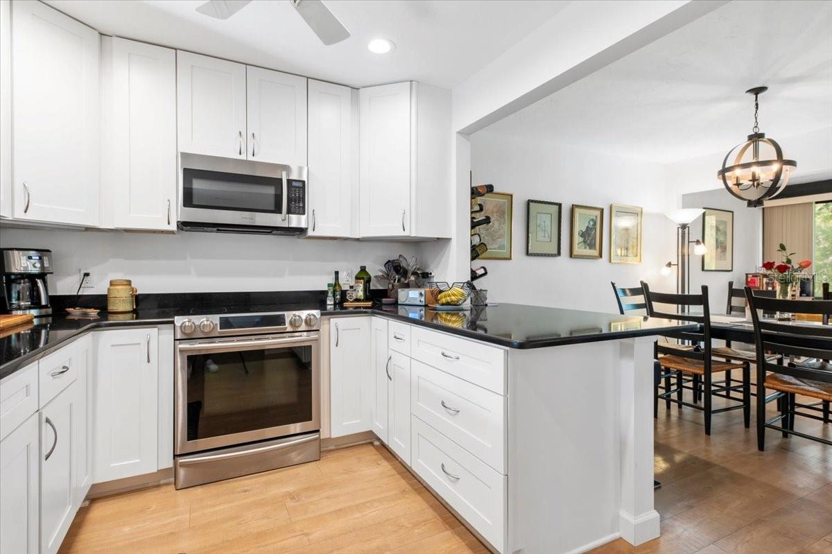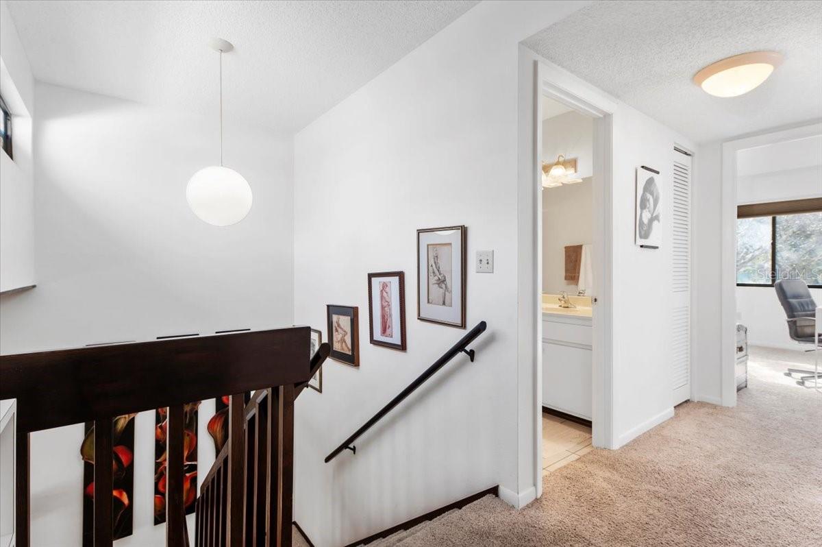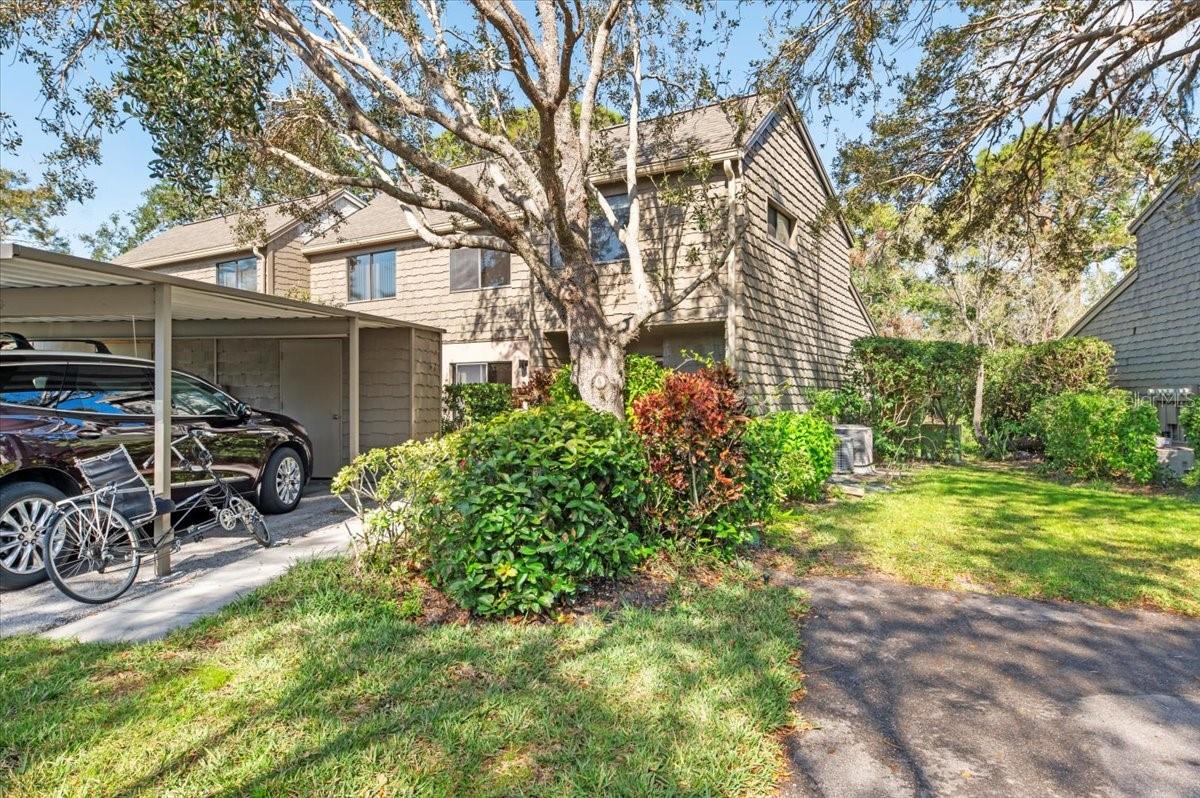 This 3-bedroom, 3-bath treehouse is the epitome of gracious living. Its blend of open concept and generously sized rooms, soaring cathedral ceilings, abundant light and storage, front and back patios and a screened-in sitting area off the primary upstairs bedroom make this a stylish and welcoming home. In addition, there's a downstairs family room/den, a separate laundry utility room, and a secure external storage shed and covered carport. A thoughtful renovation in resulted in a completely remodeled kitchen and flooring throughout. Upon entering, you will immediately be enchanted by the opened kitchen walls, laminate flooring throughout and the sun beaming through the back window wall will further draw you in. This lovely residence is well-situated within the lush beauty of this popular condo enclave--just steps from its front patio is the Harbor house and lap pool. To sum up, if you are looking for wonderful home where you can entertain, host family and friends, and enjoy the warm community of Pelican Cove with its myriad of activities and cultural events, your search ends here.