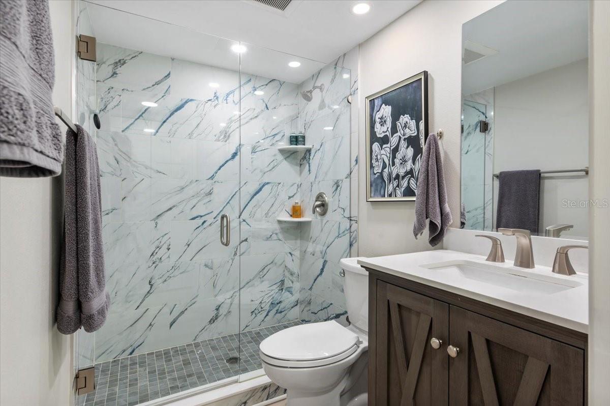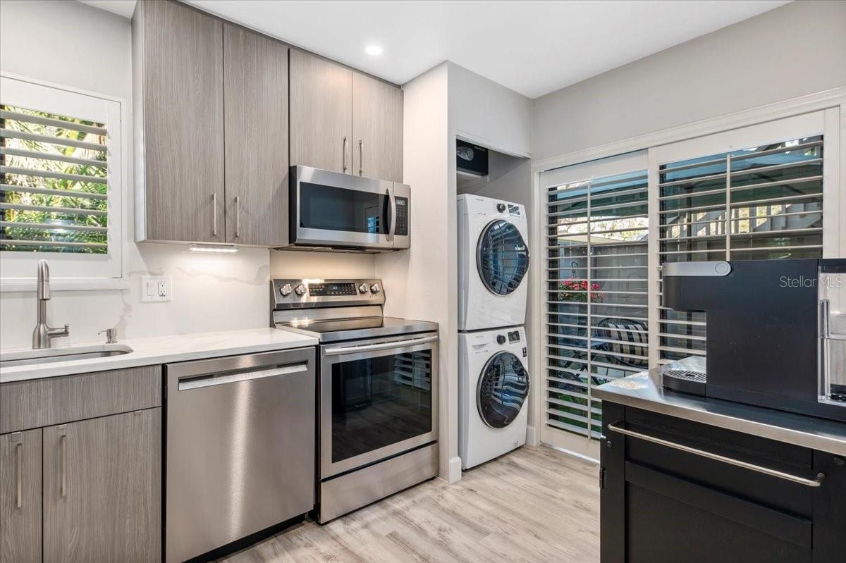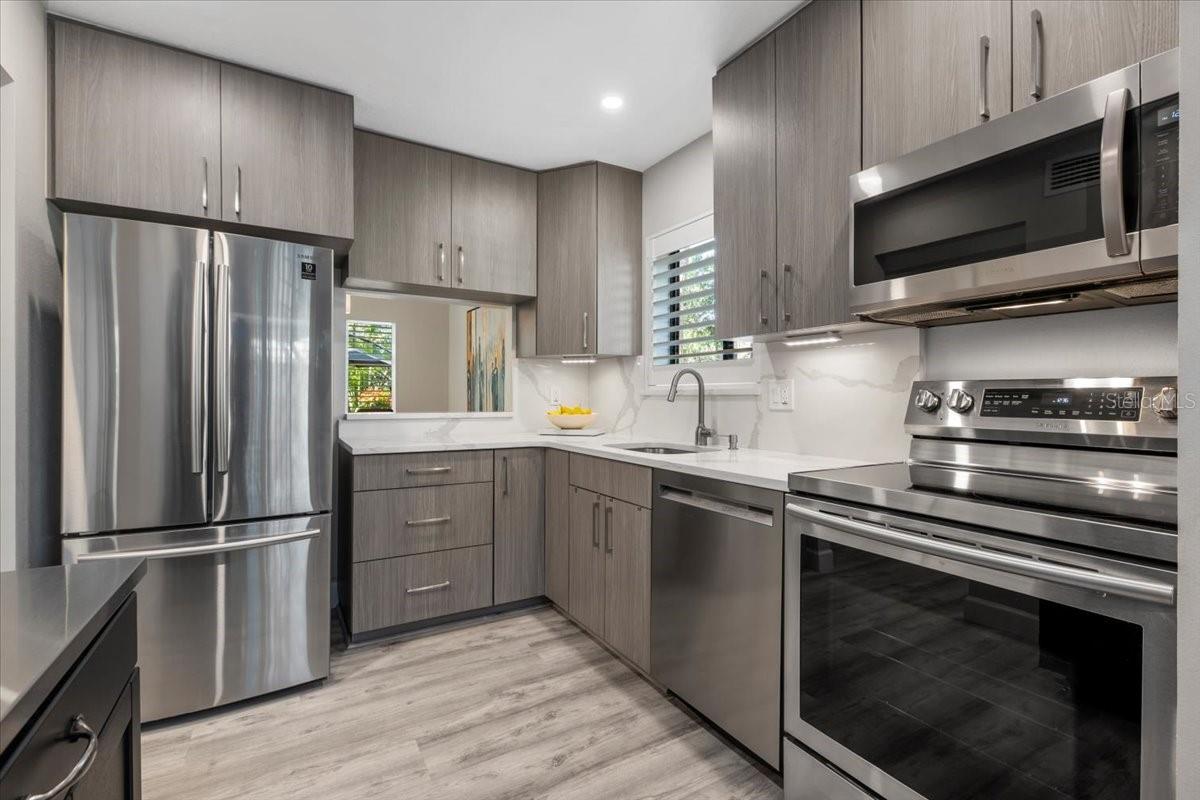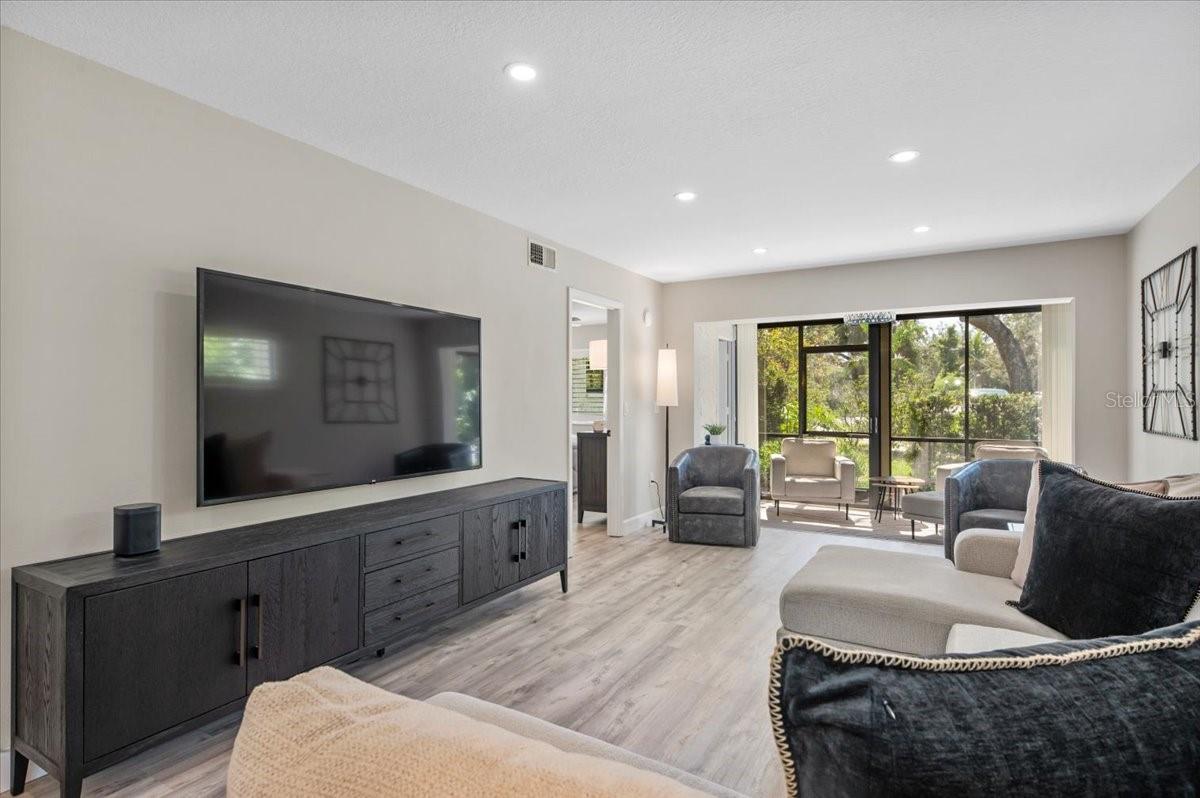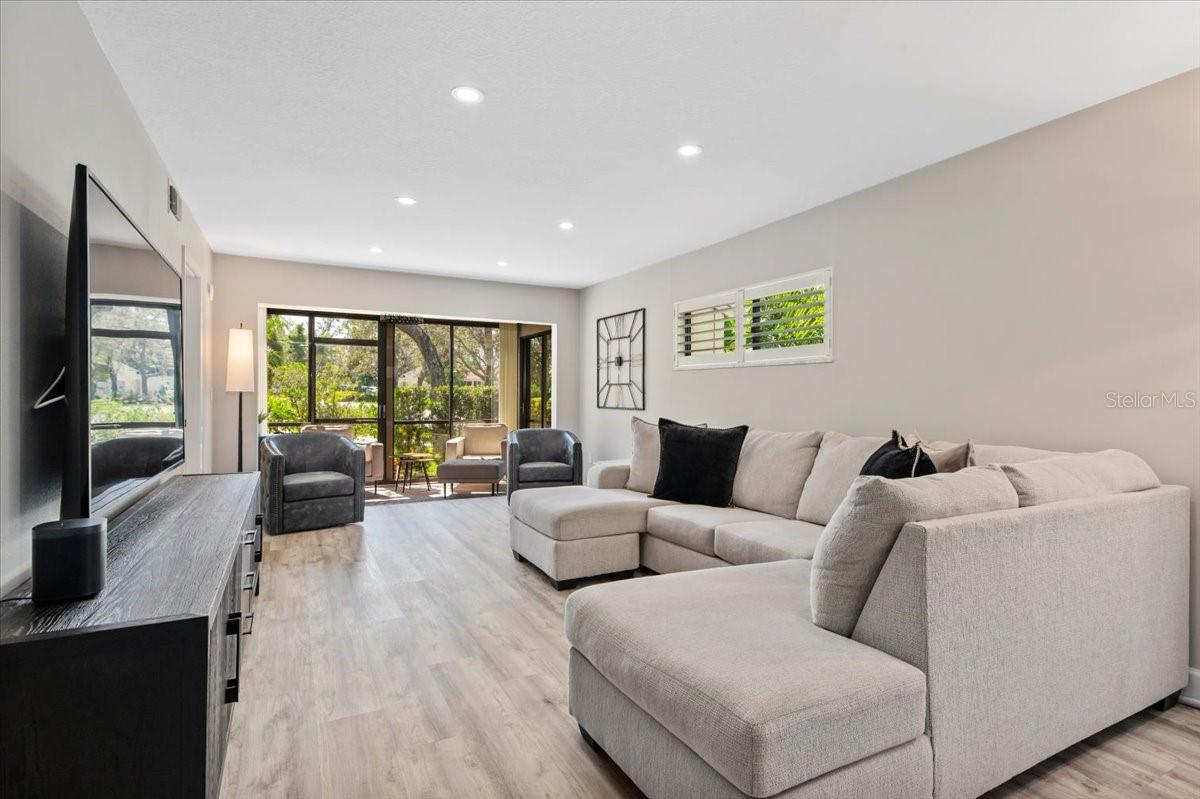 Experience the epitome of coastal living in the Pelican Cove, everything in this condo is exquisitely done and no expense was spared with new flooring throughout, new lighting, updated bathrooms, new kitchen with all new appliances, sink, lighting, counters and backsplash. Revel in the natural light that pours in through the side/end windows, illuminating the craftsmanship within. Unwind (or entertain) on your glass-enclosed (1) lanai space, (2) front OR (3) side private courtyard. Spread across 75 acres of pristine, gated waterfront property, Pelican Cove is a tropical oasis teeming with amenities. Discover an 86-slip boat harbor, six heated swimming pools, a hot tub, three clubhouses, lighted tennis and pickleball courts, shuffleboard, basketball, dog walking areas, and over 5 miles of walking trails/boardwalks. Unleash your creativity with art studios, a pottery classroom, woodworking, and sculpting, or attend classes at Pelican Cove University. This community also offers evening jazz and classical music concerts, ensuring an enriched lifestyle for all.