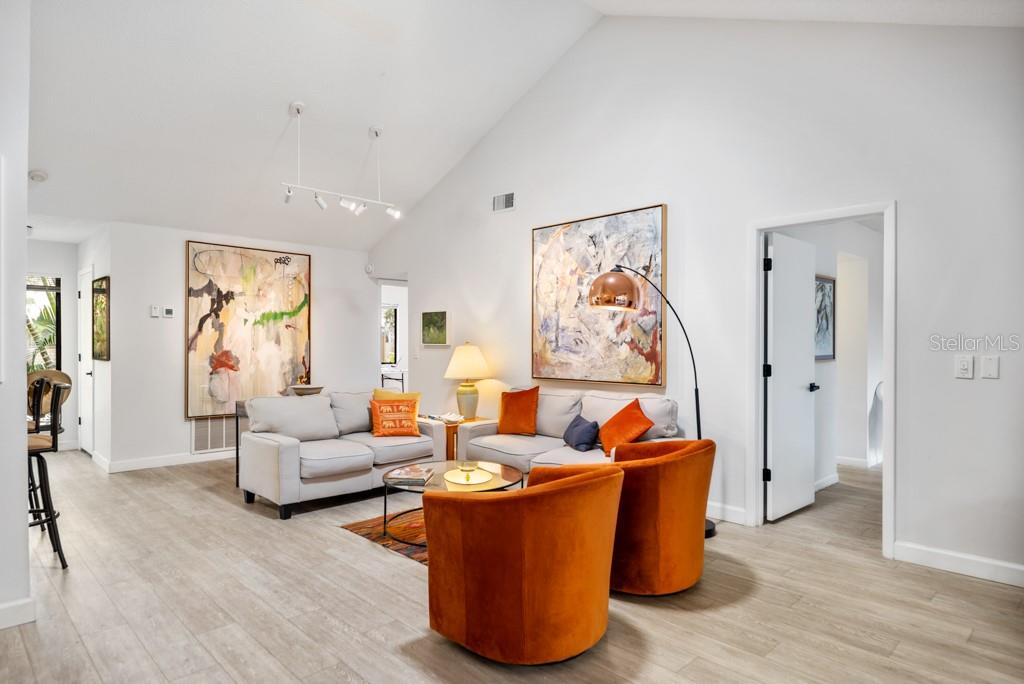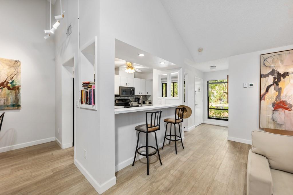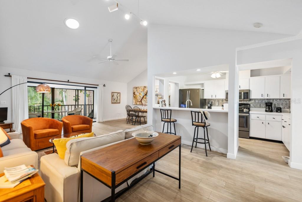 It is easy to enjoy the beauty of coastal waterfront living in Pelican Cove and this 2 bedroom/2 bath condo. The open floor plan with high ceilings and natural light/skylights creates a spacious and inviting atmosphere. The split floor plan includes a master bedroom with updated bathroom, walk-in closet and upstairs attic space for additional storage as well as luxury vinyl flooring throughout. As you drive past the gate, the lush tropical setting, fruit trees, bird watching and manatee sightings in the harbor will offer instant serenity and relaxation. Amenities include art studio, woodworking shop, sculpting garden, 6 pools, yoga, tennis, pickleball, water aerobics, biking, new exercise room and kayak launches to name a few activities. Enjoy an impressive offering of performing arts, annual art show, cinema & culinary club, bridge and fiber arts club.
