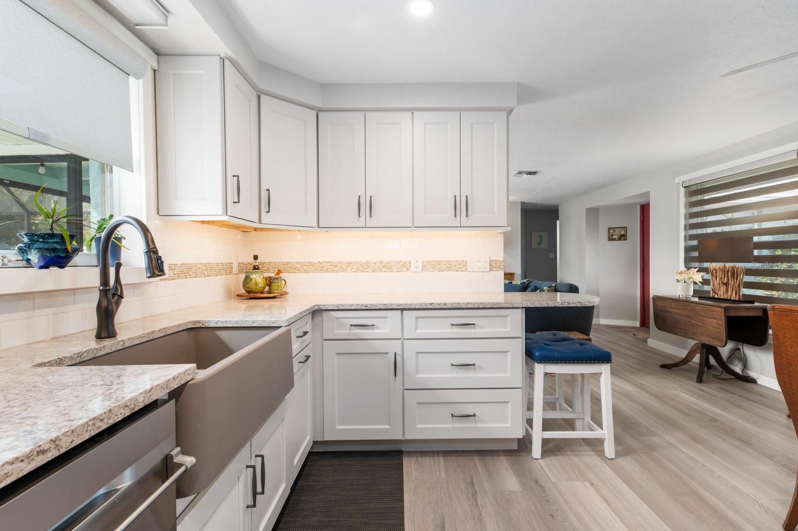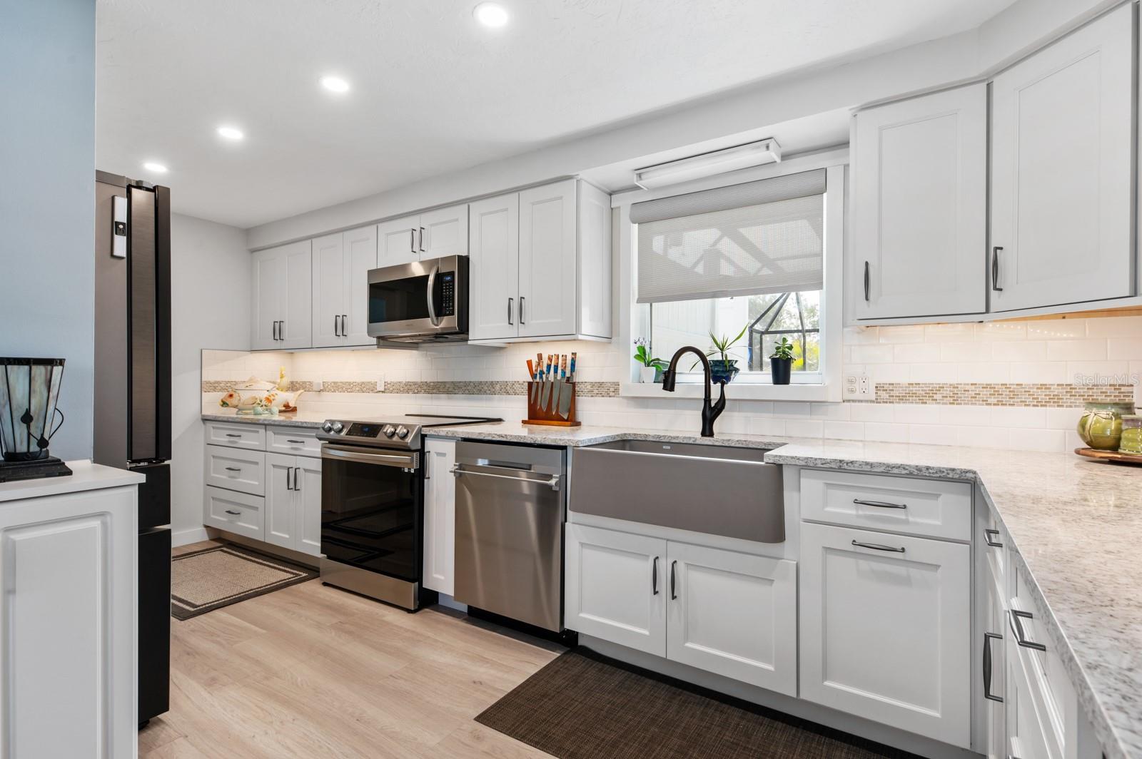 Experience the epitome of coastal living within Tropical Shores Community, Sarasota's most affordable boating community. NO HOA/DEED RESTRICTIONS. 1728 Bayonne with been exquisitely remodeled and no expense was spared. Modern conveniences abound within this 2 bedroom/1 bath POOL home including BRAND new A/C system, tankless water heater (2023), luxury-vinyl flooring and Terrazzo flooring throughout, new Kitchen Cabinetry/Countertops/Backsplash (2020), Samsung Bespoke appliances (2023), Deluxe window treatments (2023), built-in Dining Room storage cabinets (2023), outdoor shower installed (2020), tankless water heater (2023) and New Roof (2023). Only a short walk away from the community's private marina and clubhouse. Membership is optional but there is a boat launch that provides quick access to the bay by kayak, canoe or boat. Just minutes away from our #1 beach, Siesta Key, Sarasota Square Mall and fine restaurants. No HOA fees or any other fees. Neighborhood club membership allows members access to indoor/outdoor clubhouse facilities. Boat/kayak ramp and boat slips available for nominal YEARLY fees.