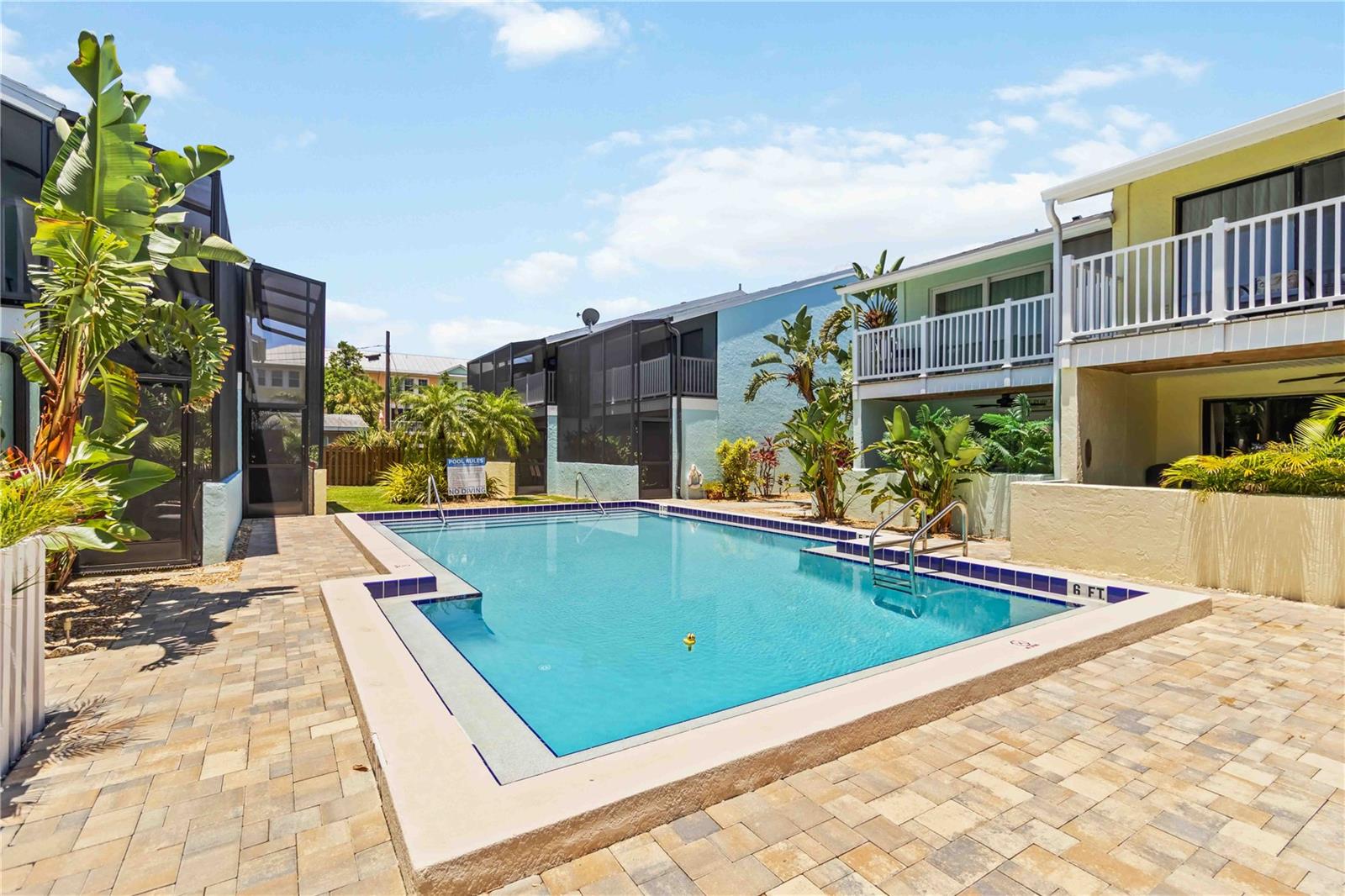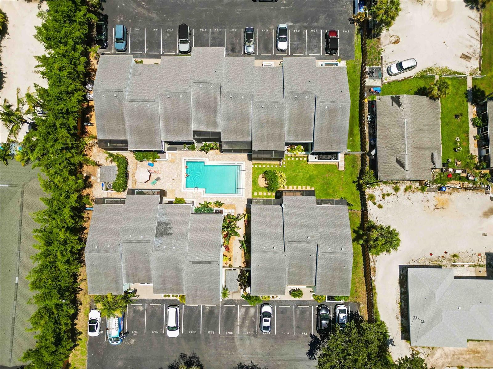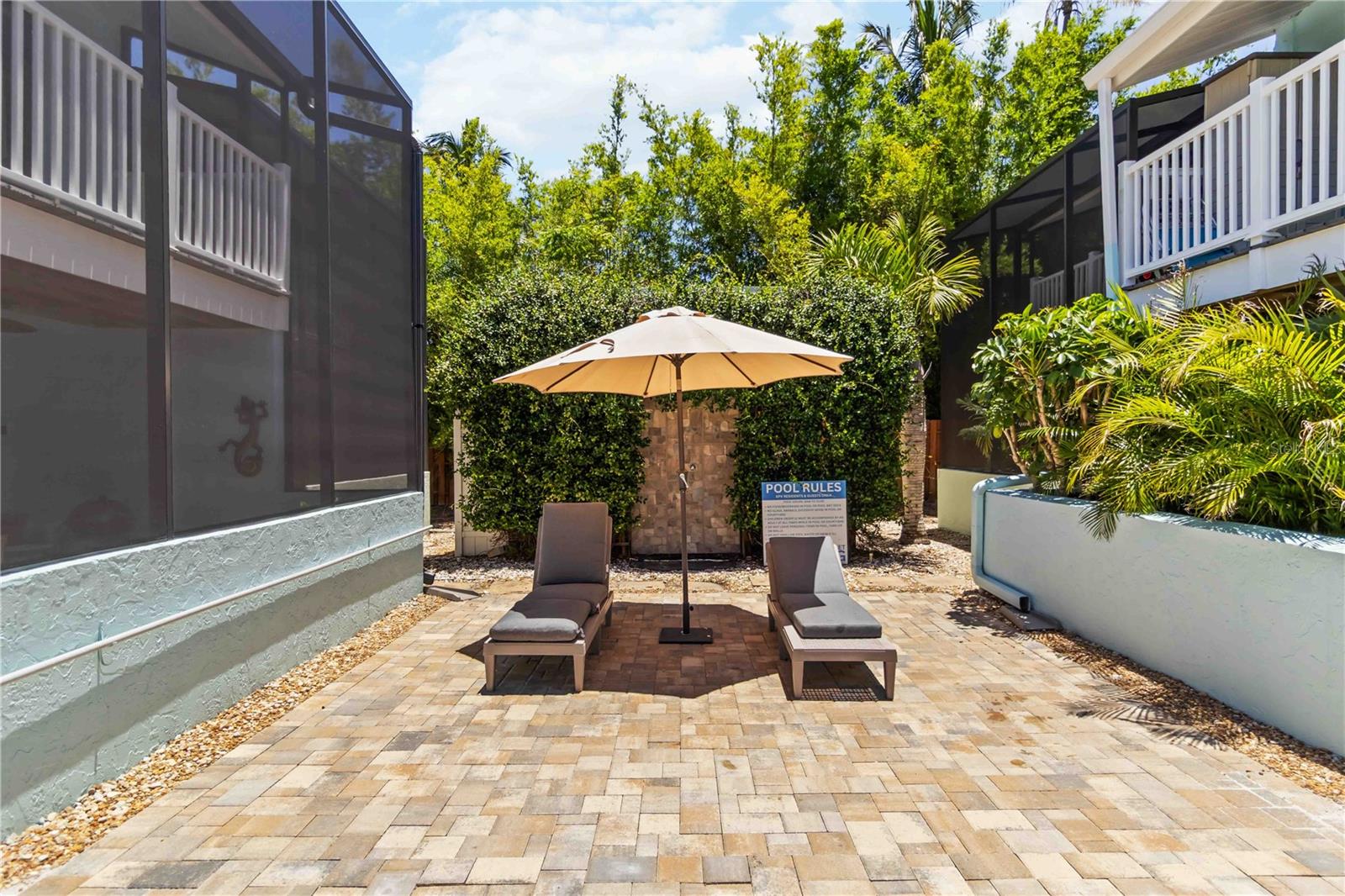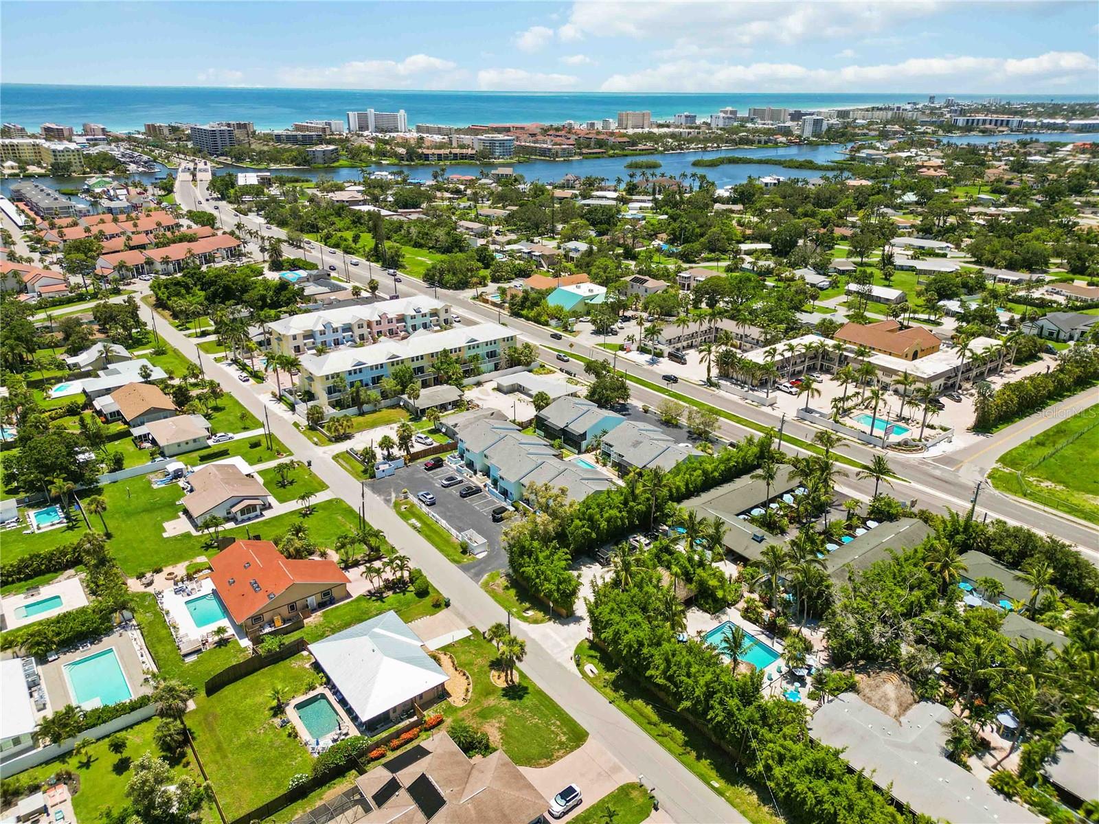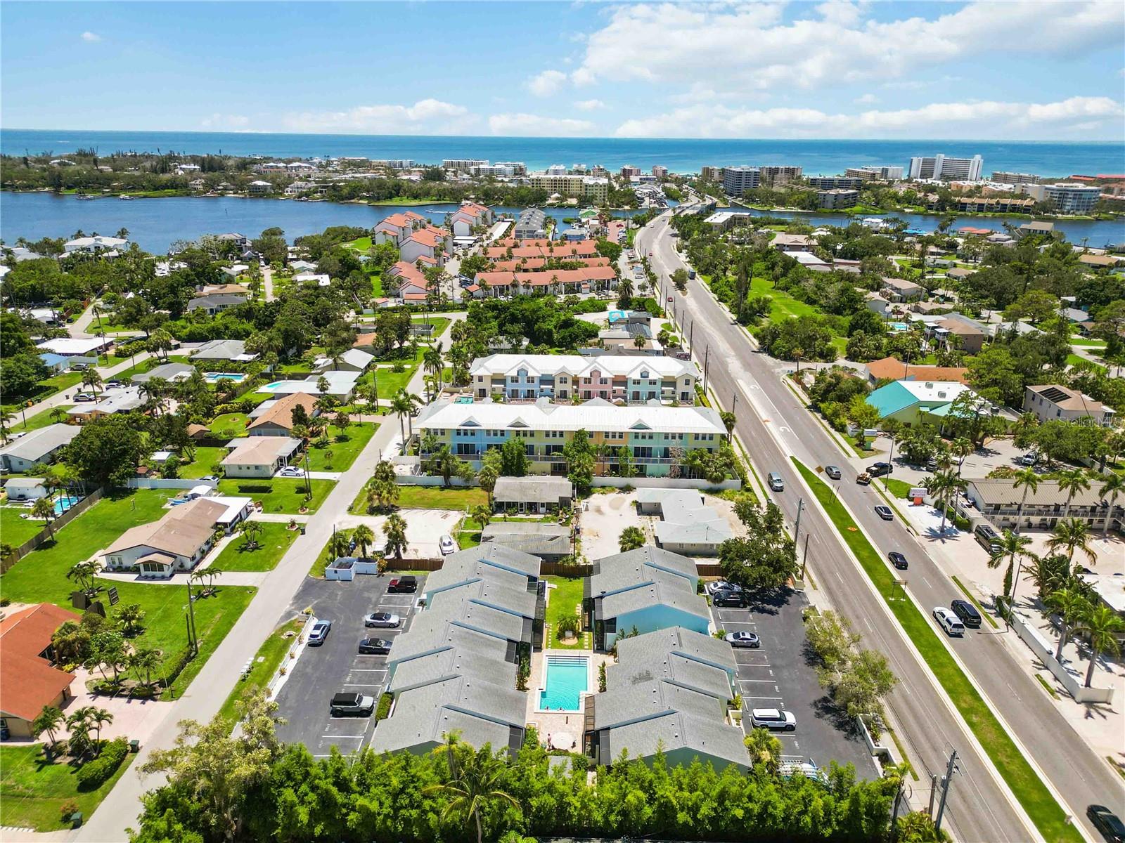 Welcome to Key Point Village, a peaceful, pet-friendly enclave located just over the South Bridge from world-renowned Siesta Key Beach. This rarely available 2-bedroom, 1.5-bath townhome-style condo offers over 1,000 square feet of stylish, updated living space across two levels--perfect for full-time residents or seasonal escapes. Step inside to find an open floorplan with modern finishes, including vinyl and tile flooring throughout. The kitchen is a showstopper with a large center island, sleek countertops, and stainless steel appliances. An adjacent dining space flows seamlessly into the living room, which features an electric fireplace and sliding glass doors leading to the oversized screened lanai--ideal for morning coffee or entertaining guests. Upstairs, you'll find both spacious bedrooms with built-in closets and access to a full bath. The primary bedroom offers direct access to a screened-in balcony overlooking the pool--perfect for morning coffee or winding down at sunset. A convenient half-bath is located downstairs for guests and everyday use. This unit comes with two assigned parking spaces, and the community offers a heated pool just steps from your lanai surrounded by lush, tropical landscaping. Enjoy peace of mind with hurricane rated windows and doors, and enjoy a carefree lifestyle with HOA fees covering water, sewer, trash, pest control, exterior maintenance, and more. Zoned for highly rated Gulf Gate Elementary, Brookside Middle, and Riverview High, this location also offers easy access to shopping, dining, and downtown Sarasota. Whether you're seeking a low-maintenance beach retreat or your next investment, this move-in ready condo in a prime Sarasota location checks all the boxes.