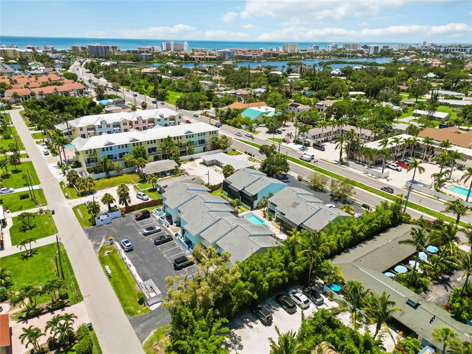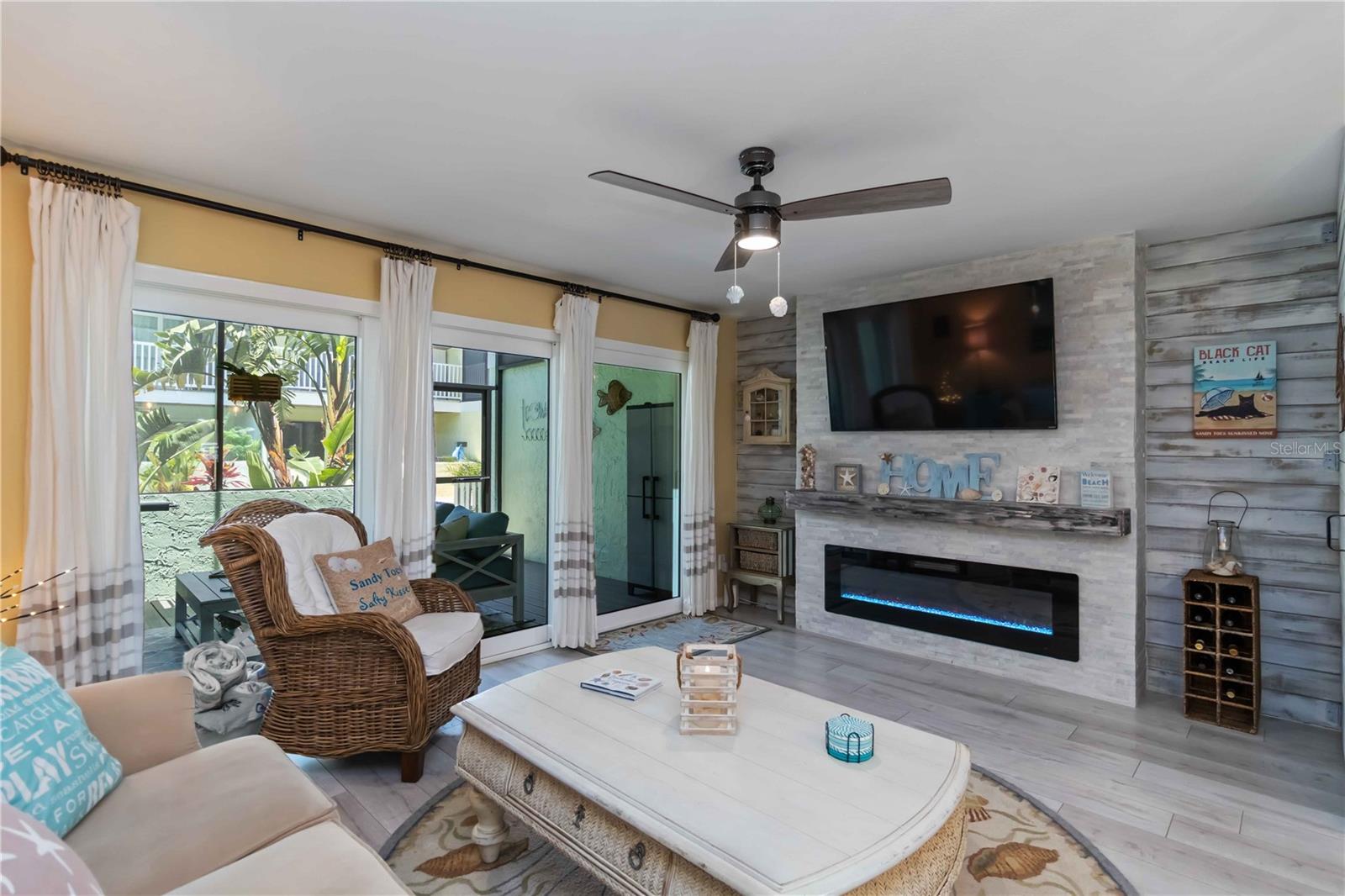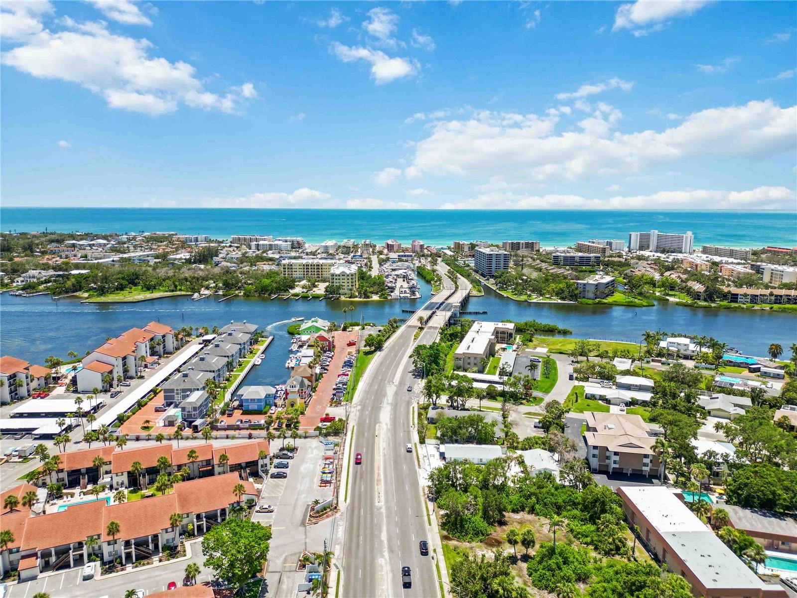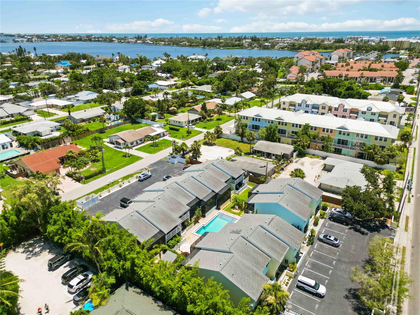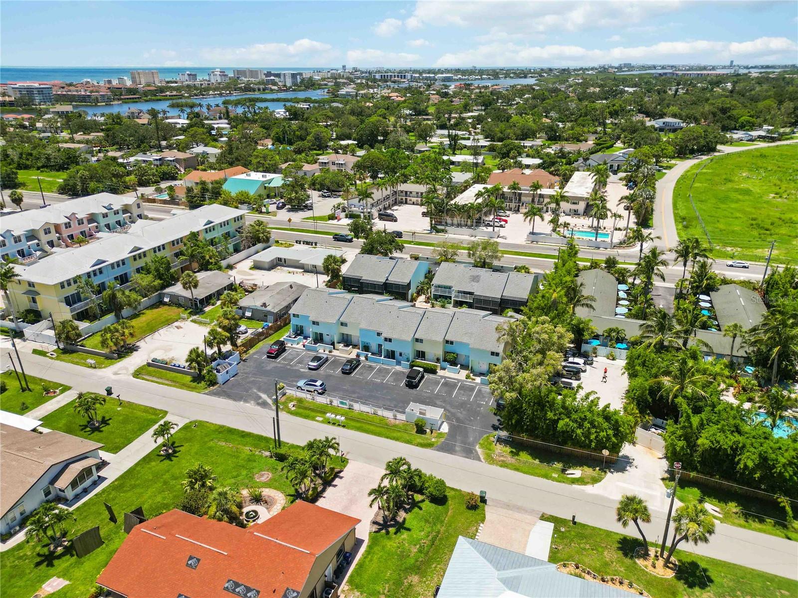 Welcome to Key Point Village, a peaceful, pet-friendly enclave located just over the South Bridge from world-renowned Siesta Key Beach. This rarely available 2-bedroom, 1.5-bath townhome-style condo offers over 1,000 square feet of stylish, updated living space across two levels--perfect for full-time residents or seasonal escapes. Step inside to find an open floorplan with modern finishes, including vinyl and tile flooring throughout. The kitchen is a showstopper with a large center island, sleek countertops, and stainless steel appliances. An adjacent dining space flows seamlessly into the living room, which features an electric fireplace and sliding glass doors leading to the oversized screened lanai--ideal for morning coffee or entertaining guests. Upstairs, you'll find both spacious bedrooms with built-in closets and access to a full bath. The primary bedroom offers direct access to a screened-in balcony overlooking the pool--perfect for morning coffee or winding down at sunset. A convenient half-bath is located downstairs for guests and everyday use. This unit comes with two assigned parking spaces, and the community offers a heated pool just steps from your lanai surrounded by lush, tropical landscaping. Enjoy peace of mind with hurricane rated windows and doors, and enjoy a carefree lifestyle with HOA fees covering water, sewer, trash, pest control, exterior maintenance, and more. Zoned for highly rated Gulf Gate Elementary, Brookside Middle, and Riverview High, this location also offers easy access to shopping, dining, and downtown Sarasota. Whether you're seeking a low-maintenance beach retreat or your next investment, this move-in ready condo in a prime Sarasota location checks all the boxes.