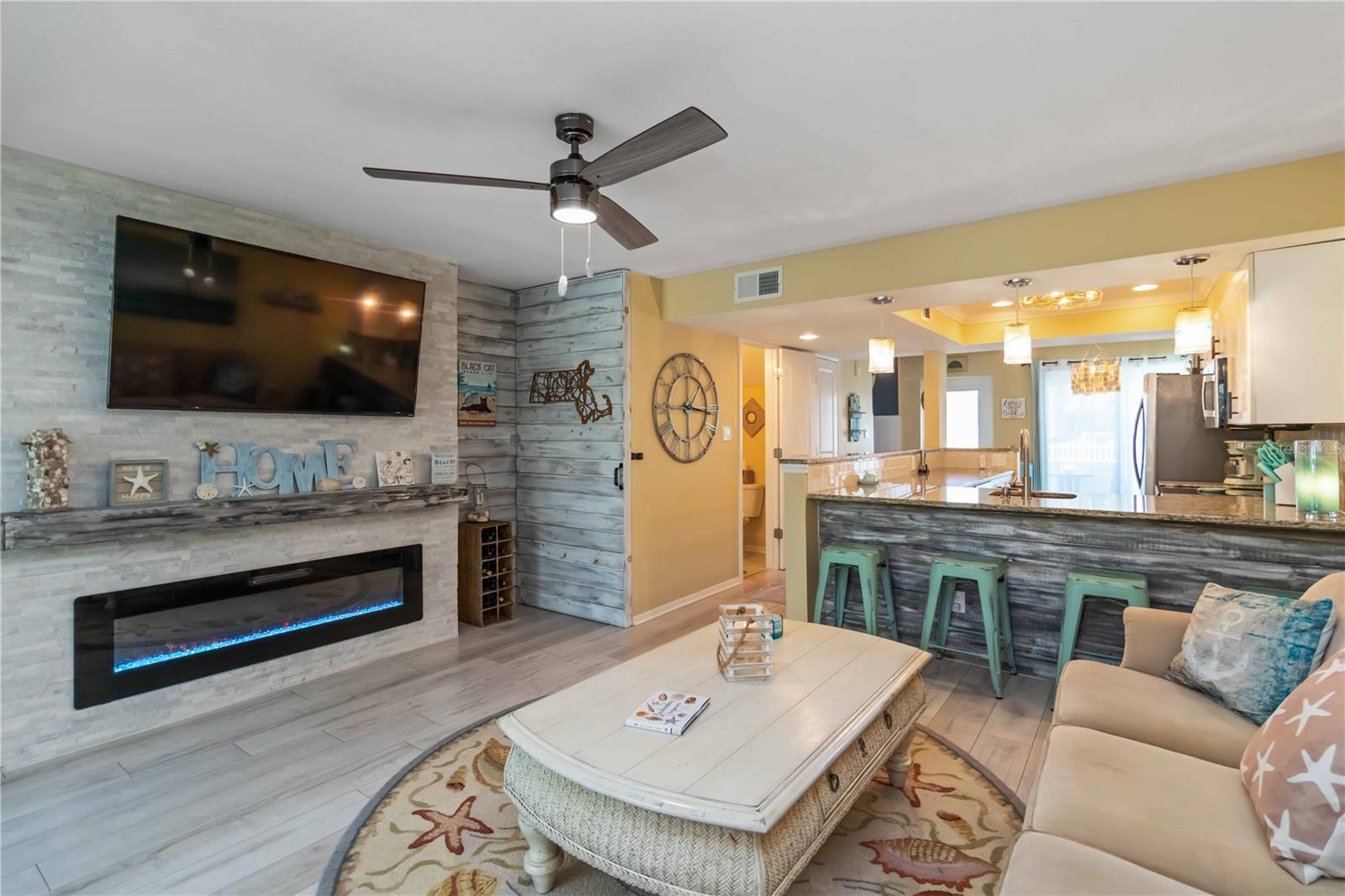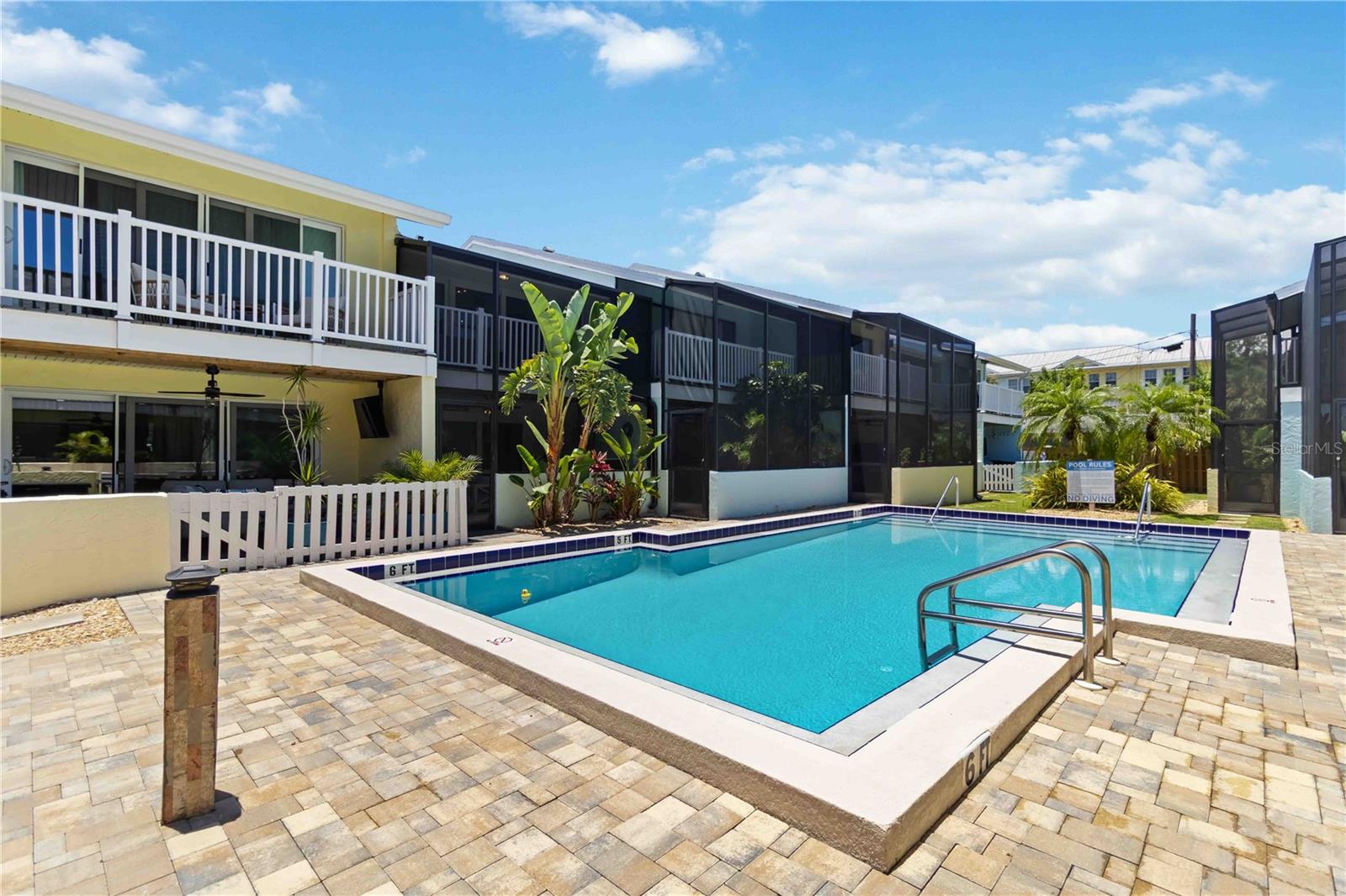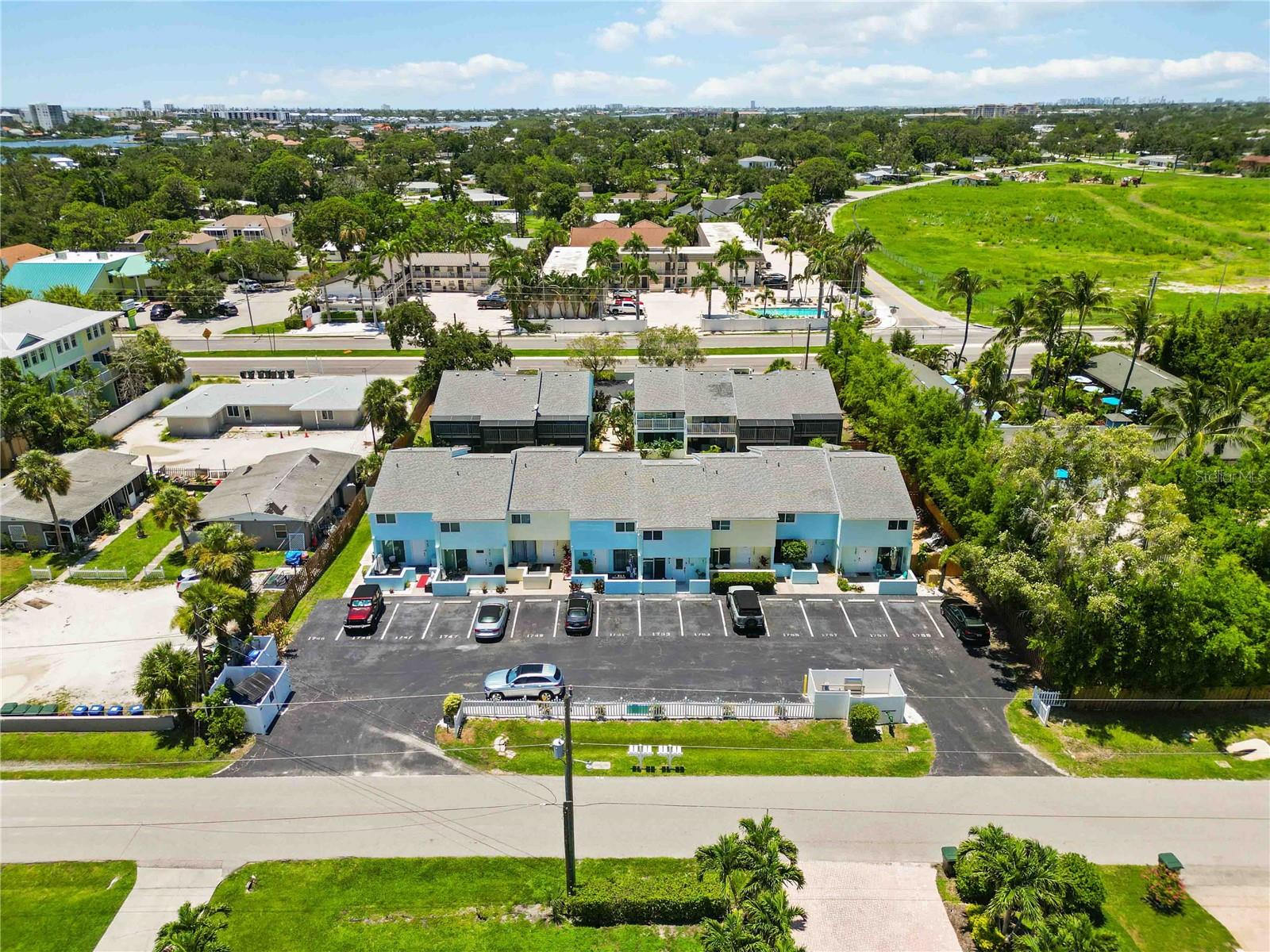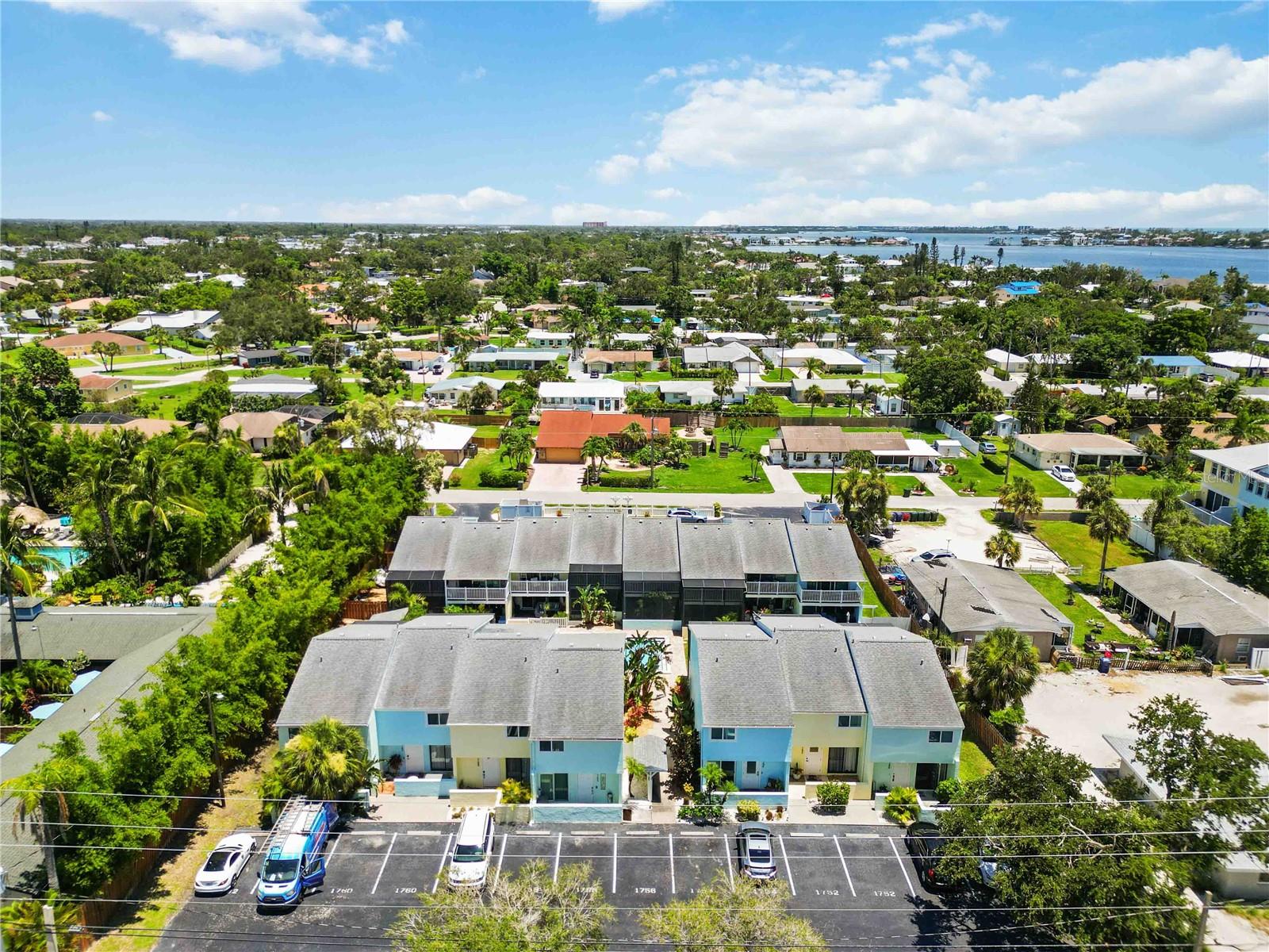Welcome to Key Point Village, a peaceful, pet-friendly enclave located just over the South Bridge from world-renowned Siesta Key Beach. This rarely available 2-bedroom, 1.5-bath townhome-style condo offers over 1,000 square feet of stylish, updated living space across two levels--perfect for full-time residents or seasonal escapes. Step inside to find an open floorplan with modern finishes, including vinyl and tile flooring throughout. The kitchen is a showstopper with a large center island, sleek countertops, and stainless steel appliances. An adjacent dining space flows seamlessly into the living room, which features an electric fireplace and sliding glass doors leading to the oversized screened lanai--ideal for morning coffee or entertaining guests. Upstairs, you'll find both spacious bedrooms with built-in closets and access to a full bath. The primary bedroom offers direct access to a screened-in balcony overlooking the pool--perfect for morning coffee or winding down at sunset. A convenient half-bath is located downstairs for guests and everyday use. This unit comes with two assigned parking spaces, and the community offers a heated pool just steps from your lanai surrounded by lush, tropical landscaping. Enjoy peace of mind with hurricane rated windows and doors, and enjoy a carefree lifestyle with HOA fees covering water, sewer, trash, pest control, exterior maintenance, and more. Zoned for highly rated Gulf Gate Elementary, Brookside Middle, and Riverview High, this location also offers easy access to shopping, dining, and downtown Sarasota. Whether you're seeking a low-maintenance beach retreat or your next investment, this move-in ready condo in a prime Sarasota location checks all the boxes.