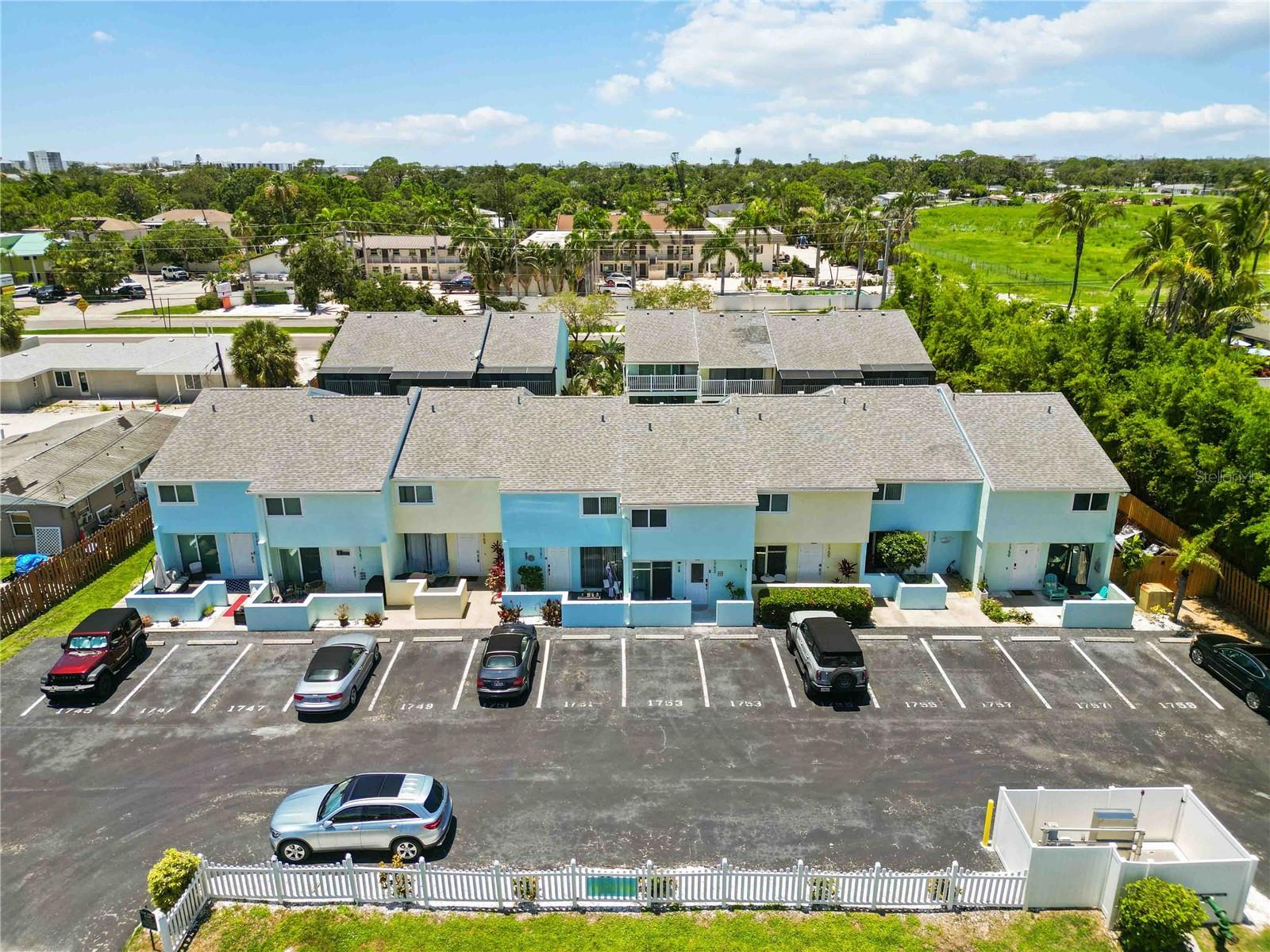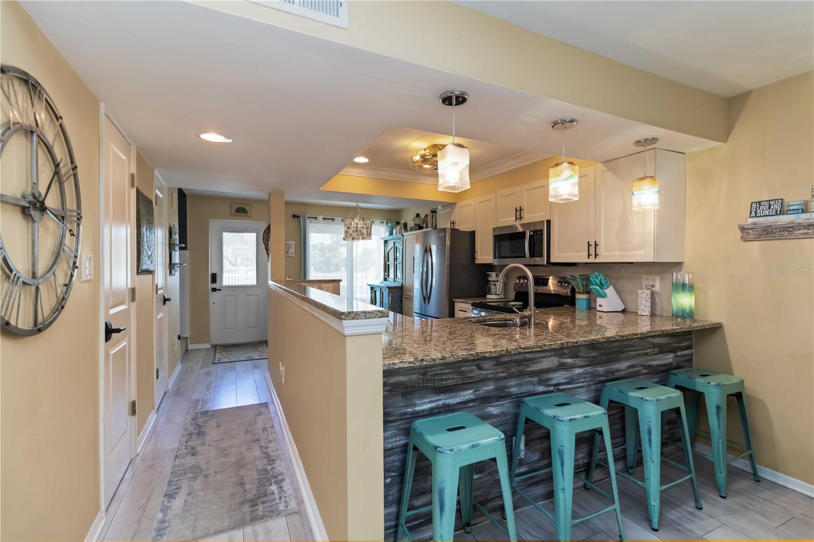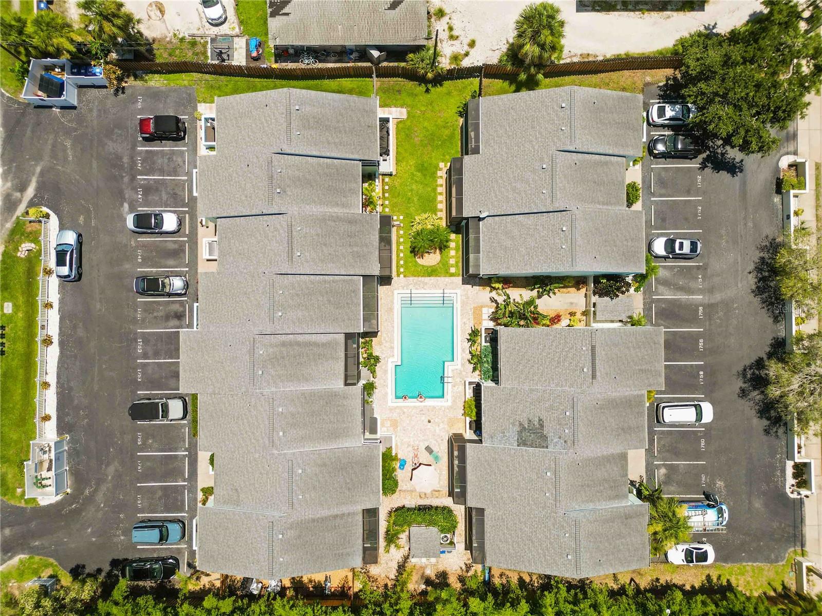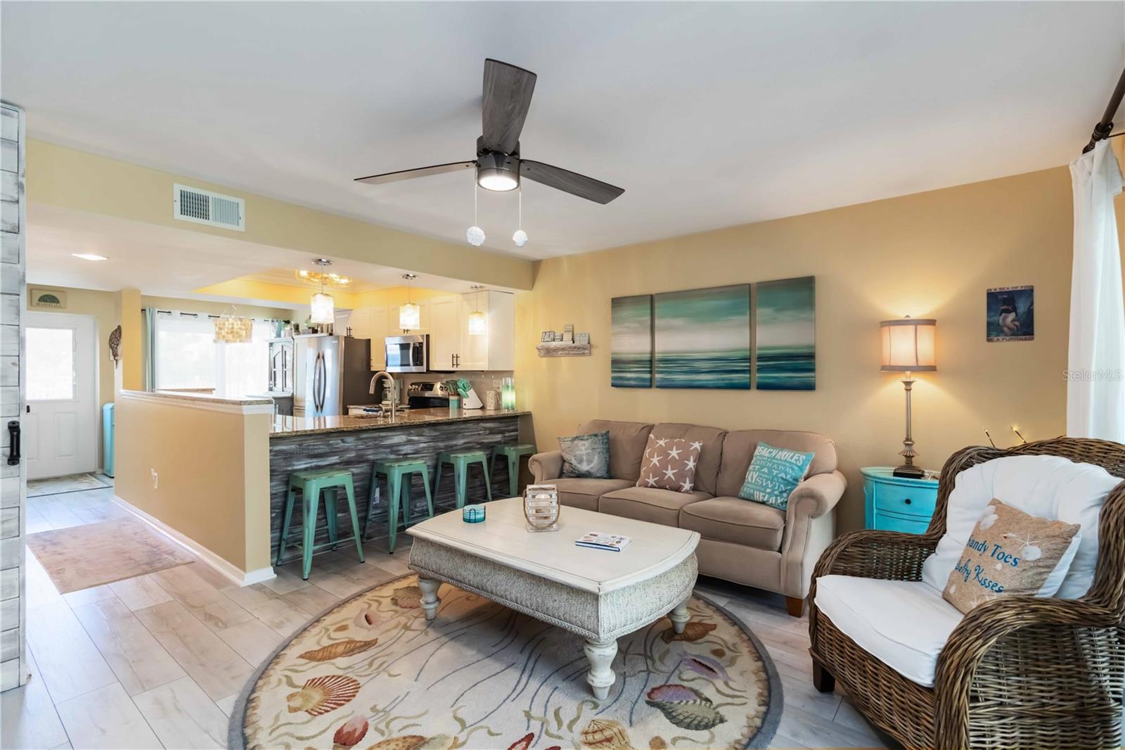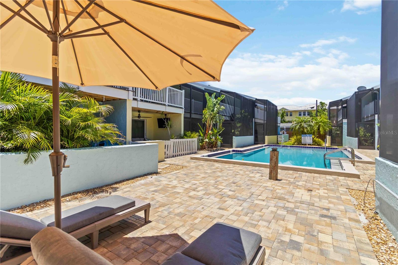 Welcome to Key Point Village, a peaceful, pet-friendly enclave located just over the South Bridge from world-renowned Siesta Key Beach. This rarely available 2-bedroom, 1.5-bath townhome-style condo offers over 1,000 square feet of stylish, updated living space across two levels--perfect for full-time residents or seasonal escapes. Step inside to find an open floorplan with modern finishes, including vinyl and tile flooring throughout. The kitchen is a showstopper with a large center island, sleek countertops, and stainless steel appliances. An adjacent dining space flows seamlessly into the living room, which features an electric fireplace and sliding glass doors leading to the oversized screened lanai--ideal for morning coffee or entertaining guests. Upstairs, you'll find both spacious bedrooms with built-in closets and access to a full bath. The primary bedroom offers direct access to a screened-in balcony overlooking the pool--perfect for morning coffee or winding down at sunset. A convenient half-bath is located downstairs for guests and everyday use. This unit comes with two assigned parking spaces, and the community offers a heated pool just steps from your lanai surrounded by lush, tropical landscaping. Enjoy peace of mind with hurricane rated windows and doors, and enjoy a carefree lifestyle with HOA fees covering water, sewer, trash, pest control, exterior maintenance, and more. Zoned for highly rated Gulf Gate Elementary, Brookside Middle, and Riverview High, this location also offers easy access to shopping, dining, and downtown Sarasota. Whether you're seeking a low-maintenance beach retreat or your next investment, this move-in ready condo in a prime Sarasota location checks all the boxes.