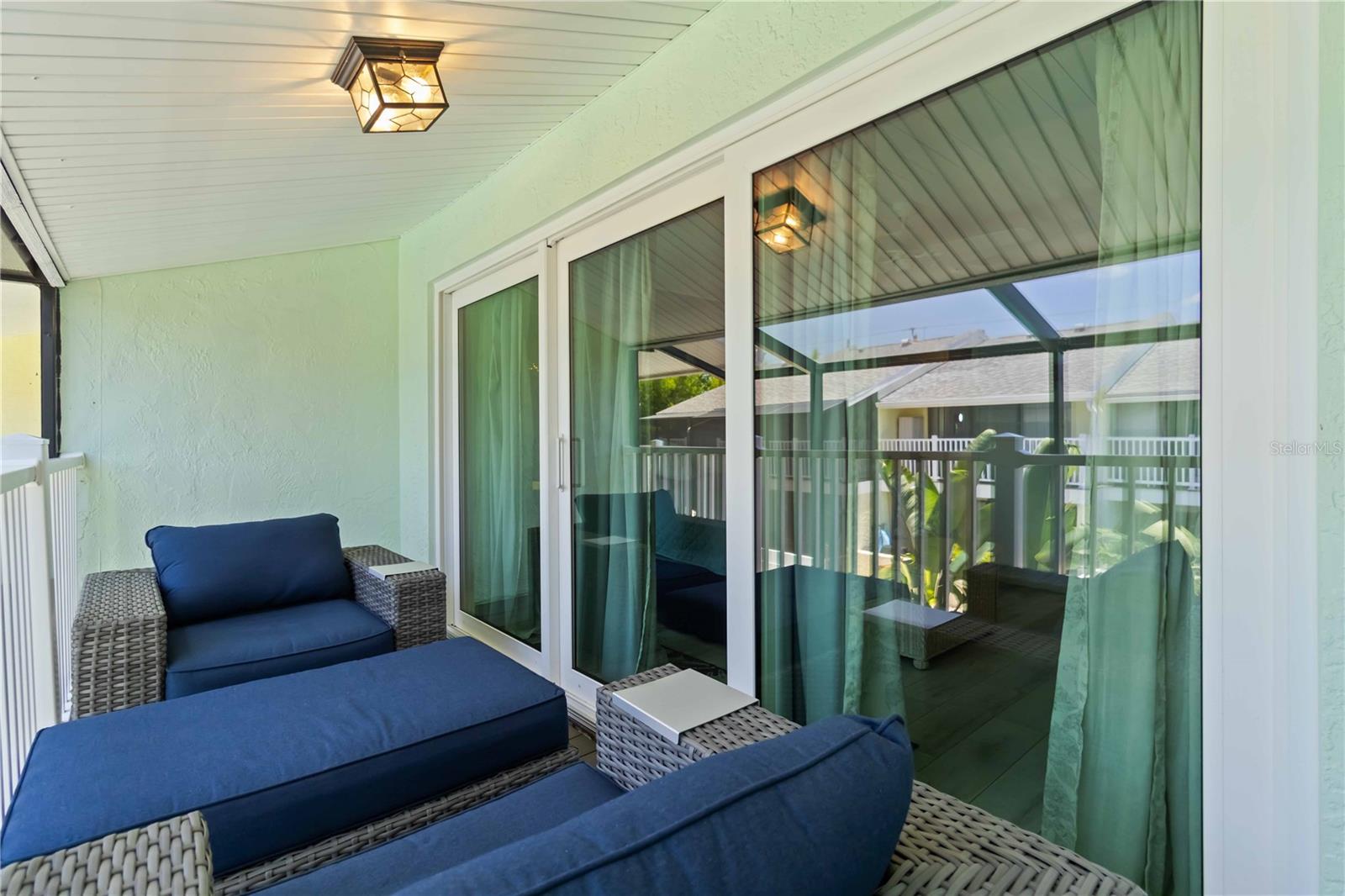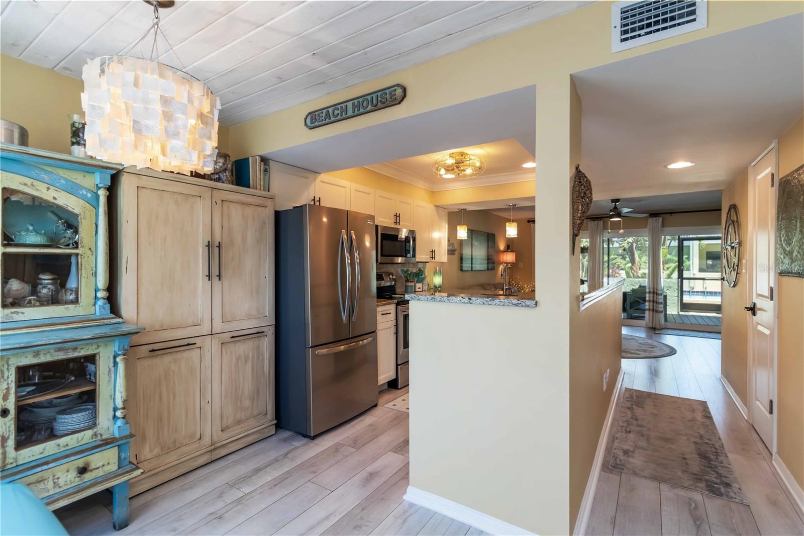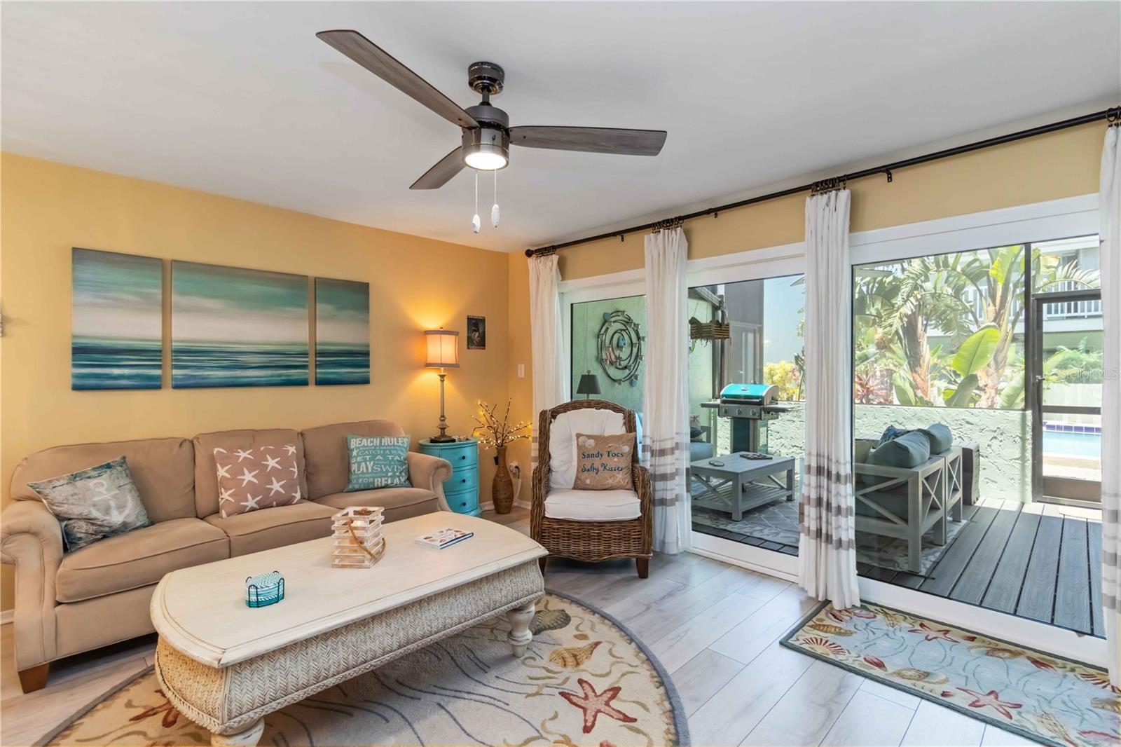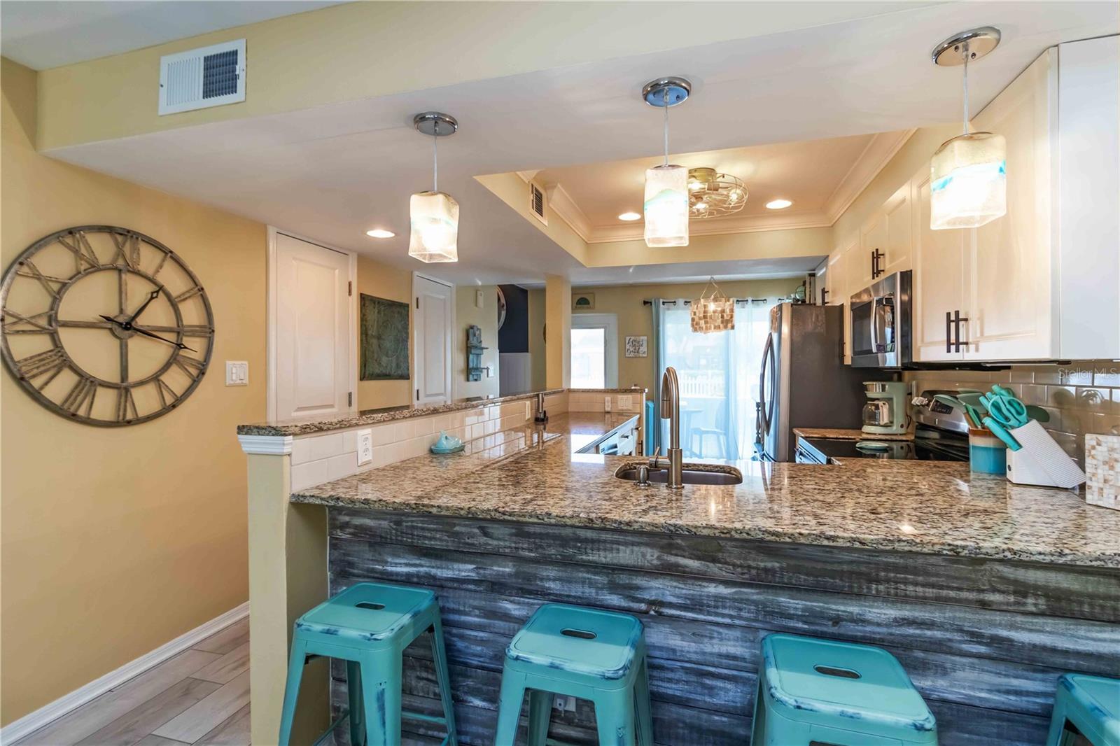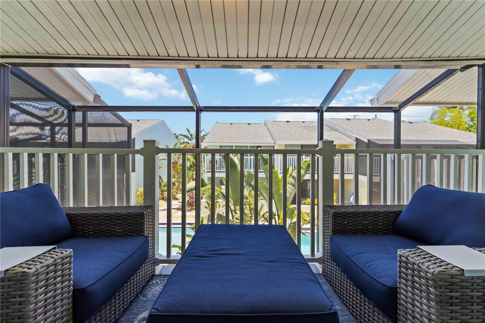 Welcome to Key Point Village, a peaceful, pet-friendly enclave located just over the South Bridge from world-renowned Siesta Key Beach. This rarely available 2-bedroom, 1.5-bath townhome-style condo offers over 1,000 square feet of stylish, updated living space across two levels--perfect for full-time residents or seasonal escapes. Step inside to find an open floorplan with modern finishes, including vinyl and tile flooring throughout. The kitchen is a showstopper with a large center island, sleek countertops, and stainless steel appliances. An adjacent dining space flows seamlessly into the living room, which features an electric fireplace and sliding glass doors leading to the oversized screened lanai--ideal for morning coffee or entertaining guests. Upstairs, you'll find both spacious bedrooms with built-in closets and access to a full bath. The primary bedroom offers direct access to a screened-in balcony overlooking the pool--perfect for morning coffee or winding down at sunset. A convenient half-bath is located downstairs for guests and everyday use. This unit comes with two assigned parking spaces, and the community offers a heated pool just steps from your lanai surrounded by lush, tropical landscaping. Enjoy peace of mind with hurricane rated windows and doors, and enjoy a carefree lifestyle with HOA fees covering water, sewer, trash, pest control, exterior maintenance, and more. Zoned for highly rated Gulf Gate Elementary, Brookside Middle, and Riverview High, this location also offers easy access to shopping, dining, and downtown Sarasota. Whether you're seeking a low-maintenance beach retreat or your next investment, this move-in ready condo in a prime Sarasota location checks all the boxes.