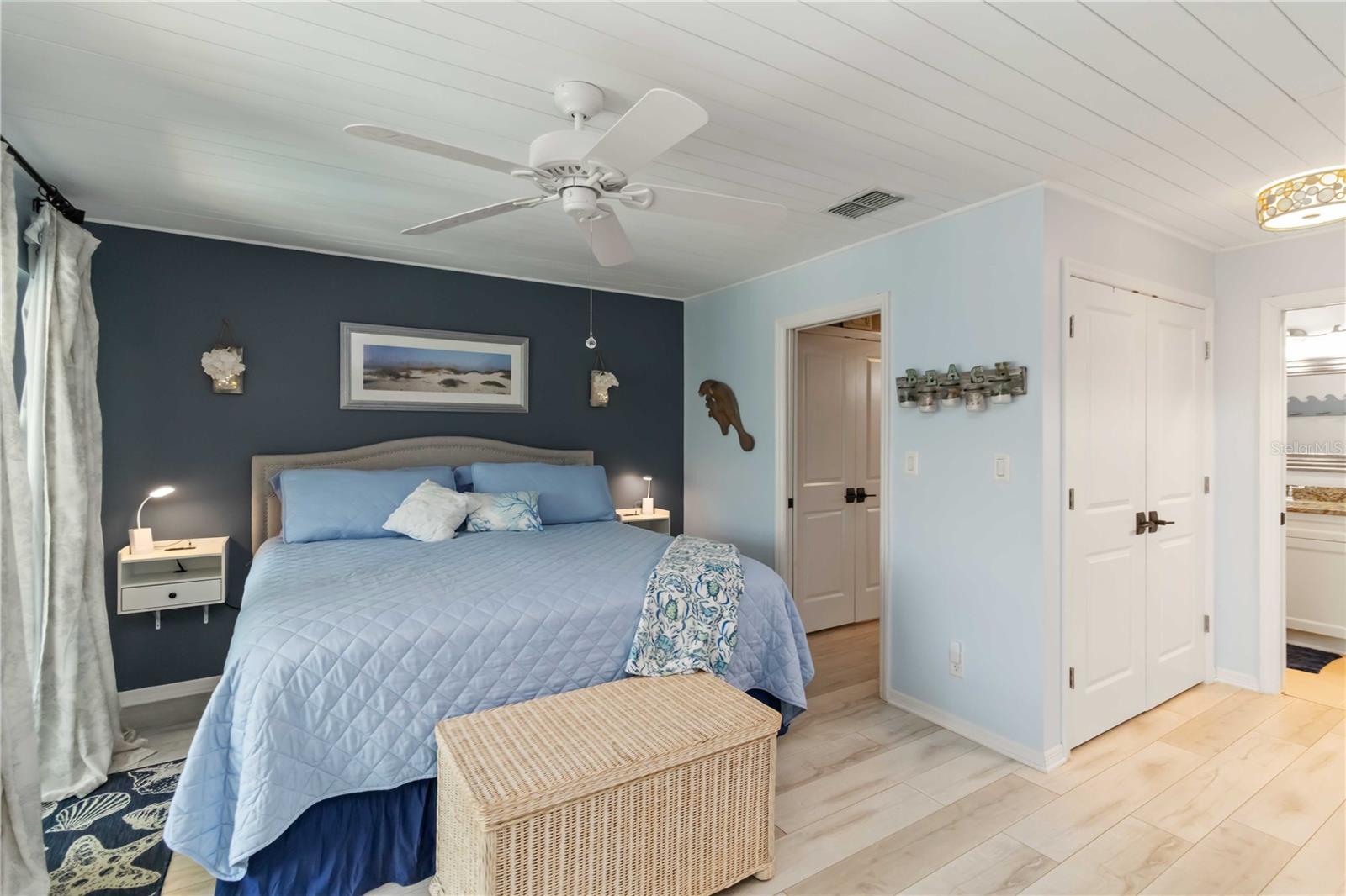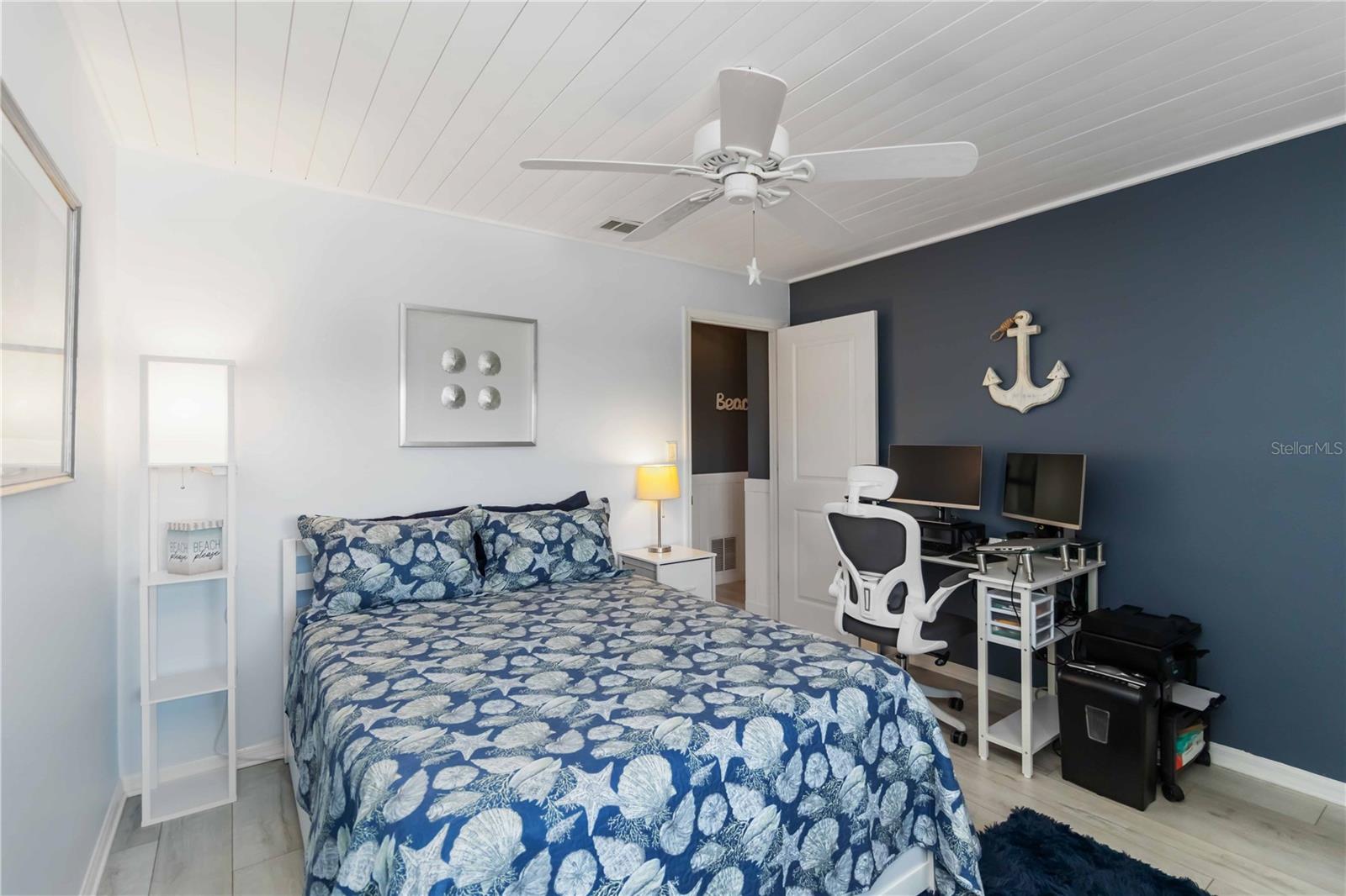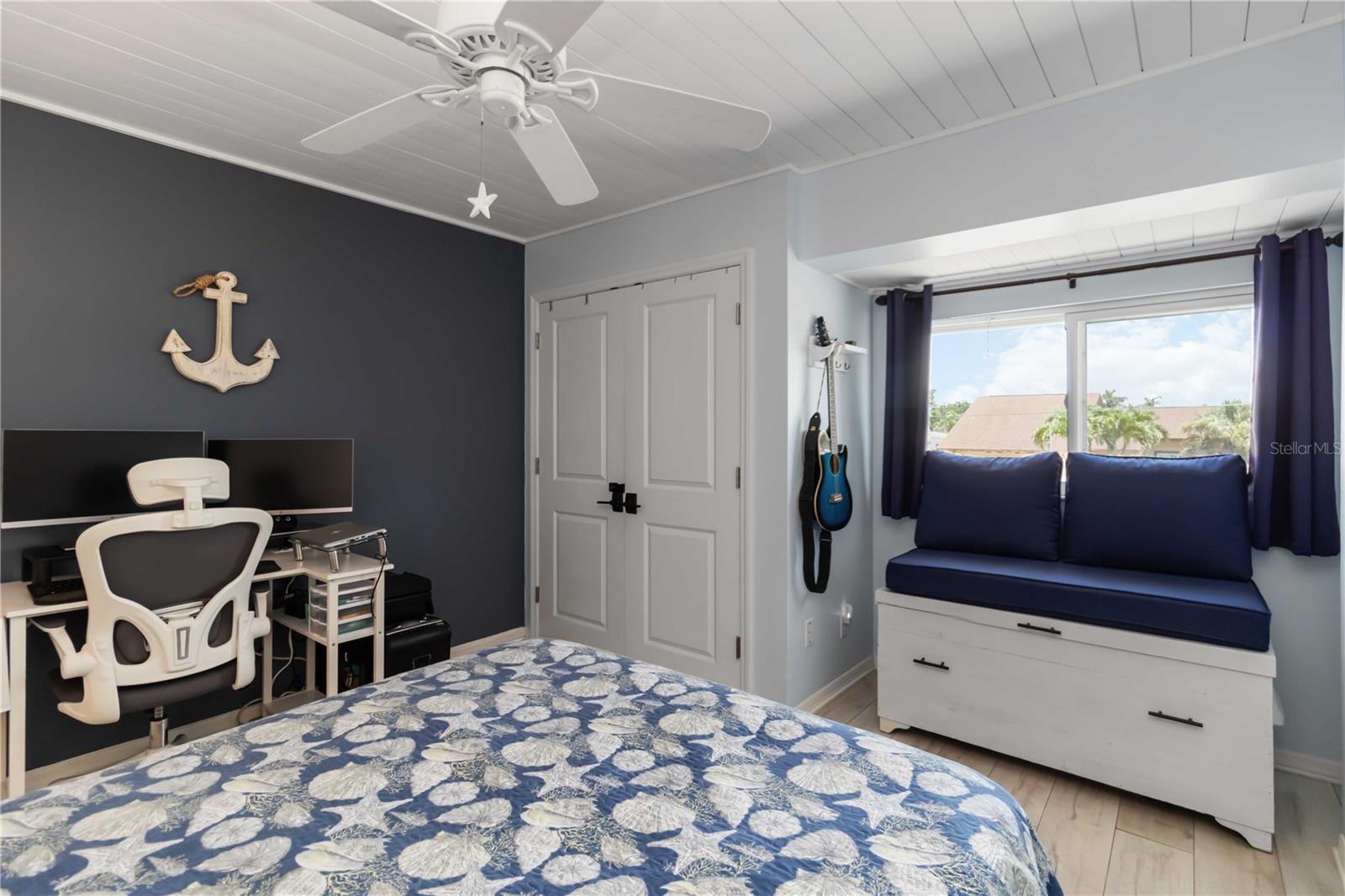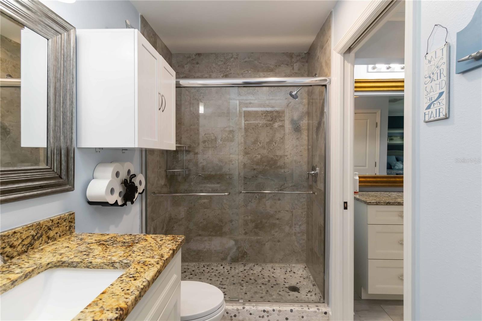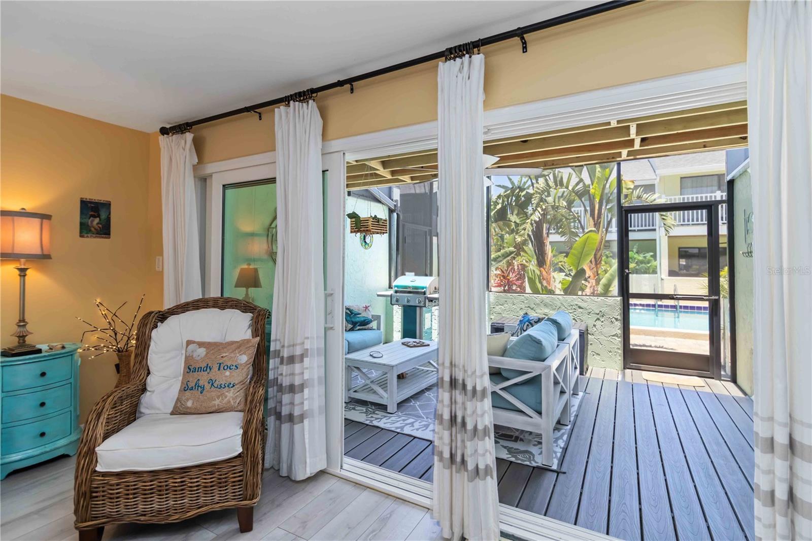 Welcome to Key Point Village, a peaceful, pet-friendly enclave located just over the South Bridge from world-renowned Siesta Key Beach. This rarely available 2-bedroom, 1.5-bath townhome-style condo offers over 1,000 square feet of stylish, updated living space across two levels--perfect for full-time residents or seasonal escapes. Step inside to find an open floorplan with modern finishes, including vinyl and tile flooring throughout. The kitchen is a showstopper with a large center island, sleek countertops, and stainless steel appliances. An adjacent dining space flows seamlessly into the living room, which features an electric fireplace and sliding glass doors leading to the oversized screened lanai--ideal for morning coffee or entertaining guests. Upstairs, you'll find both spacious bedrooms with built-in closets and access to a full bath. The primary bedroom offers direct access to a screened-in balcony overlooking the pool--perfect for morning coffee or winding down at sunset. A convenient half-bath is located downstairs for guests and everyday use. This unit comes with two assigned parking spaces, and the community offers a heated pool just steps from your lanai surrounded by lush, tropical landscaping. Enjoy peace of mind with hurricane rated windows and doors, and enjoy a carefree lifestyle with HOA fees covering water, sewer, trash, pest control, exterior maintenance, and more. Zoned for highly rated Gulf Gate Elementary, Brookside Middle, and Riverview High, this location also offers easy access to shopping, dining, and downtown Sarasota. Whether you're seeking a low-maintenance beach retreat or your next investment, this move-in ready condo in a prime Sarasota location checks all the boxes.