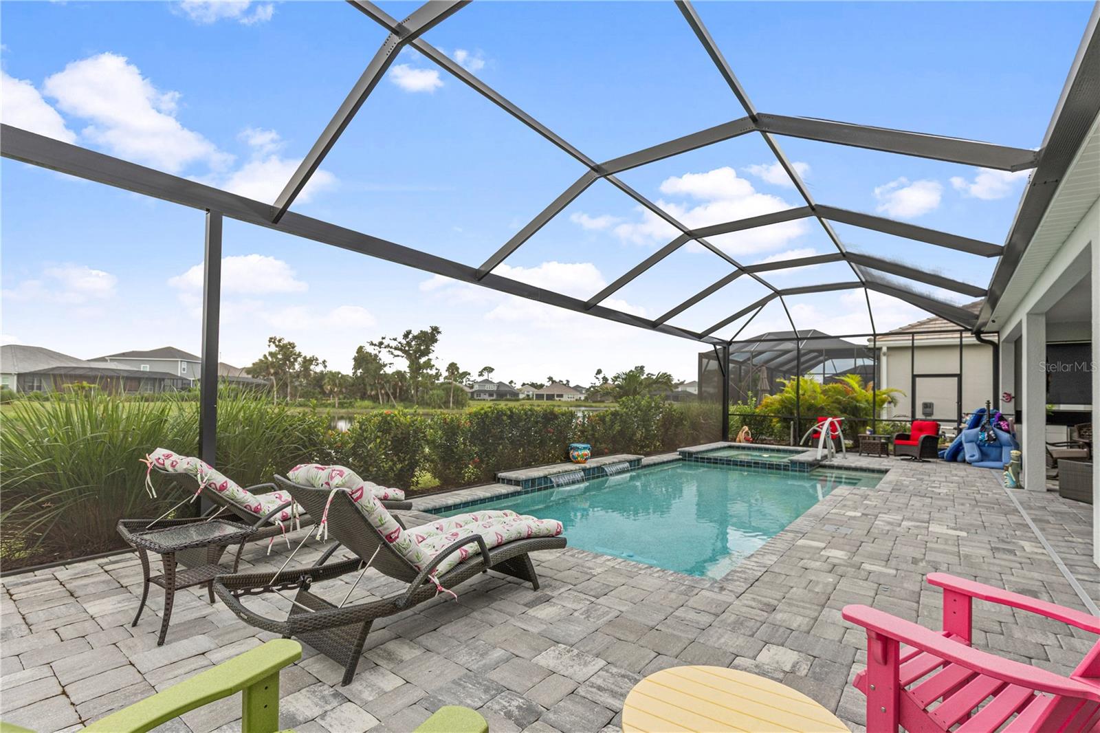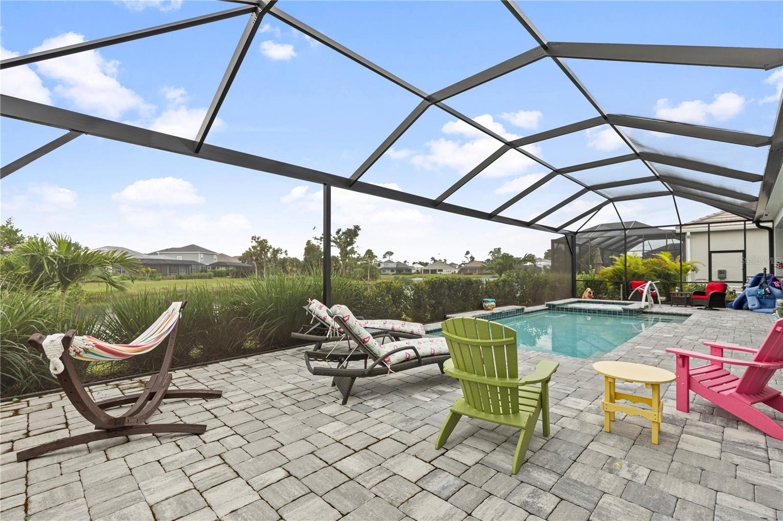 Step outdoors to your private retreat: a spacious lanai with southern exposure, an 18' x 34' saltwater pool, and an 8' x 8' spa, all operated remotely through iAqua. There is also a direct entrance to the pool from the bonus room, adding convenience and flow for indoor-outdoor living. Exceptional landscaping, a large lot, and unobstructed views provide privacy and serenity.