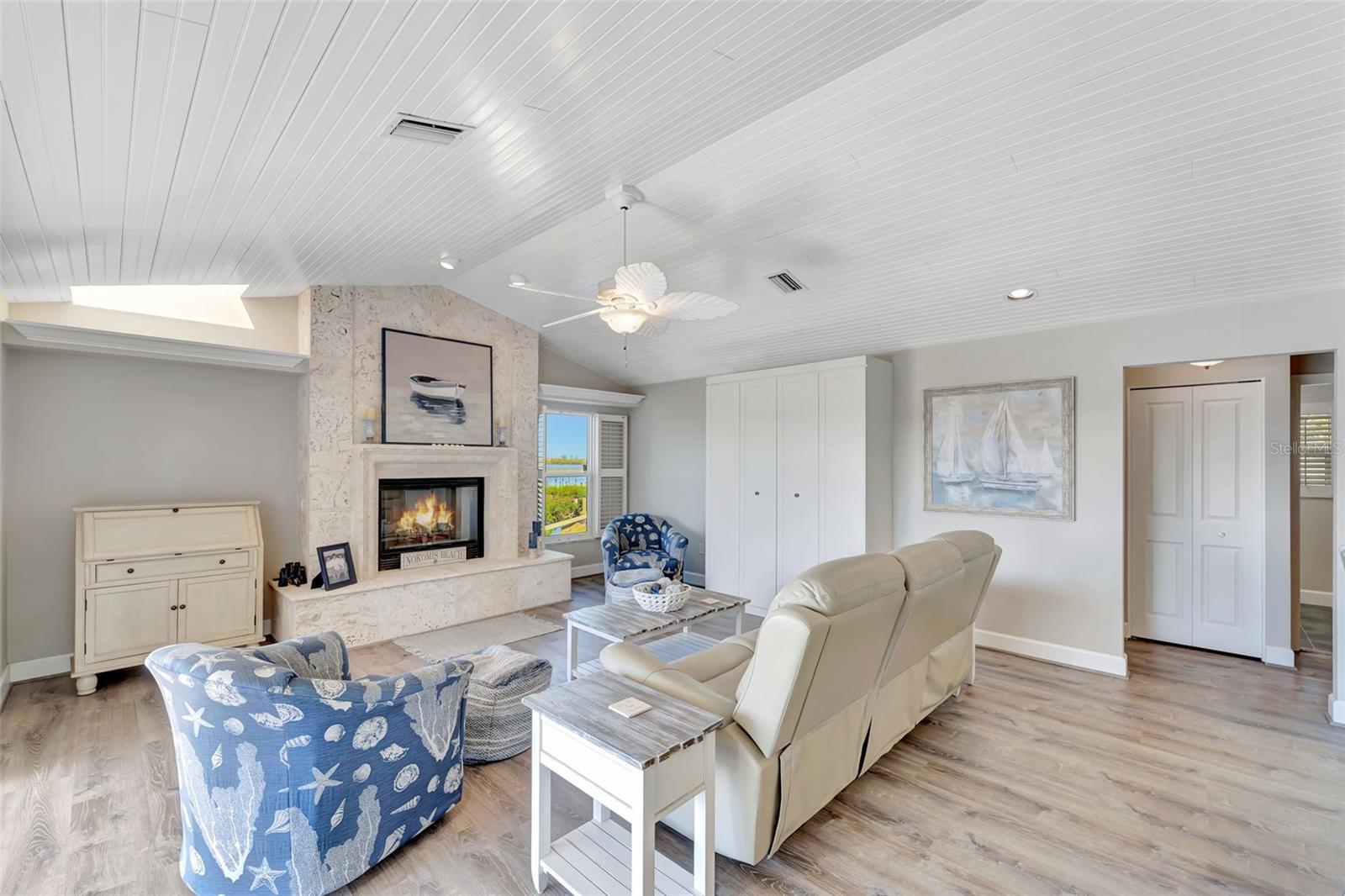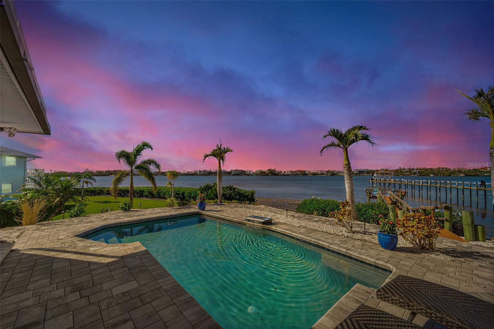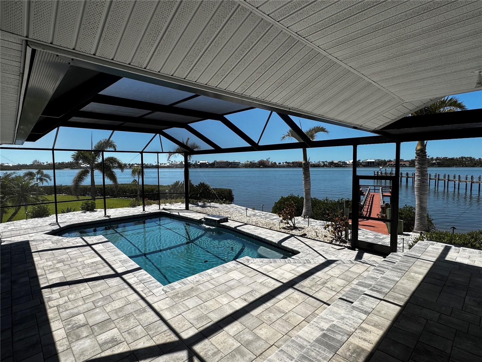***Waterfront Paradise in Nokomis *** Currently among the lowest priced homes on the inter-coastal. 110 feet of waterfront frontage and a corner location provides expanded panoramic views of watercraft, dolphins, manatee's and other sea life. *** Beautiful, updated home on Blackburn Bay in Nokomis with sunset views overlooking Casey Key. This 3-bedroom 2.5 bath 2388 sq ft. home has been extensively updated with new finishes and improvements throughout. *** The home is located on a quiet privately maintained street. As you enter the secluded home, new plank tile flooring greets you in the redesigned great room and continues throughout the home. The open floor plan boasts high ceilings and expansive bay views. *** Two sets of impact sliders open onto the pool deck area for the indoor-outdoor experience. A beautiful coral stone wood burning fireplace, which has been redone with a new fire box insert and chimney cap, anchors the kitchen and great room. The kitchen has updated granite and Corian countertops, sink area and newly painted cabinets. *** The primary suite has its own impact sliders that open to the pool area with bay views. The primary bath received a total renovation and includes a new large walk-in shower, tile flooring and dual sinks on a custom bathroom vanity. The oversize walk-in closet has custom built-ins. *** There are 2 guest bedrooms and a large, updated guest bath with walk-in shower and dual sinks.*** Brand New Pool Enclosure with the Scenic View Panel for unobstructed views *** The resurfaced heated pool with new water feature overlooks the bay. There is also a half bath in the pool area. For the boaters there is a 10,000 lbs. lift with electric at the dock, and only 20 minutes to the Gulf of Mexico thru the Venice jetty. Also, a second dock for fishing and sunsets right out on the bay. In the garage there is an auto lift for car enthusiasts. The house is being offered furnished, subject to certain exclusions. other updates include new paver driveway, sidewalks and pool deck, updated landscaping, impact windows and doors throughout the home, tile plank flooring, baseboards, fresh paint inside and out, new sprinklers, new outdoor lighting, new pool light and queen-sized murphy bed. Repairs to the boat lift and dock are on order. There was no water damage, no water intrusion in the property or the pool. *** Seller has now completed the purchase of the easement property in front of their driveway adding additional space of approx.1823 Sq ft.