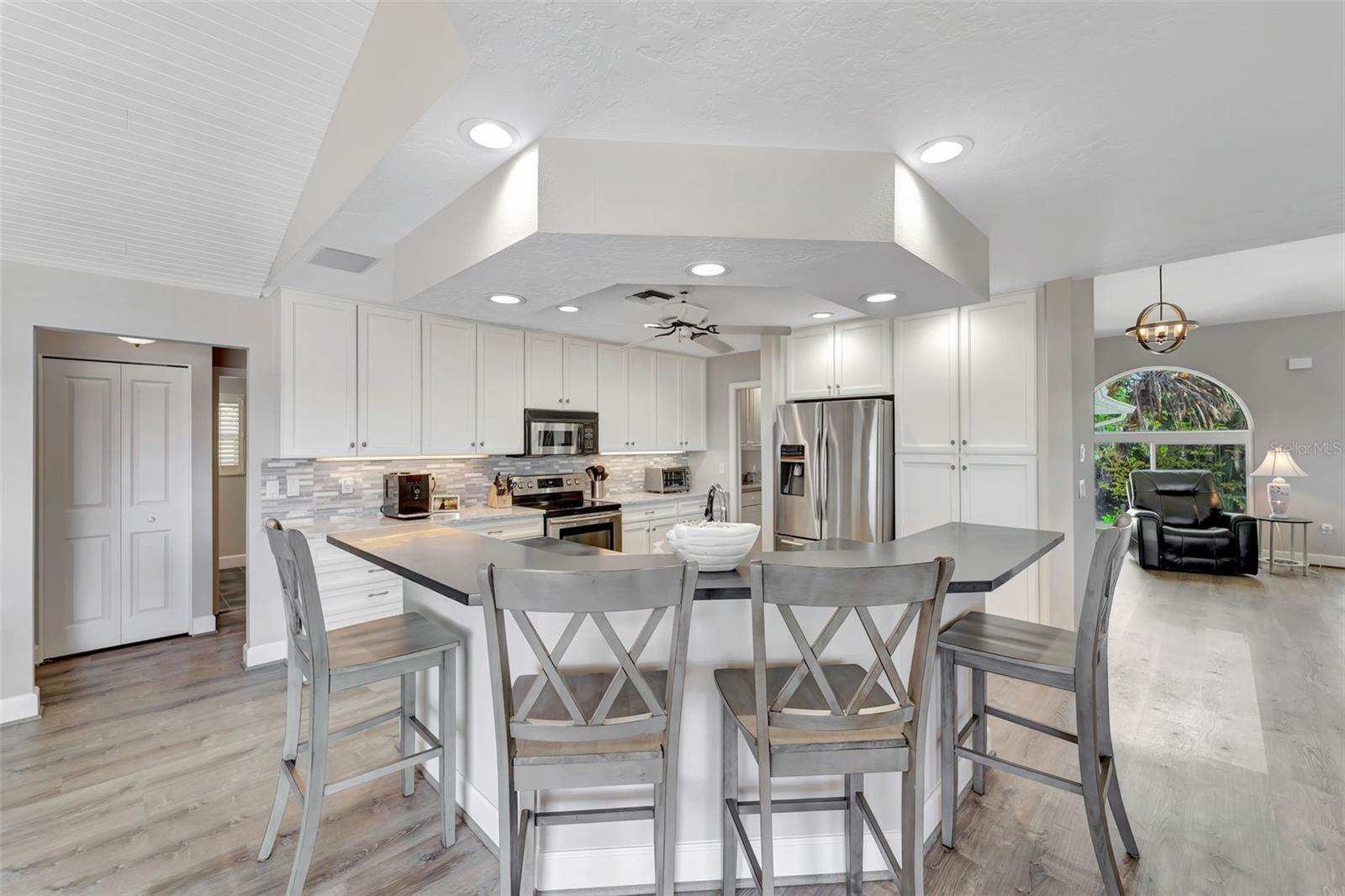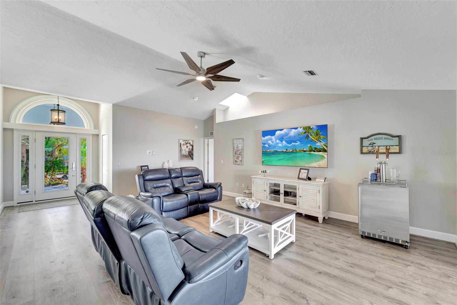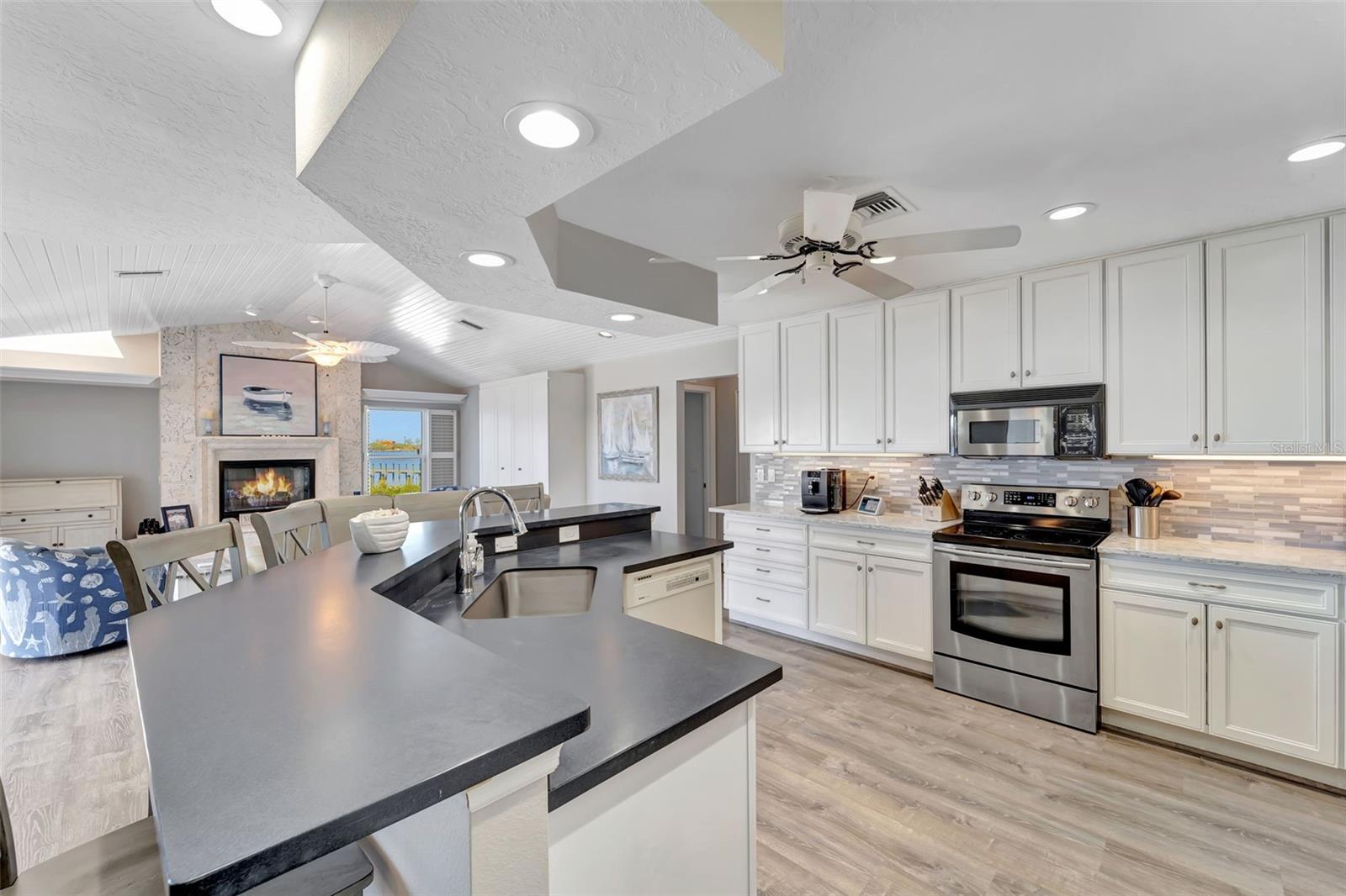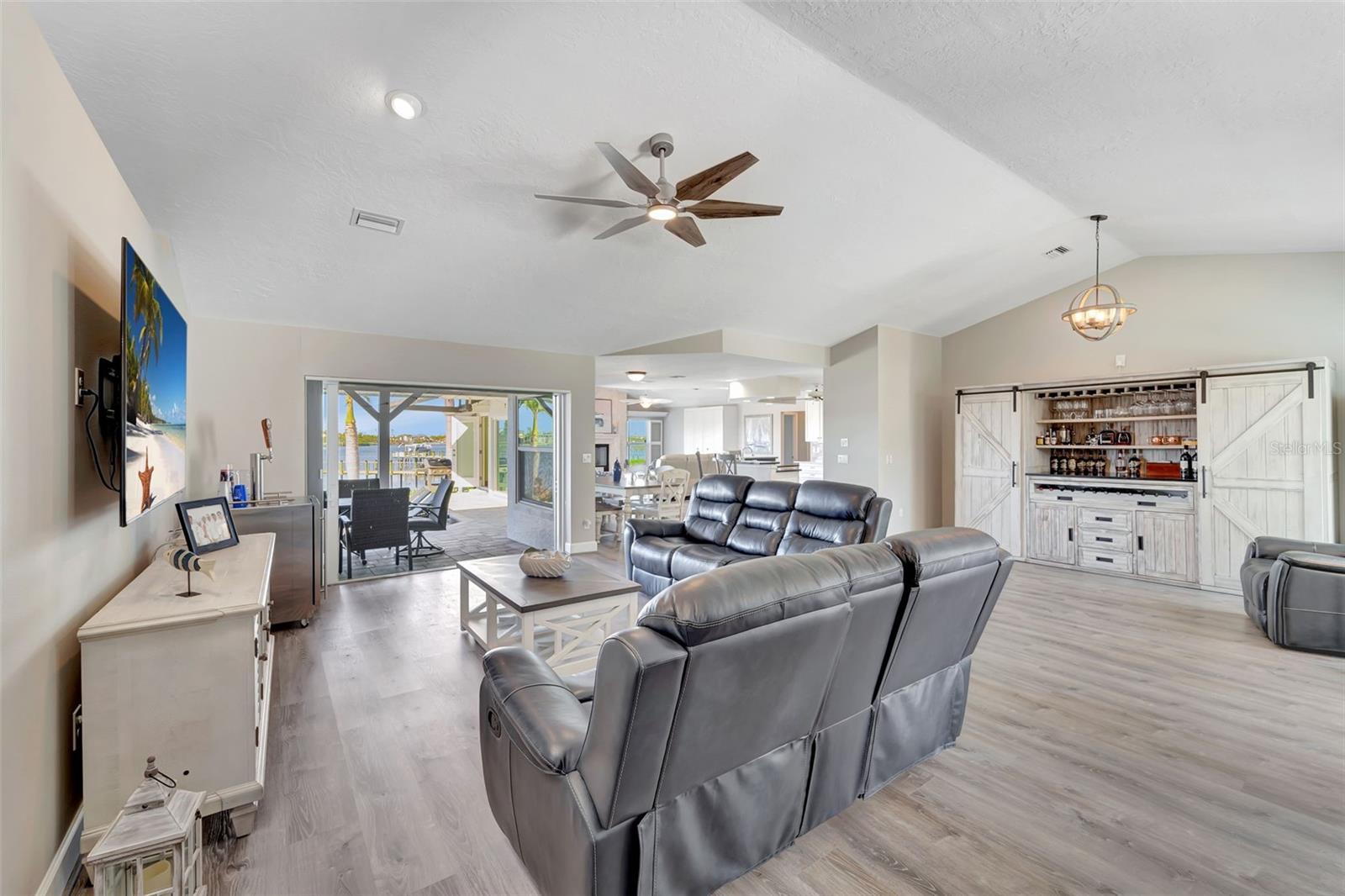 ***Waterfront Paradise in Nokomis *** Currently among the lowest priced homes on the inter-coastal. 110 feet of waterfront frontage and a corner location provides expanded panoramic views of watercraft, dolphins, manatee's and other sea life. *** Beautiful, updated home on Blackburn Bay in Nokomis with sunset views overlooking Casey Key. This 3-bedroom 2.5 bath 2388 sq ft. home has been extensively updated with new finishes and improvements throughout. *** The home is located on a quiet privately maintained street. As you enter the secluded home, new plank tile flooring greets you in the redesigned great room and continues throughout the home. The open floor plan boasts high ceilings and expansive bay views. *** Two sets of impact sliders open onto the pool deck area for the indoor-outdoor experience. A beautiful coral stone wood burning fireplace, which has been redone with a new fire box insert and chimney cap, anchors the kitchen and great room. The kitchen has updated granite and Corian countertops, sink area and newly painted cabinets. *** The primary suite has its own impact sliders that open to the pool area with bay views. The primary bath received a total renovation and includes a new large walk-in shower, tile flooring and dual sinks on a custom bathroom vanity. The oversize walk-in closet has custom built-ins. *** There are 2 guest bedrooms and a large, updated guest bath with walk-in shower and dual sinks.*** Brand New Pool Enclosure with the Scenic View Panel for unobstructed views *** The resurfaced heated pool with new water feature overlooks the bay. There is also a half bath in the pool area. For the boaters there is a 10,000 lbs. lift with electric at the dock, and only 20 minutes to the Gulf of Mexico thru the Venice jetty. Also, a second dock for fishing and sunsets right out on the bay. In the garage there is an auto lift for car enthusiasts. The house is being offered furnished, subject to certain exclusions. other updates include new paver driveway, sidewalks and pool deck, updated landscaping, impact windows and doors throughout the home, tile plank flooring, baseboards, fresh paint inside and out, new sprinklers, new outdoor lighting, new pool light and queen-sized murphy bed. Repairs to the boat lift and dock are on order. There was no water damage, no water intrusion in the property or the pool. *** Seller has now completed the purchase of the easement property in front of their driveway adding additional space of approx.1823 Sq ft.
