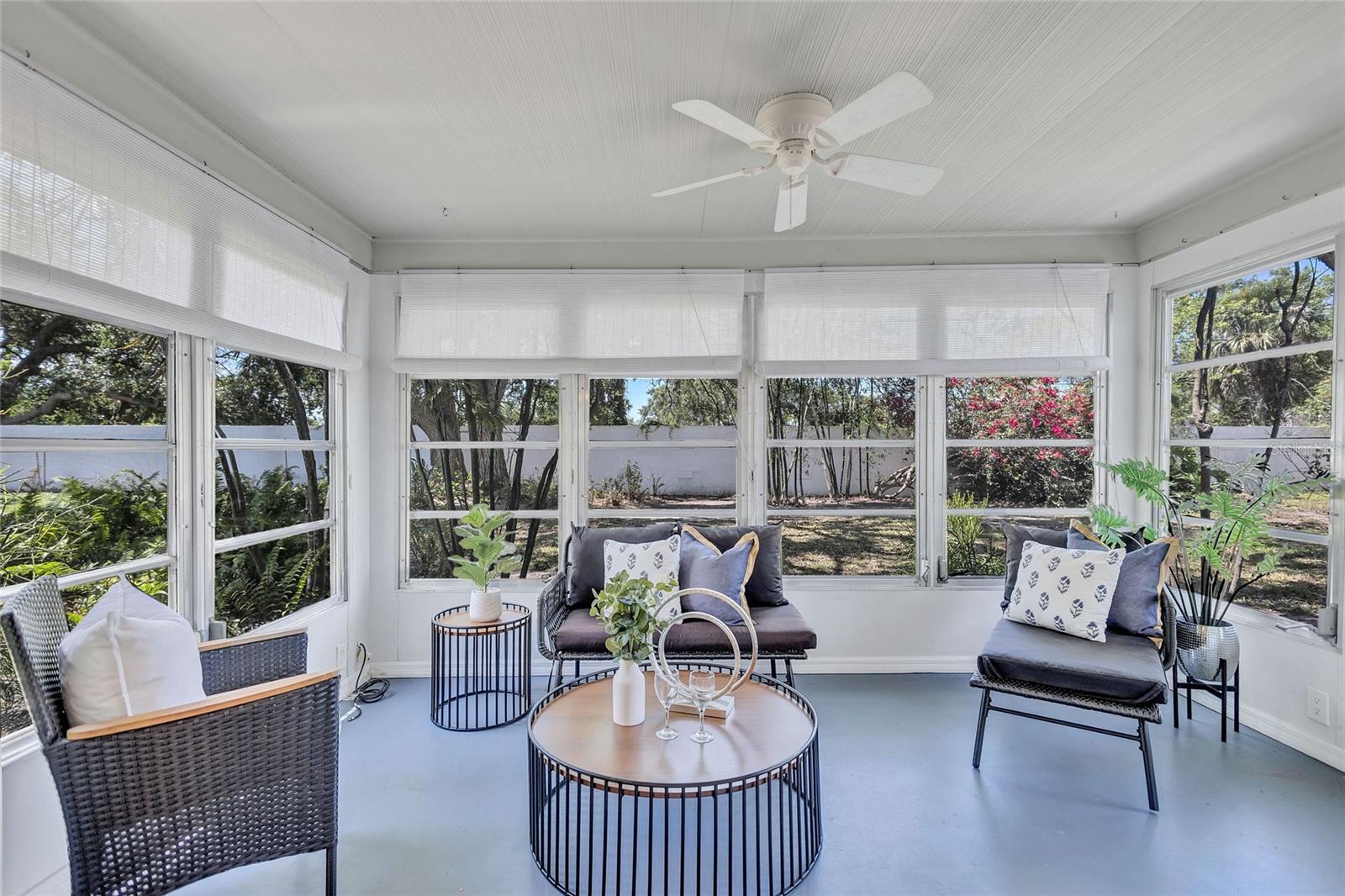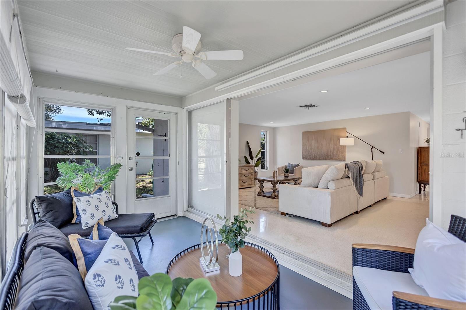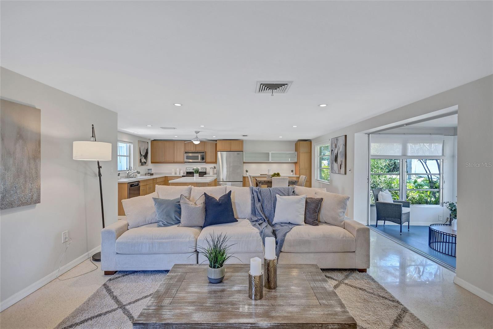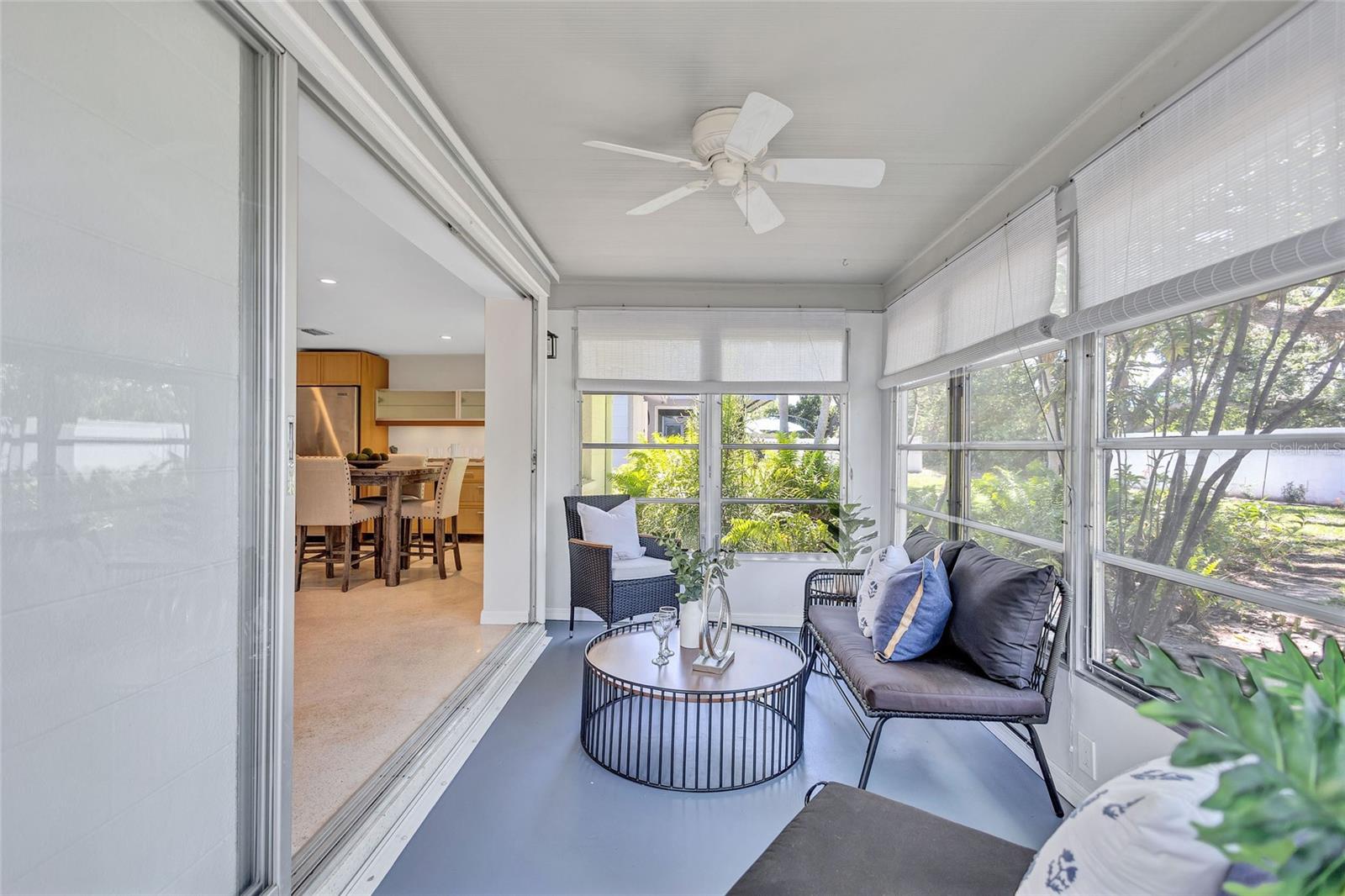 Located just north of the Gulf Gate Village, this quiet street of single family homes is one of the best-kept secrets in Sarasota! This professionally redesigned & fully renovated 2-bedroom, 2-bathroom w/enclosed breezeway residence offers a perfect blend of classic style & contemporary living. Step inside and be greeted by a light & bright open floor plan, where the heart of the home is a chef's dream kitchen. The designer kitchen features solid wood cabinetry, ample storage, newer appliances, task & undercounter lighting. The stylish floating island provides extra storage & bar seating. The tasteful design elongates into the dining area anchored by a large credenza & features sleek, frosted glass butterfly opening upper wall cabinets. The open space seamlessly flows into the cozy great room and the outside enclosed porch, a versatile area with glass windows & screens, perfect for relaxing & entertaining. Outside, mature maintenance-free landscaping, including a majestic oak tree framing the backyard, creates a serene & private oasis. This freshly painted, move-in ready home has a 2022 Roof, 2020 HVAC with 2022 UV lights and new ductwork, & a 2020 Hot Water Heater. The low monthly Homeowners Association fee of $135 includes maintenance-free landscaping & internet service! A detached utility building with laundry provides added convenience, and a carport provides protected parking. Perhaps the best feature of all is the location - just steps away, yet peacefully tucked away from the vibrant GULF GATE VILLAGE. If you are looking for a place that feels like home, a place where community connections are valued & the excitement of walking to explore Gulf Gate's local shops, services & restaurants - you have arrived! Don't delay on scheduling your private showing before this golden opportunity is gone!