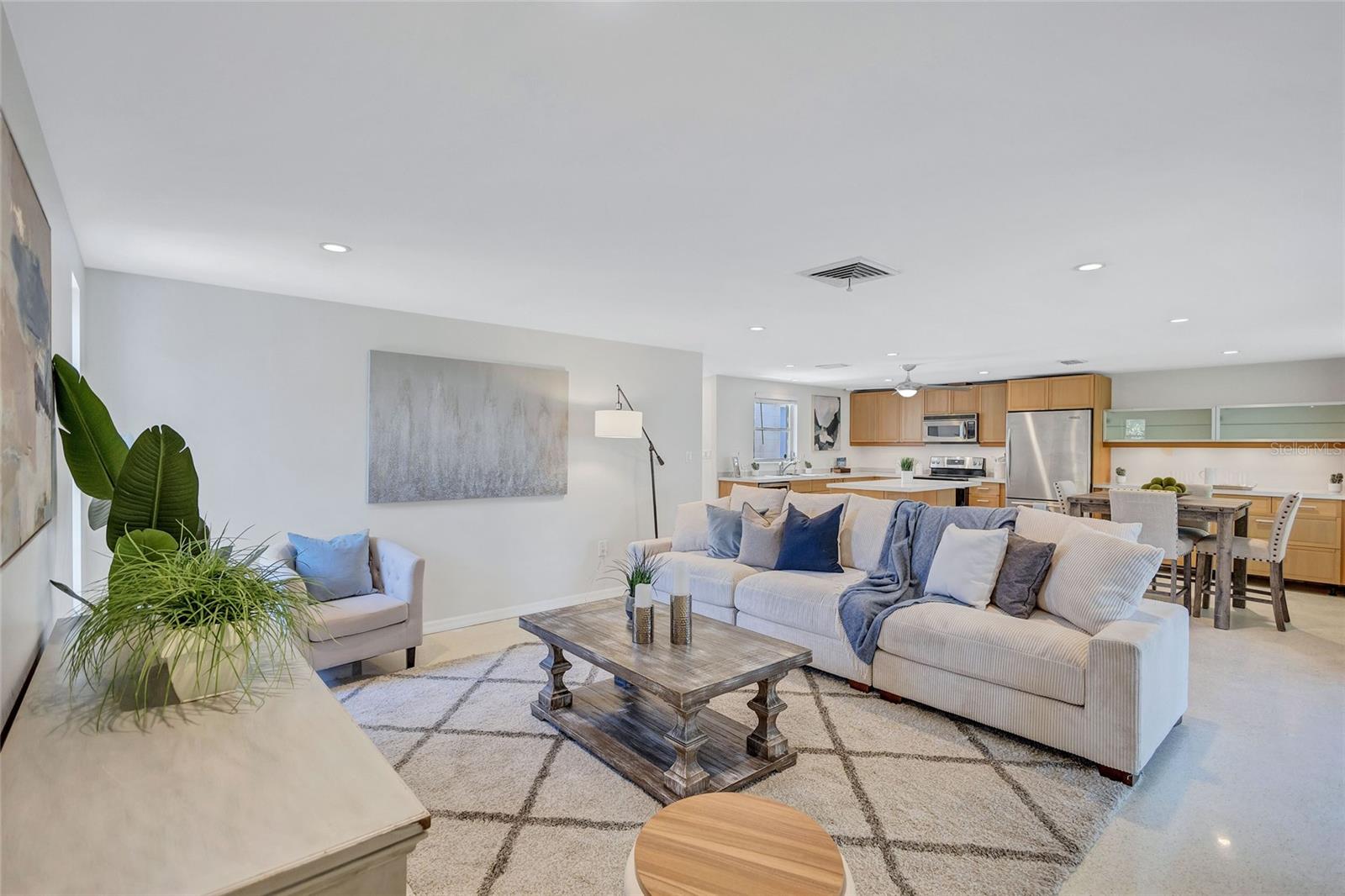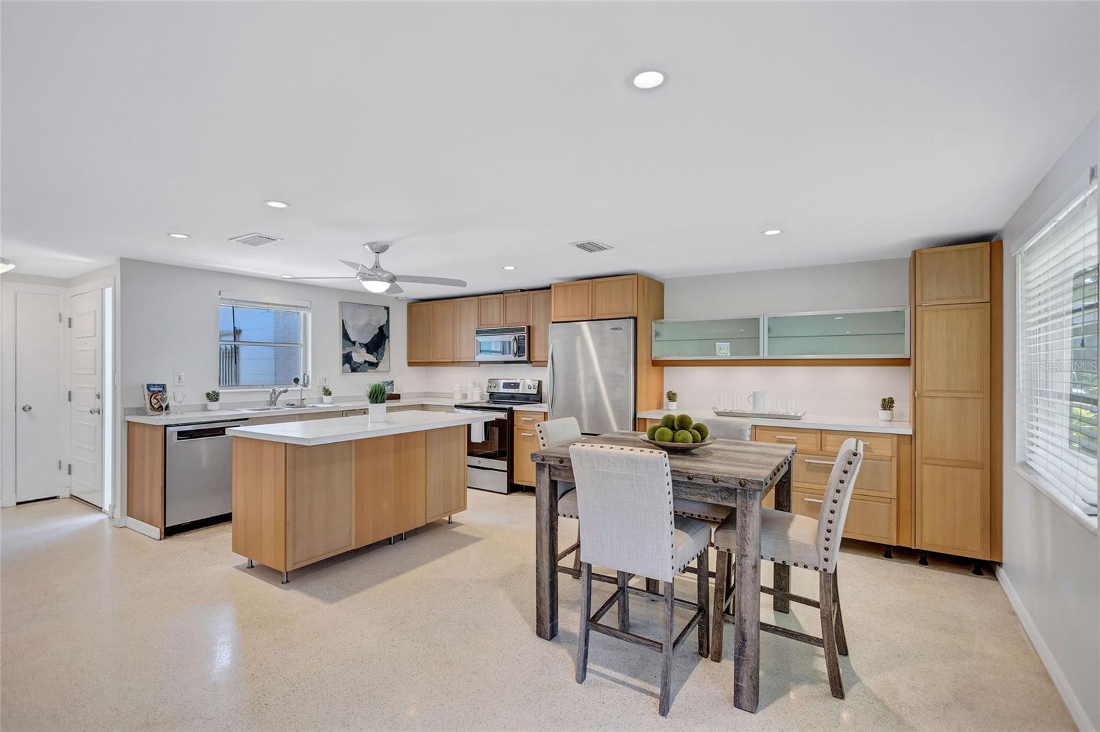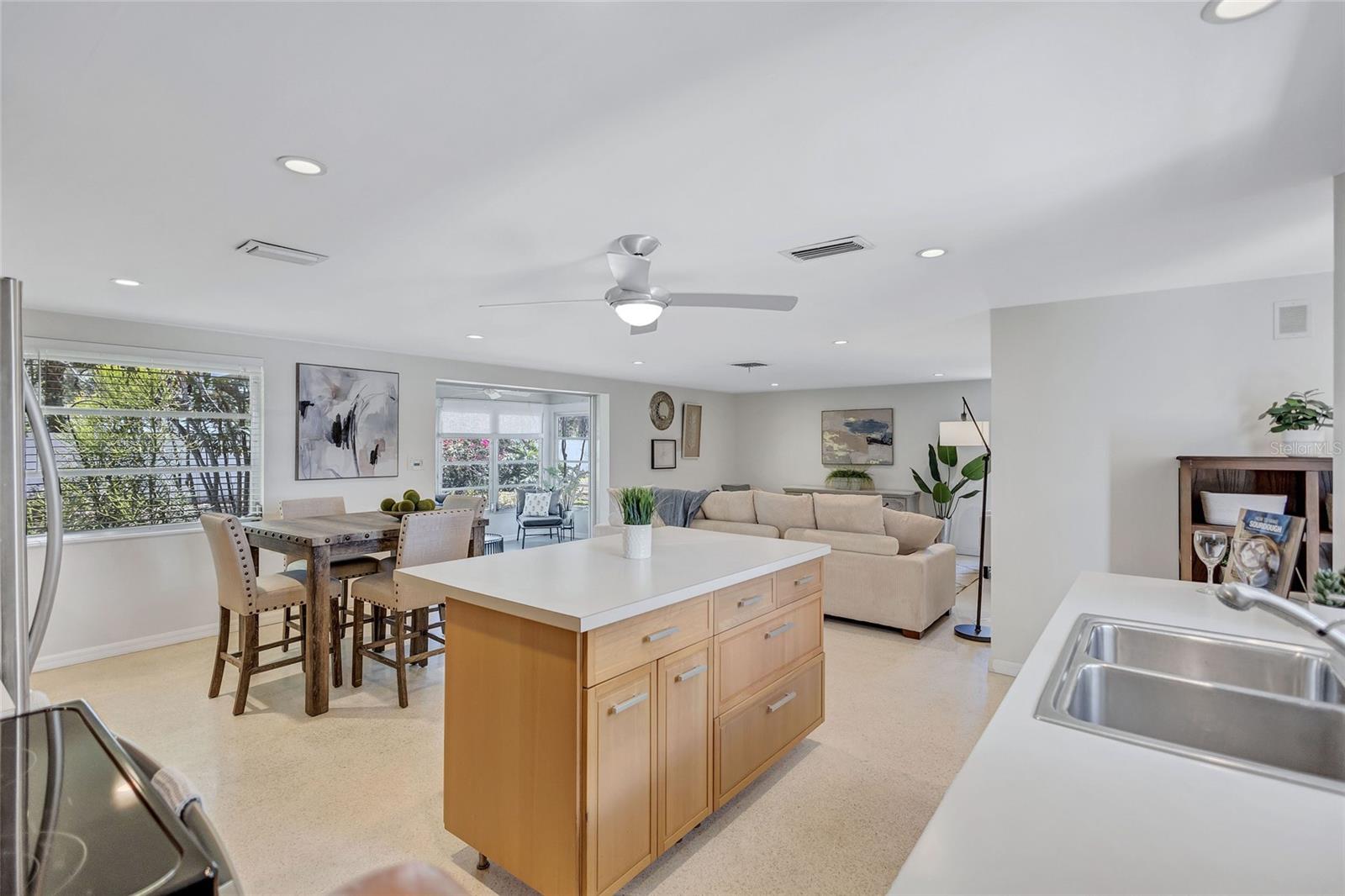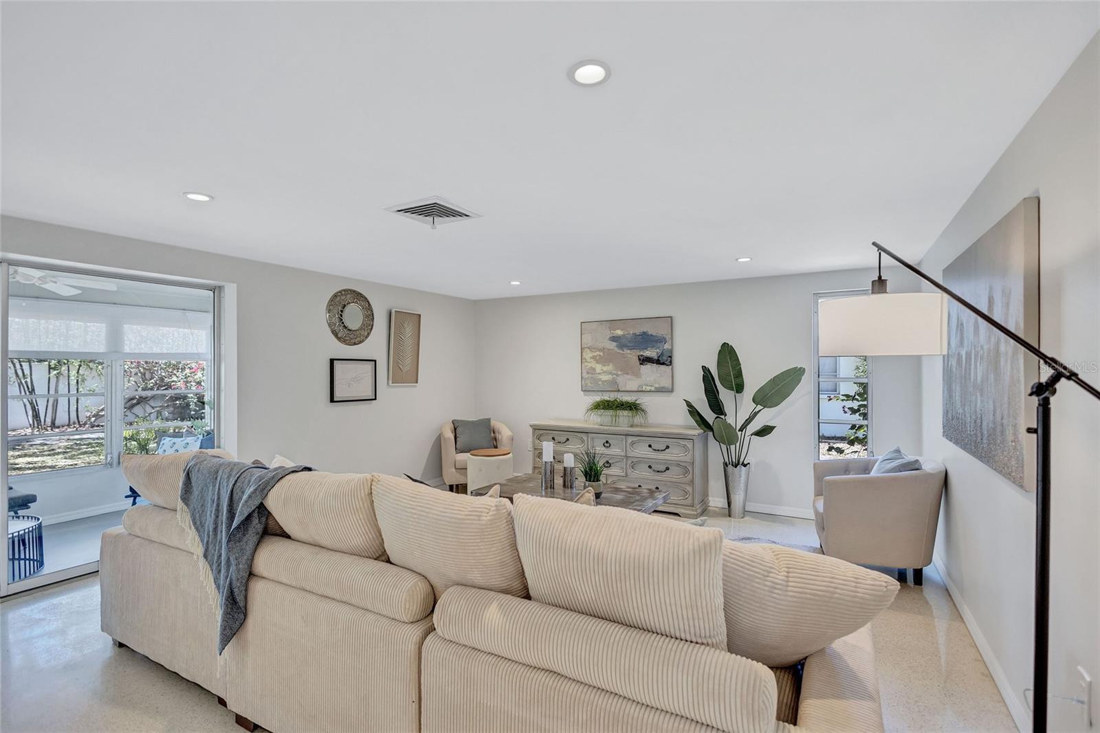 Located just north of the Gulf Gate Village, this quiet street of single family homes is one of the best-kept secrets in Sarasota! This professionally redesigned & fully renovated 2-bedroom, 2-bathroom w/enclosed breezeway residence offers a perfect blend of classic style & contemporary living. Step inside and be greeted by a light & bright open floor plan, where the heart of the home is a chef's dream kitchen. The designer kitchen features solid wood cabinetry, ample storage, newer appliances, task & undercounter lighting. The stylish floating island provides extra storage & bar seating. The tasteful design elongates into the dining area anchored by a large credenza & features sleek, frosted glass butterfly opening upper wall cabinets. The open space seamlessly flows into the cozy great room and the outside enclosed porch, a versatile area with glass windows & screens, perfect for relaxing & entertaining. Outside, mature maintenance-free landscaping, including a majestic oak tree framing the backyard, creates a serene & private oasis. This freshly painted, move-in ready home has a 2022 Roof, 2020 HVAC with 2022 UV lights and new ductwork, & a 2020 Hot Water Heater. The low monthly Homeowners Association fee of $135 includes maintenance-free landscaping & internet service! A detached utility building with laundry provides added convenience, and a carport provides protected parking. Perhaps the best feature of all is the location - just steps away, yet peacefully tucked away from the vibrant GULF GATE VILLAGE. If you are looking for a place that feels like home, a place where community connections are valued & the excitement of walking to explore Gulf Gate's local shops, services & restaurants - you have arrived! Don't delay on scheduling your private showing before this golden opportunity is gone!