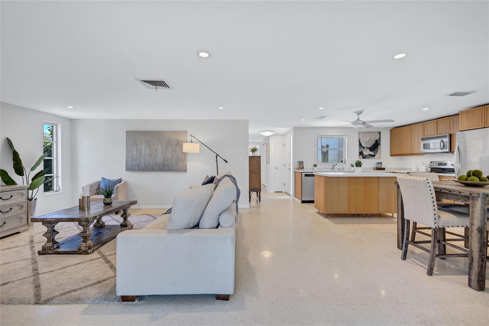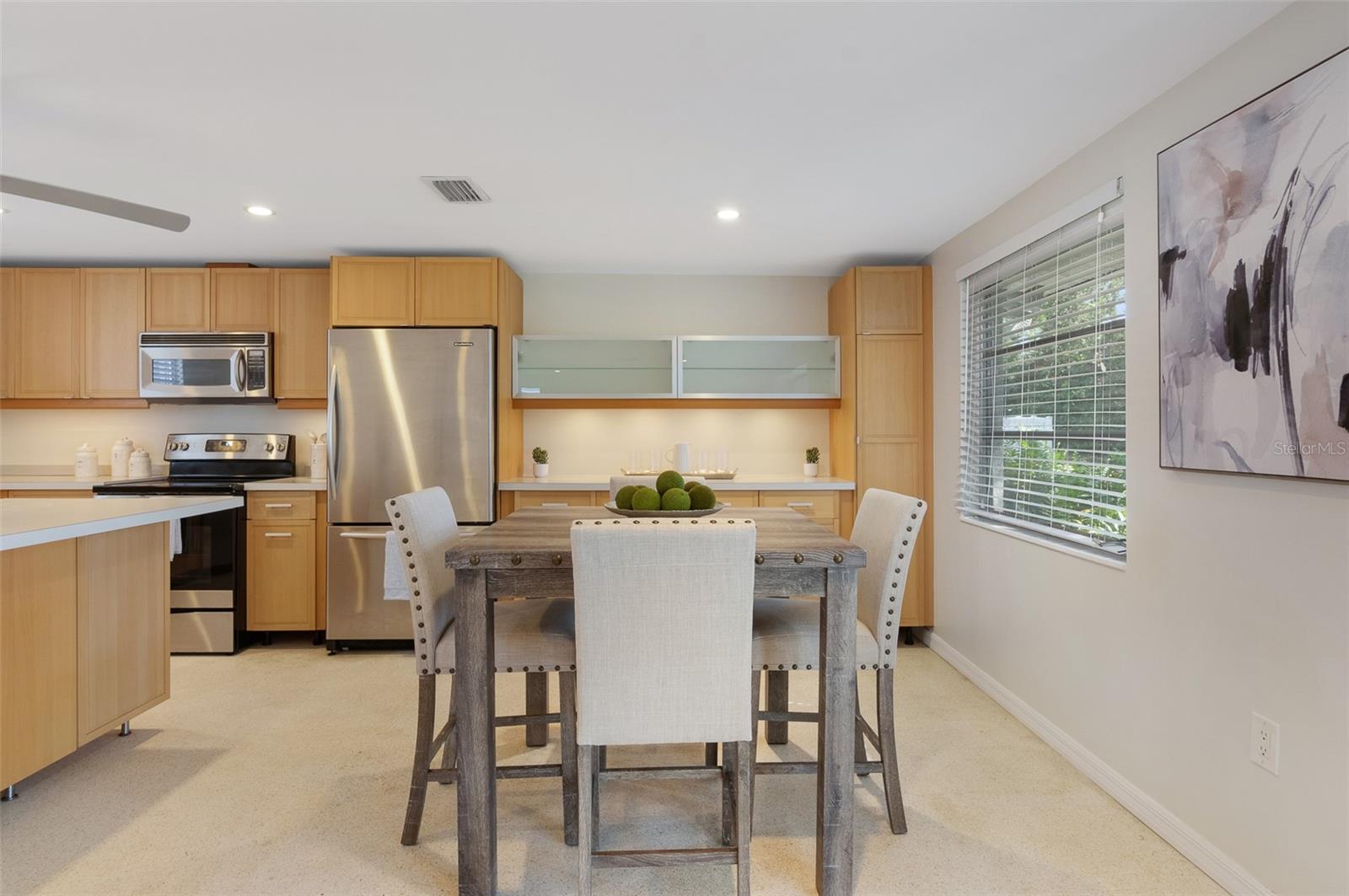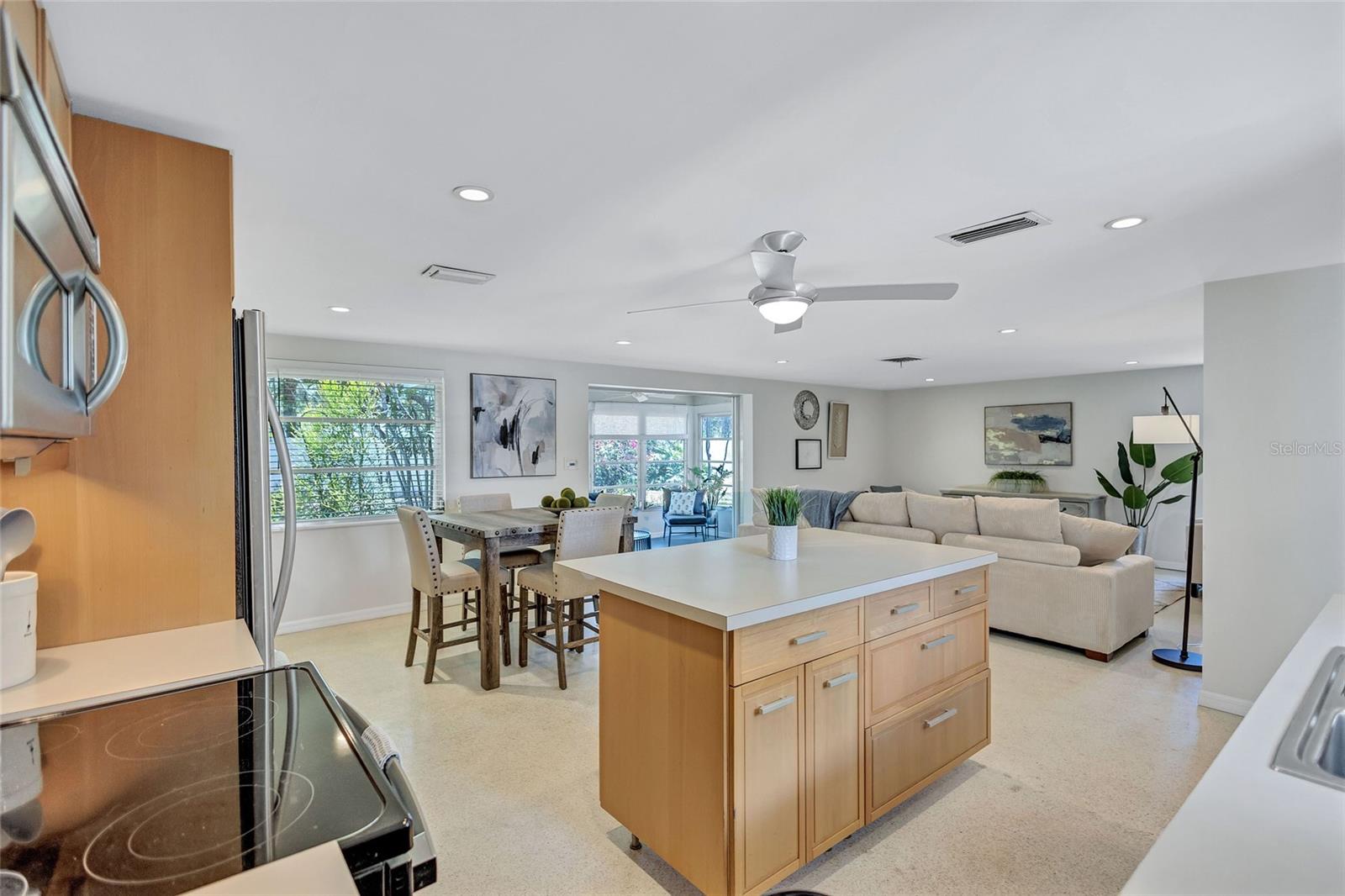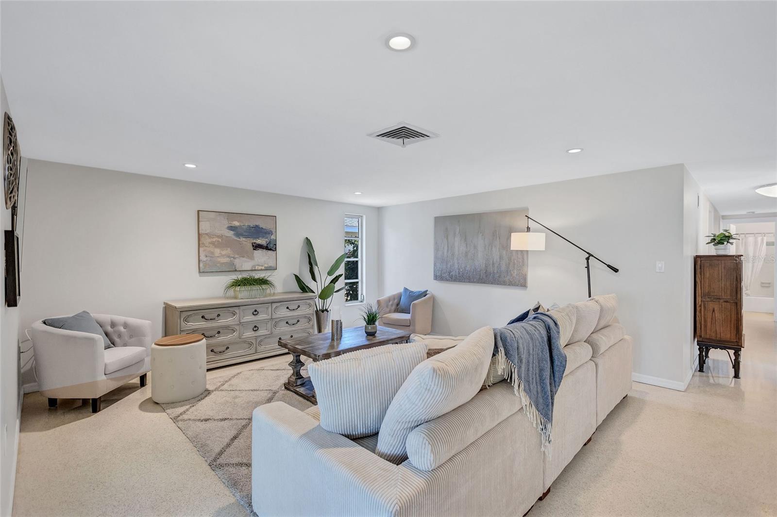 Located just north of the Gulf Gate Village, this quiet street of single family homes is one of the best-kept secrets in Sarasota! This professionally redesigned & fully renovated 2-bedroom, 2-bathroom w/enclosed breezeway residence offers a perfect blend of classic style & contemporary living. Step inside and be greeted by a light & bright open floor plan, where the heart of the home is a chef's dream kitchen. The designer kitchen features solid wood cabinetry, ample storage, newer appliances, task & undercounter lighting. The stylish floating island provides extra storage & bar seating. The tasteful design elongates into the dining area anchored by a large credenza & features sleek, frosted glass butterfly opening upper wall cabinets. The open space seamlessly flows into the cozy great room and the outside enclosed porch, a versatile area with glass windows & screens, perfect for relaxing & entertaining. Outside, mature maintenance-free landscaping, including a majestic oak tree framing the backyard, creates a serene & private oasis. This freshly painted, move-in ready home has a 2022 Roof, 2020 HVAC with 2022 UV lights and new ductwork, & a 2020 Hot Water Heater. The low monthly Homeowners Association fee of $135 includes maintenance-free landscaping & internet service! A detached utility building with laundry provides added convenience, and a carport provides protected parking. Perhaps the best feature of all is the location - just steps away, yet peacefully tucked away from the vibrant GULF GATE VILLAGE. If you are looking for a place that feels like home, a place where community connections are valued & the excitement of walking to explore Gulf Gate's local shops, services & restaurants - you have arrived! Don't delay on scheduling your private showing before this golden opportunity is gone!