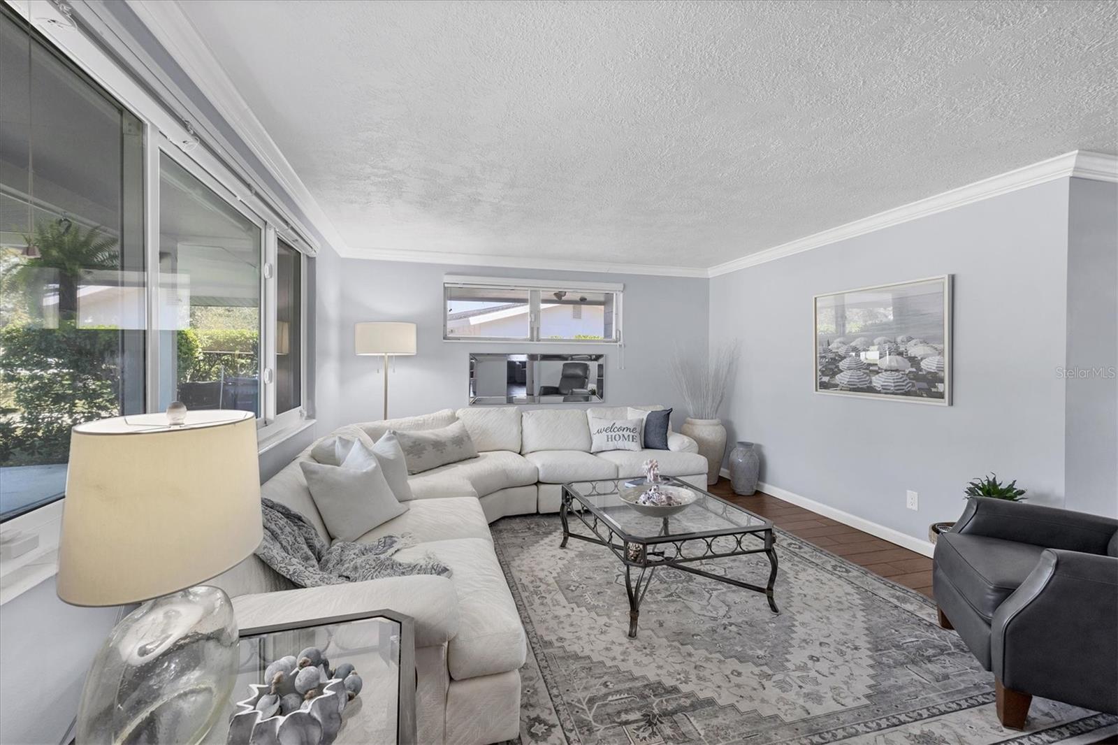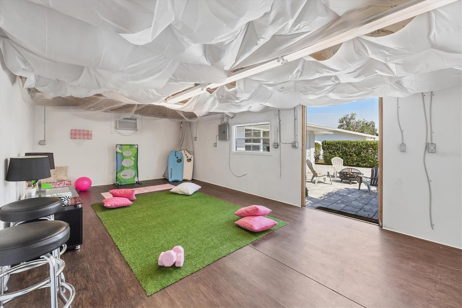The absolute coolest feature of this home is the MASSIVE, FULLY PERMITTED flex space in the rear of the home! The 37 x 16 attached space is drywalled and equipped with A/C & electrical. The possibilities for this room are endless--perfect for a home gym, workshop, studio, home office, pool house or guest suite. It won't take much to finish off the space! Gulf Gate is known for its large, flat lots, giving owners ample room to grow, with potential for future home additions and amazing outdoor spaces.