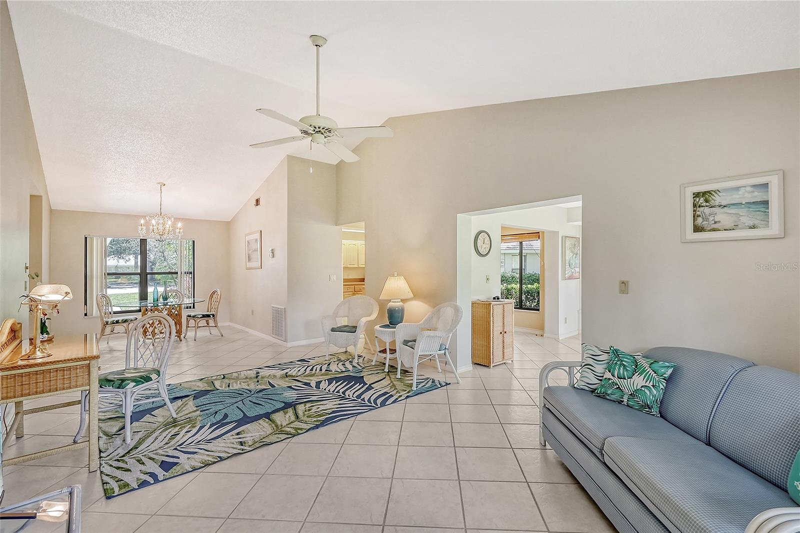 The open concept living area is perfect for entertaining, featuring high ceilings and abundant natural light.