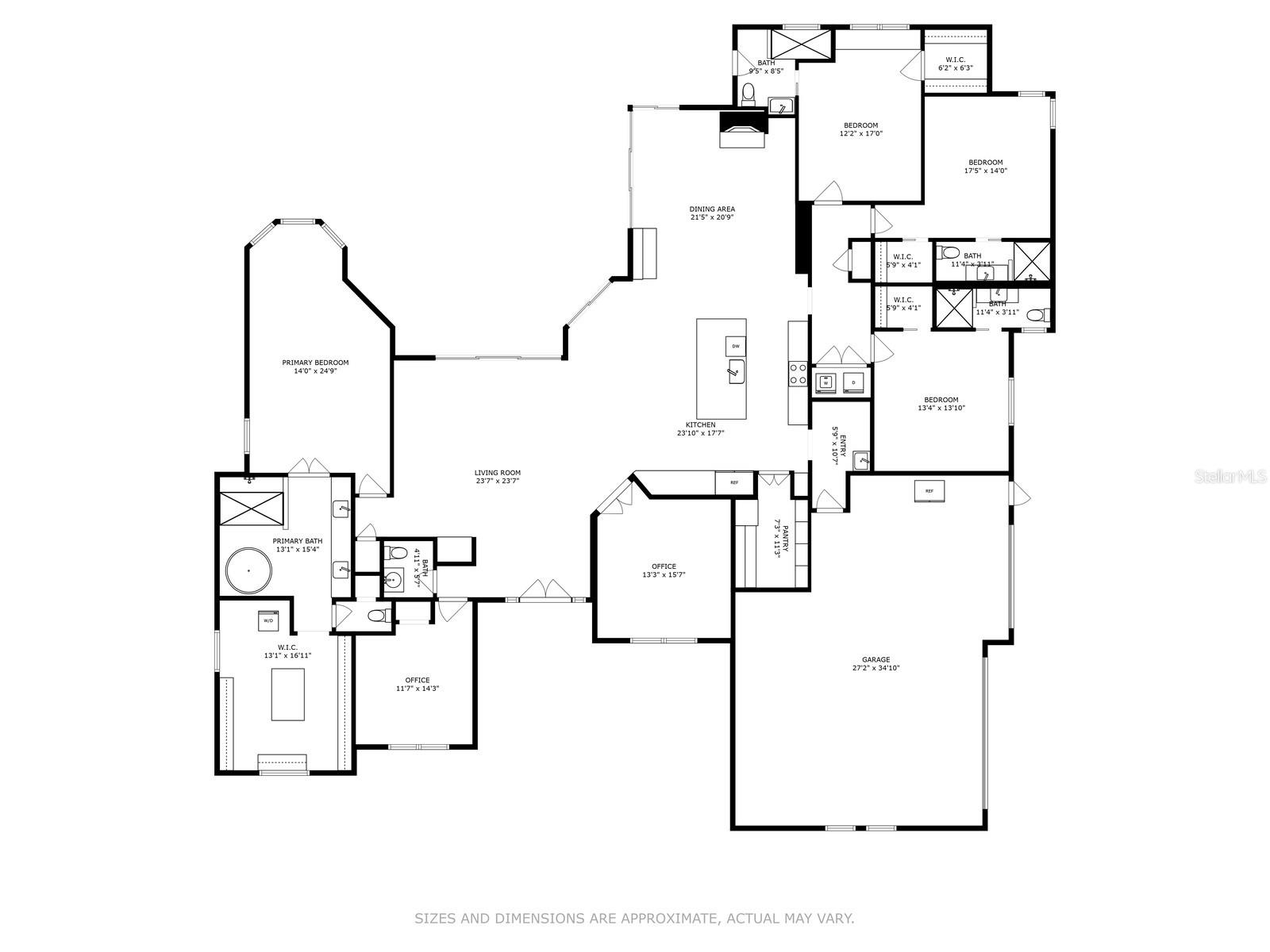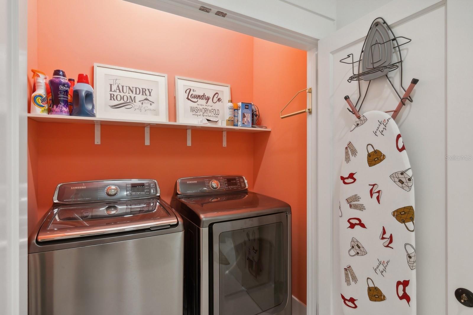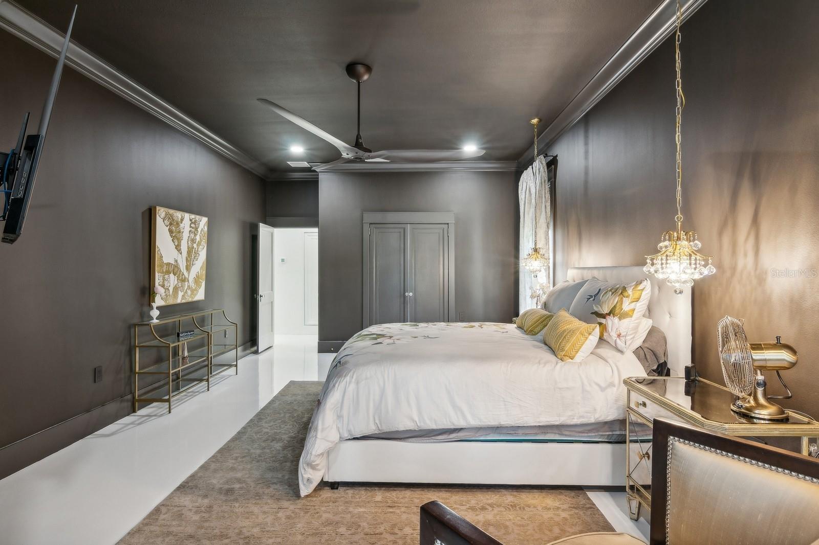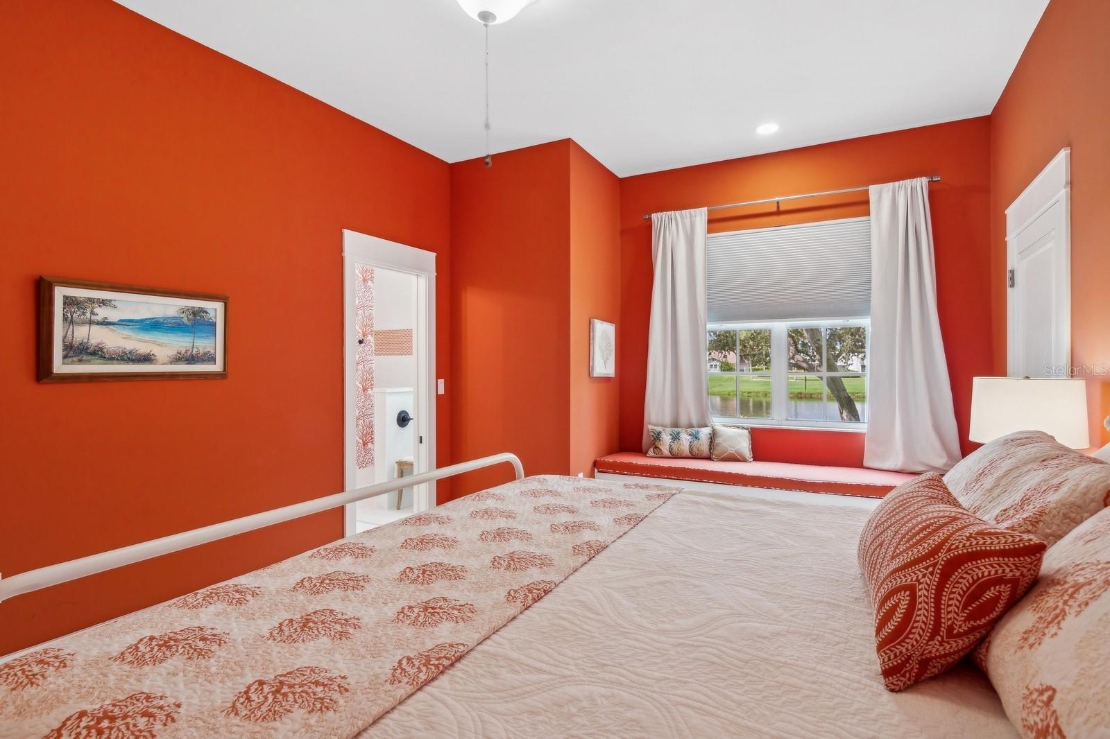 The owner's wing offers a luxurious bedroom suite with a spa-like bath featuring a soaking tub, zero-entry shower, dual sinks, custom cabinetry with accent lighting, a dressing room, and ensuite laundry--a true sanctuary for comfort and accessibility.