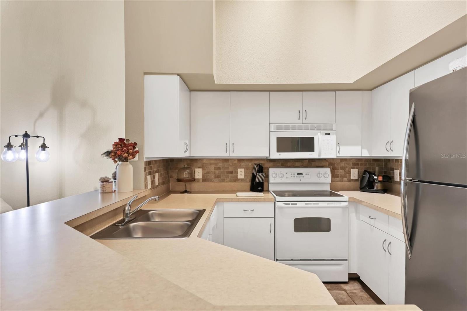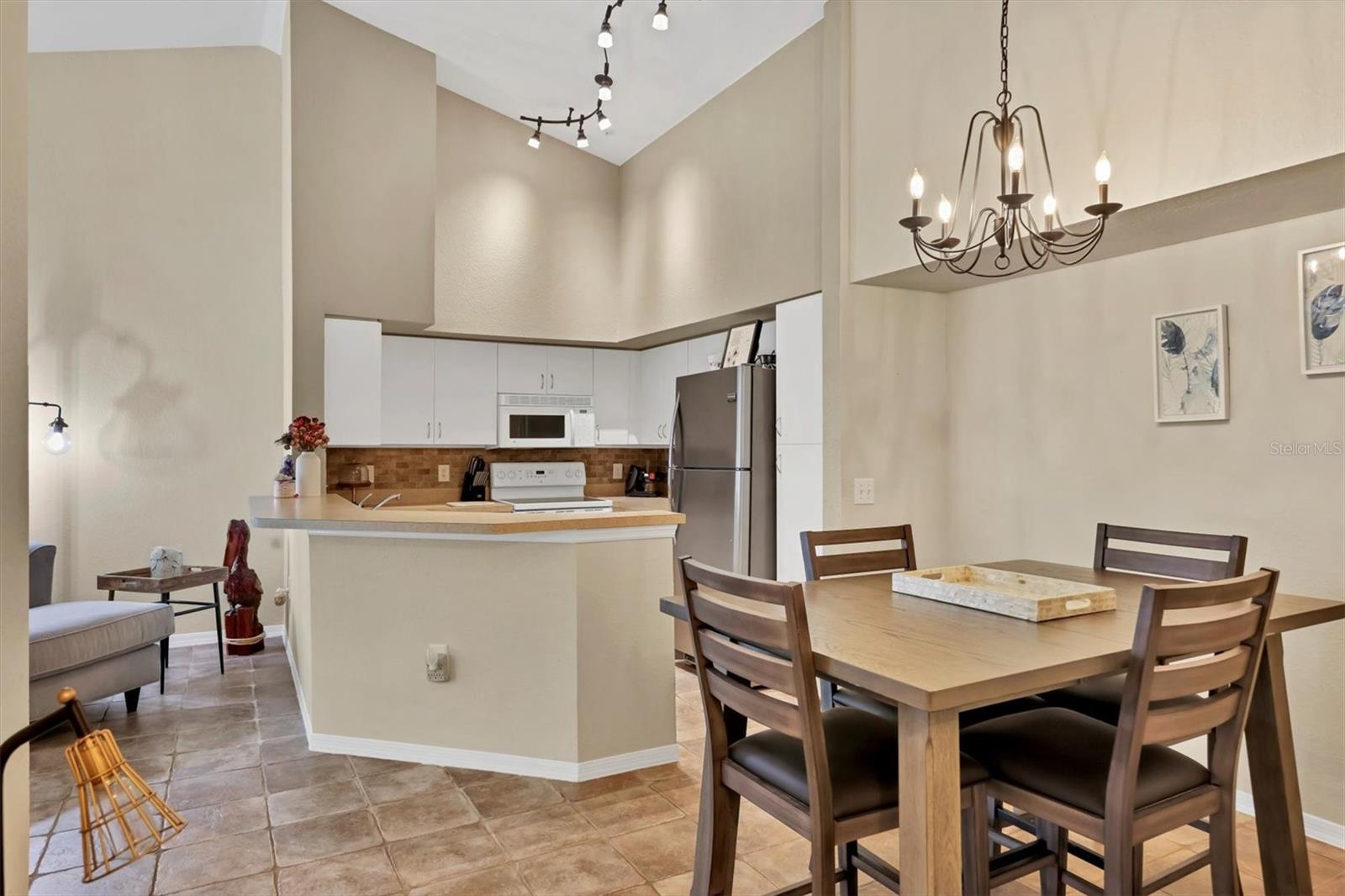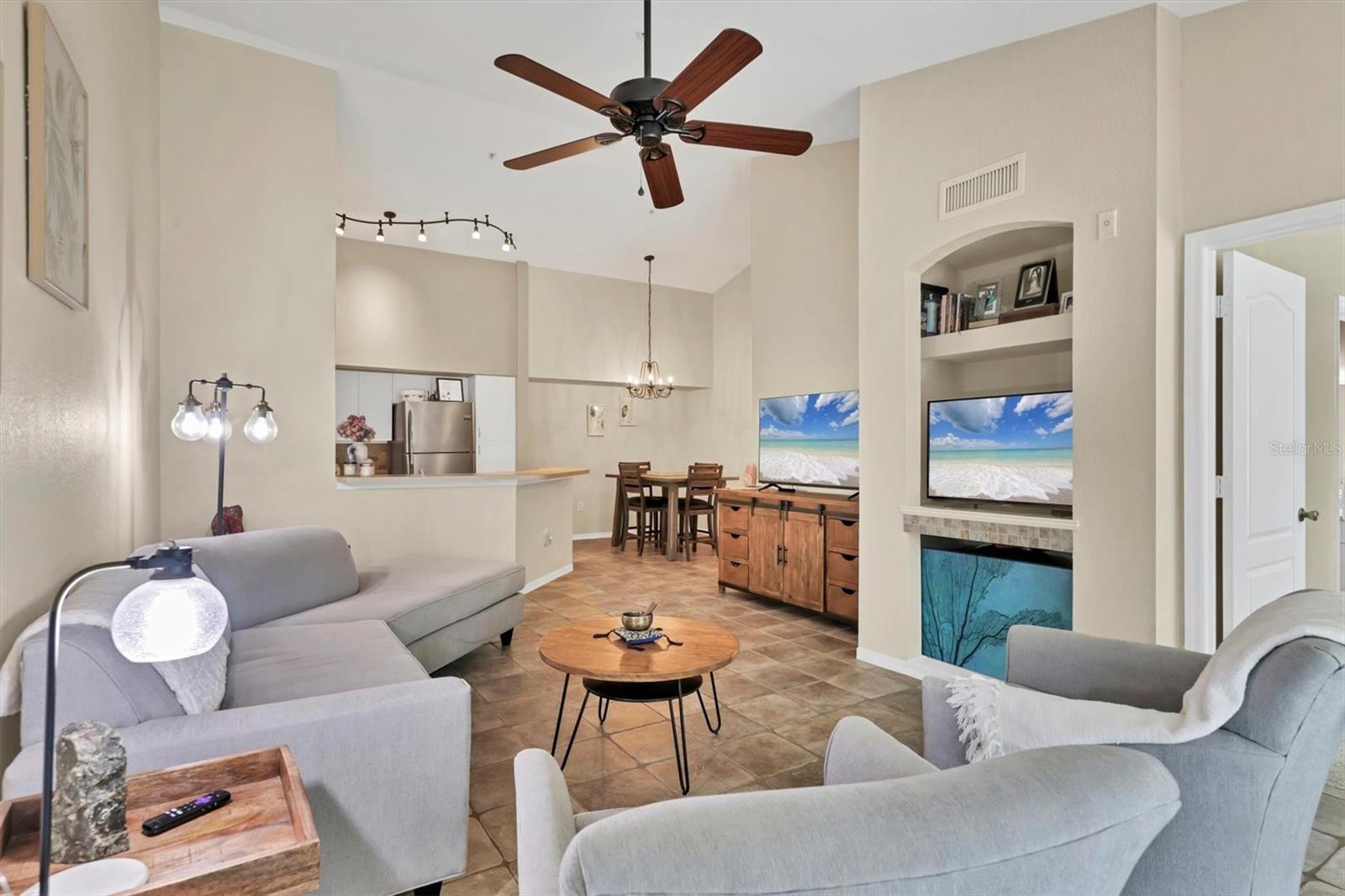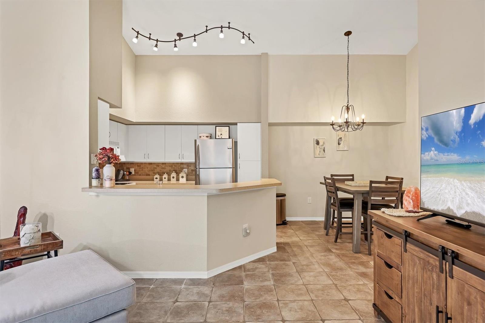 Step inside and immediately feel the openness created by vaulted ceilings and abundant windows that fill the home with natural light. The expansive 12' x 28' great room offers endless possibilities--create a guest sleeping space, add a home office, or design a cozy sunroom retreat. The open layout also includes a kitchen with breakfast bar, dining area, and a separate laundry room for added convenience. As an end unit with no neighbors above or below, you'll enjoy both peace and privacy. Below the unit is a garage (not included), and this home comes with its own dedicated covered carport plus ample guest parking. Additional safety features throughout condominium are in unit sprinkler system and fire alarms.