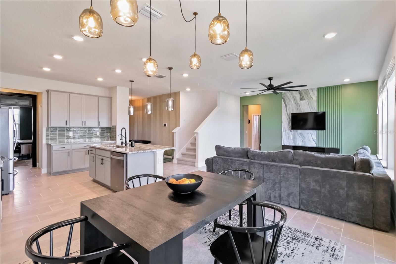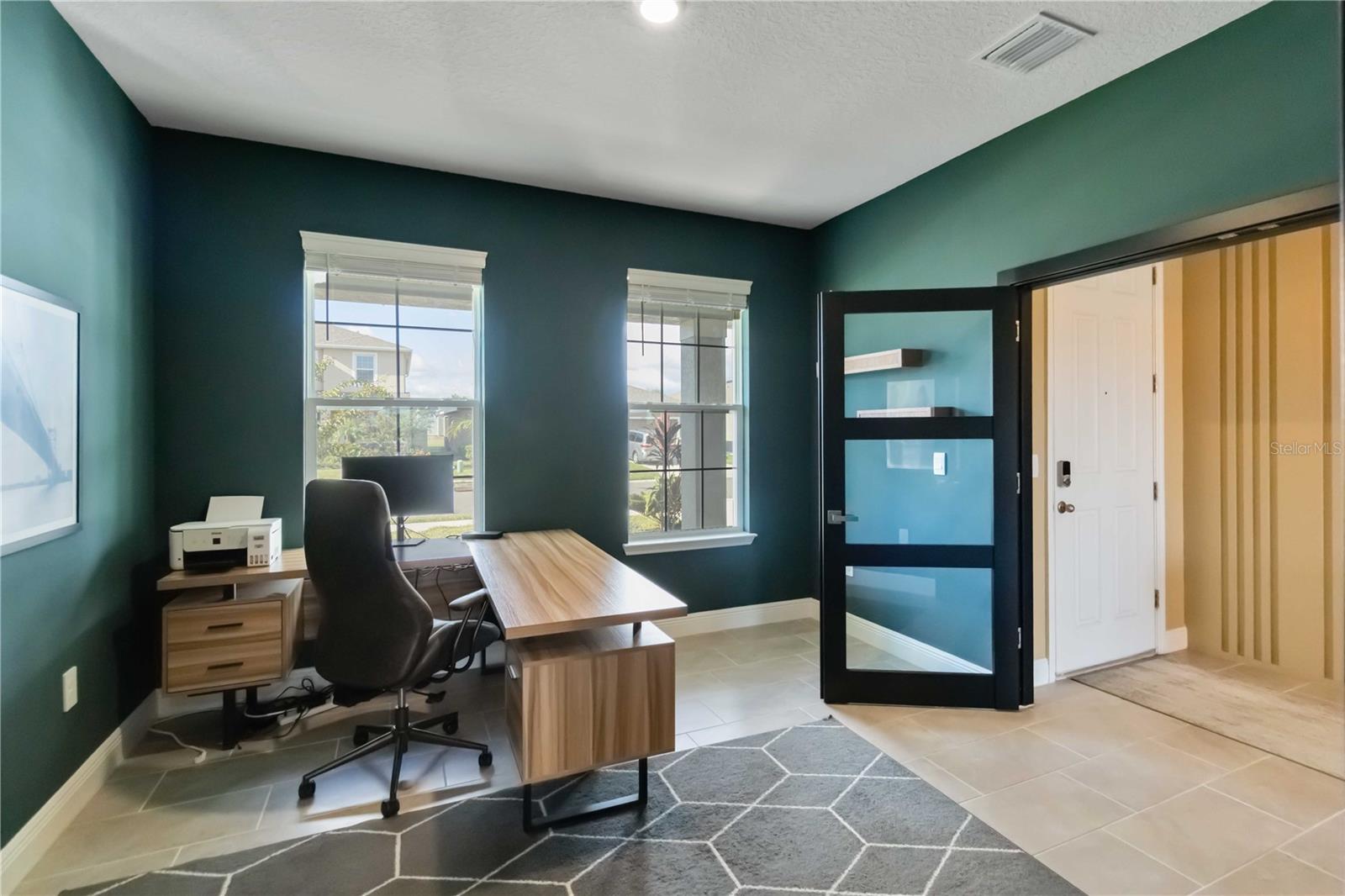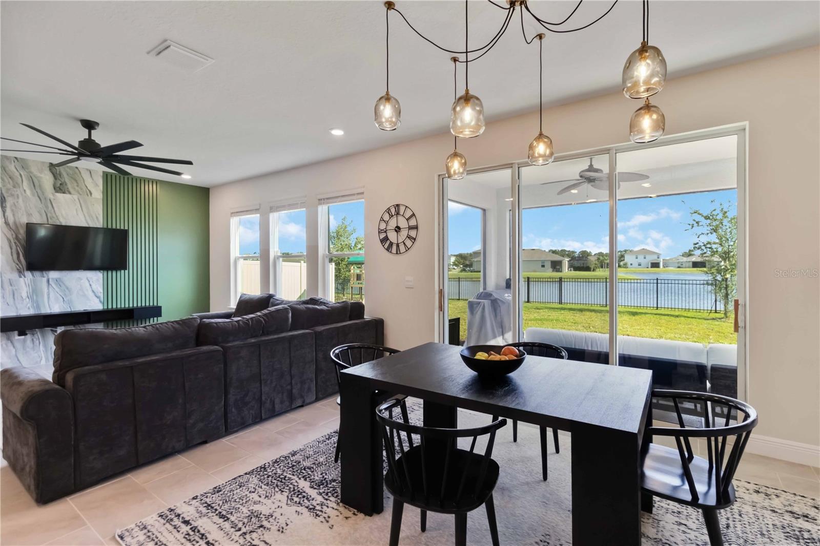 Close by Nov 30 and the seller will contribute $15,000 toward your closing costs (paid at closing; subject to lender/loan guidelines). Not your builder-grade home--this designer-styled Lakewood Ranch residence pairs curated finishes with a private, southeast-facing backyard for sunrise water views. Walkable to the new library and near top area schools and the aquatic center (under construction). A custom foyer accent wall sets the tone; the family room's marble + wood feature wall and upgraded lighting elevate the look. Dedicated home office plus an upstairs bonus room for media, gym, crafts, or a second office.