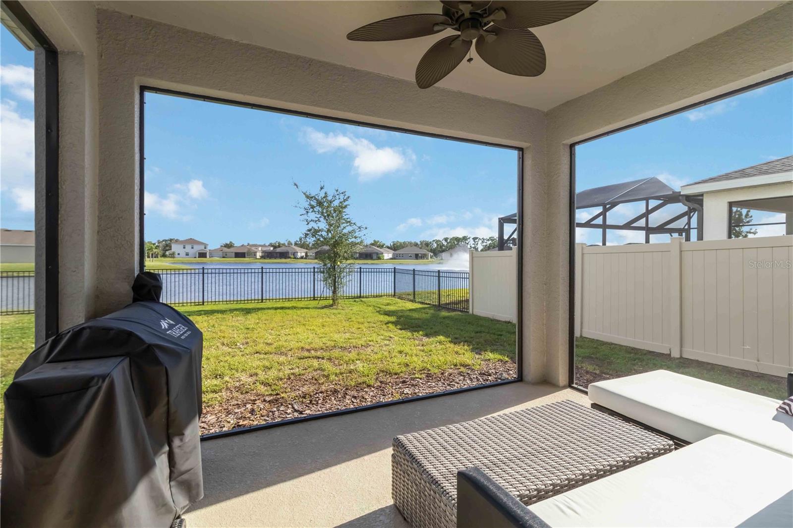 Outdoor living shines with a screened-in lanai and fenced backyard that frame the peaceful water view--morning coffee never looked better. Thoughtful upgrades continue behind the scenes with a water filtration system for everyday comfort. The sellers purchased new construction and styled it as their "forever" home; a fantastic out-of-state job opportunity prompted the move, creating a turnkey chance for the next owner. The owners' favorite aspect is the generous size and the flexible use of the extra spaces, which make the home live easily and adapt to many needs.