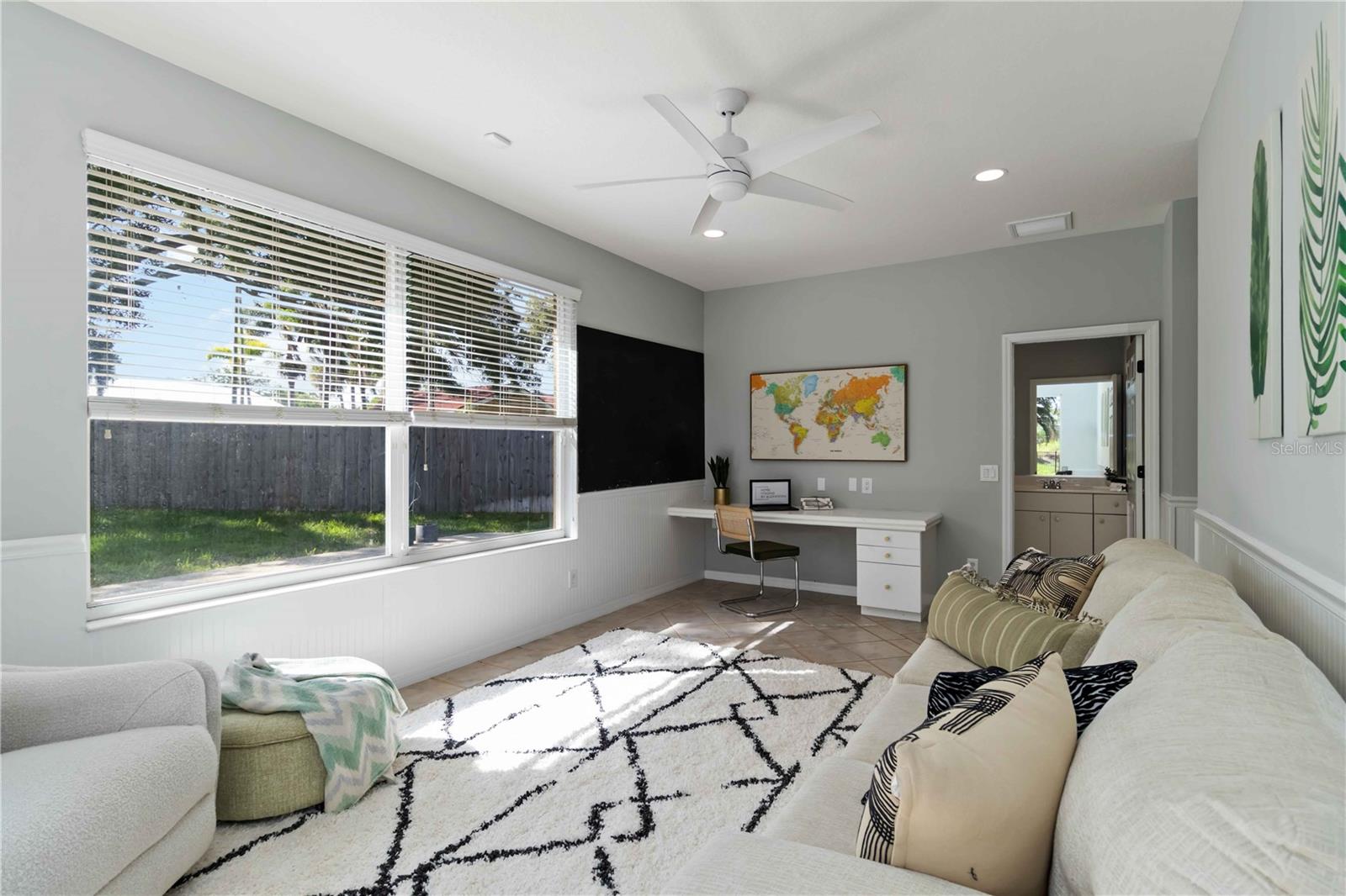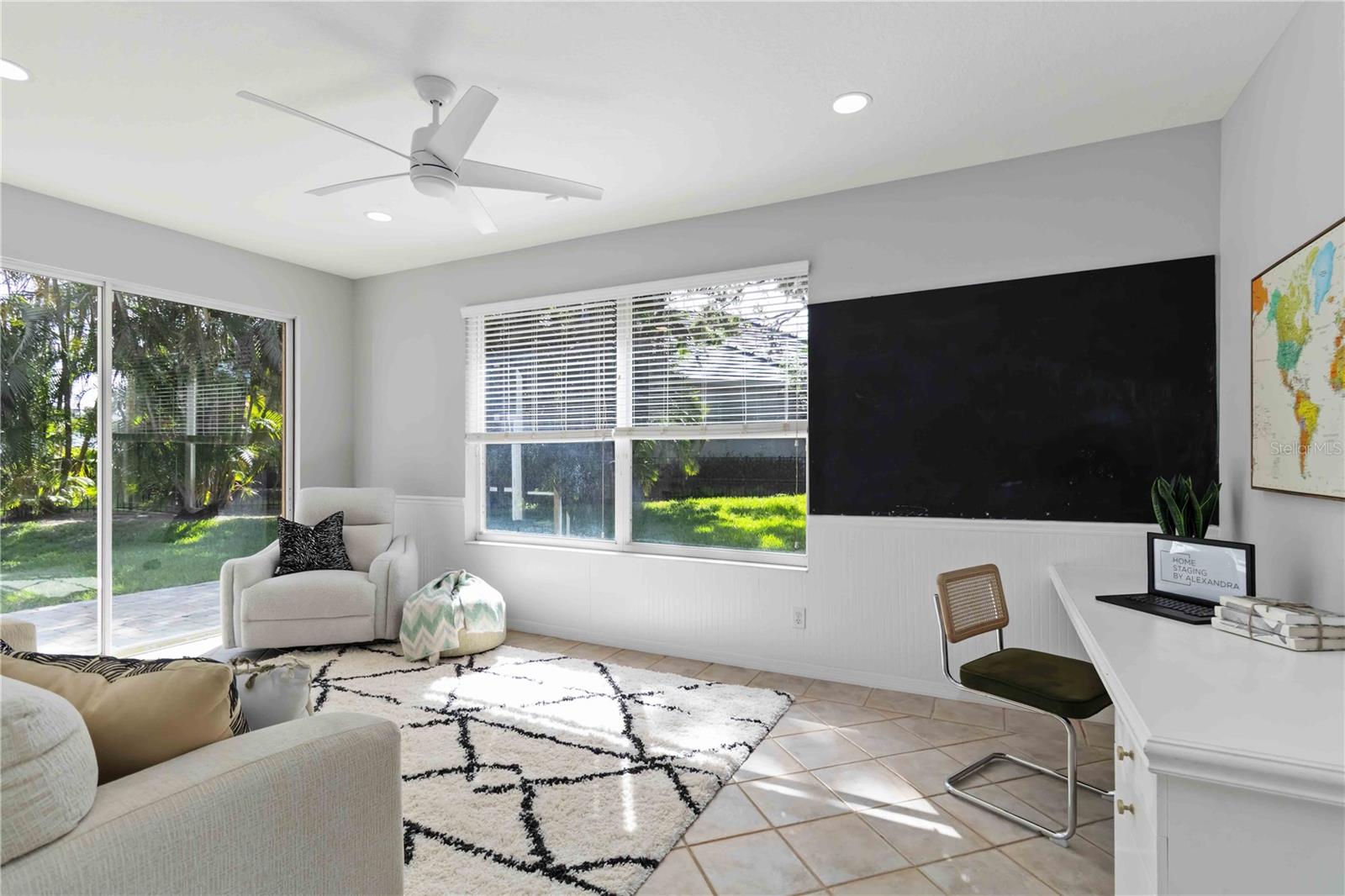 Tranquil Cul-de-Sac Living with Modern Versatility & Major Upgrades. Nestled at the end of a quiet cul-de-sac, this immaculate residence offers a rare combination of serene privacy and exceptional functionality. From the moment you step inside, the home unfolds into a bright, sun-drenched open layout, freshly painted in a chic neutral palette that creates a truly move-in-ready experience. The thoughtfully designed split-bedroom floor plan ensures a private primary suite sanctuary, separate from the guest bedrooms. Work-from-home is a breeze in the dedicated home office, while the expansive bonus room presents a perfect flex space--ready for your imagination to transform it into a media room, gym, or grand playroom. The heart of this home extends to the outdoors. Your private, fully-fenced backyard is a canvas for gardens and recreation, while the generous screened lanai provides an ideal setting for morning coffee or alfresco dining with friends and family.