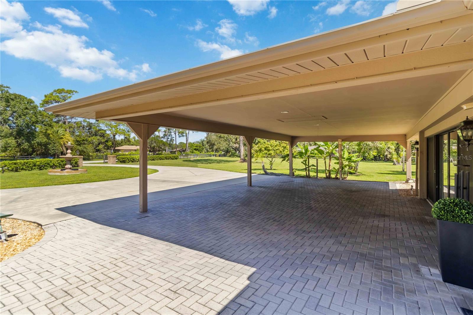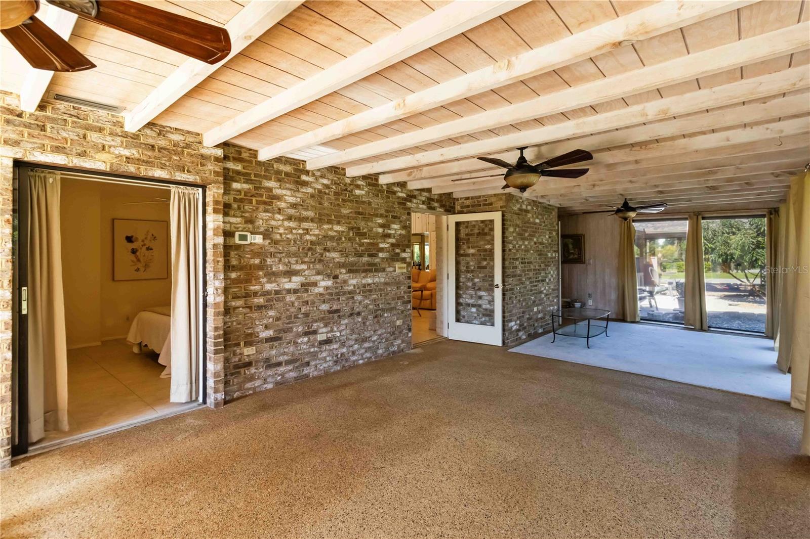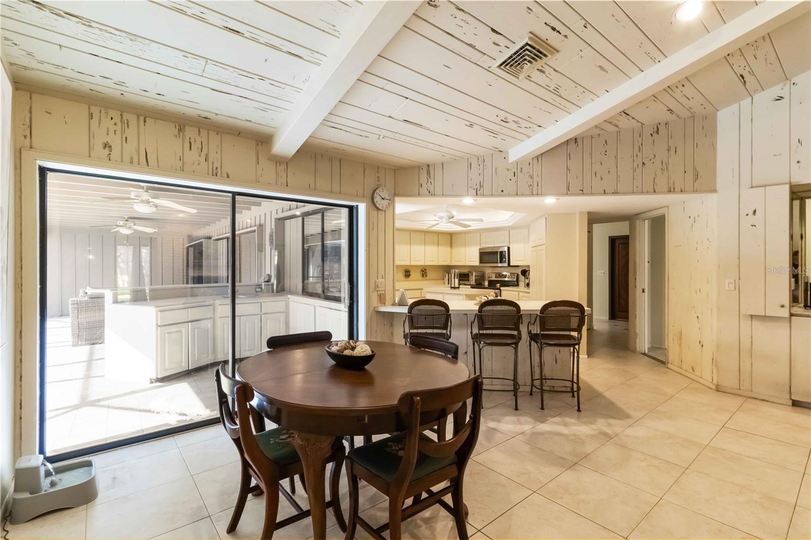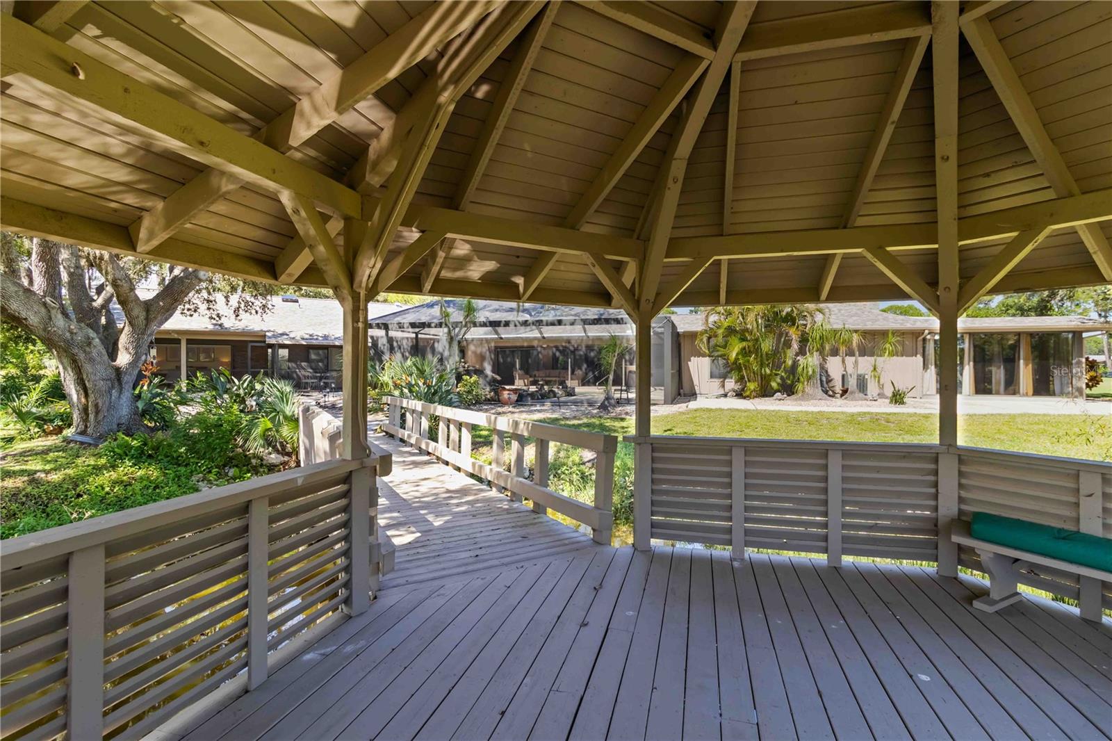 This home has a total of four bedrooms, two with ensuite bathrooms, all with sizable walk-in closets and four and a half baths. A formal living and dining room, eat in family room with a wood burning fireplace, wet bar and vaulted pecky cypress ceiling and walls, all add up to a great home to gather. The home also boasts a converted garage space which adds an additional air conditioned 500 square feet, plus a glass enclosed Florida room 555 square feet, these two areas add over 1,000 living square feet not included in the county records. Outside there is a large screened patio to truly enjoy the garden views, four car covered carport, free standing Barn/Workshop with garage door access and attached screened potting shed and a defunct pump house that could become a man cave or she shed!