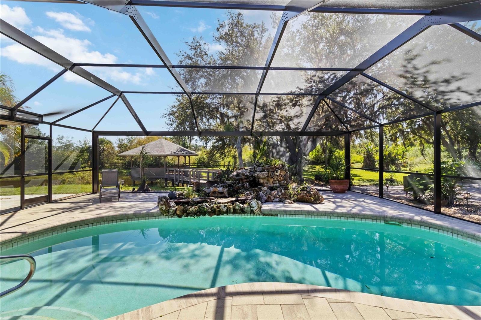 Conveniently positioned one mile East of US 41, within a mile of the Legacy Trail and the nationally-ranked Pine View School. Situated at the end of a cul-de-sac and bordering a protected preserve, this property offers privacy almost impossible to find West of I75 in Sarasota County. From nearly every window in the home, enjoy the views of the surrounding nature, a private fish-stocked pond, picturesque gazebo, and well-appointed pool area.