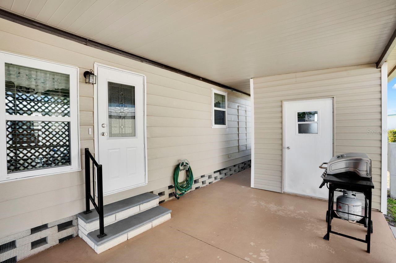 This well-maintained FURNISHED home is the perfect blend of comfort, affordability, and 55+ WATERFRONT COMMUNITY living! Create your tropical lifestyle at this turnkey furnished 2-bedroom, 2-bathroom home located in the resident-owned community of Harbor Cove. Rent a boat slip for only $100 per YEAR and explore the majestic Myakka River all the way to the GULF! This fresh and super clean interior offers 1,006 square feet of living with the option of enjoying breezes on the screened lanai. The modern updates include hurricane impact windows installed in 2020, new efficient AC unit in 2024, and new metal roof in 2025, Inside, find nicely painted interiors, cathedral ceilings, plenty of storage, plus dishes, bedding, furniture and everything you need to move right in. The bright kitchen has attractive solid-surface countertops, closet pantry and all appliances including a nice range hood, dishwasher and disposal. Savor meals and gatherings with friends in the dining area with its outdoor views provided by multiple windows. Settle into comfortable seating in the living room and bring the outside in with open French doors to the lanai. The screened lanai is elevated and the perfect place for morning coffee or an evening beverage during sunset. The spacious primary bedroom has an ensuite bathroom and walk-in closet and guests have their own space in the spare bedroom with trundle bed. The hall bathroom has a large closet currently used for a small freezer and storage space but also has washer dryer hookups should you want to move them inside from the shed. Harbor Cove offers fantastic amenities including a 90-slip marina with new docks, boat ramp, two pools, a spa, fitness center, bocce, tennis, pickleball, shuffleboard courts, and a two-story clubhouse overlooking the marina. It is easy to stay active here as residents can participate in organized events such as art classes, dances, games, picnics, water aerobics and volleyball, golf cart parades and holiday parties. Landscaped grounds provide opportunities for peaceful wildlife watching and boating enthusiasts will love hopping in the boat for exploring and fishing adventures on the water. This home comes with a Membership Share, voting rights and lawn mowing service. Conveniently located on one of the quieter streets in the neighborhood, it's just minutes from beaches, restaurants, shopping, farmers' markets, golf courses, spring training baseball, and quality medical services. Don't miss the chance to make this your home!
