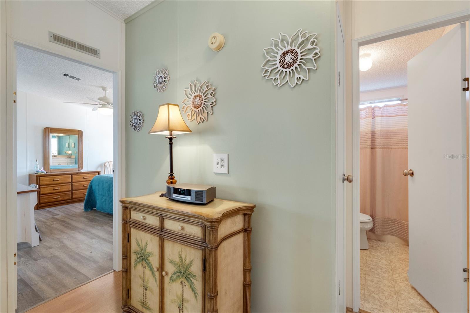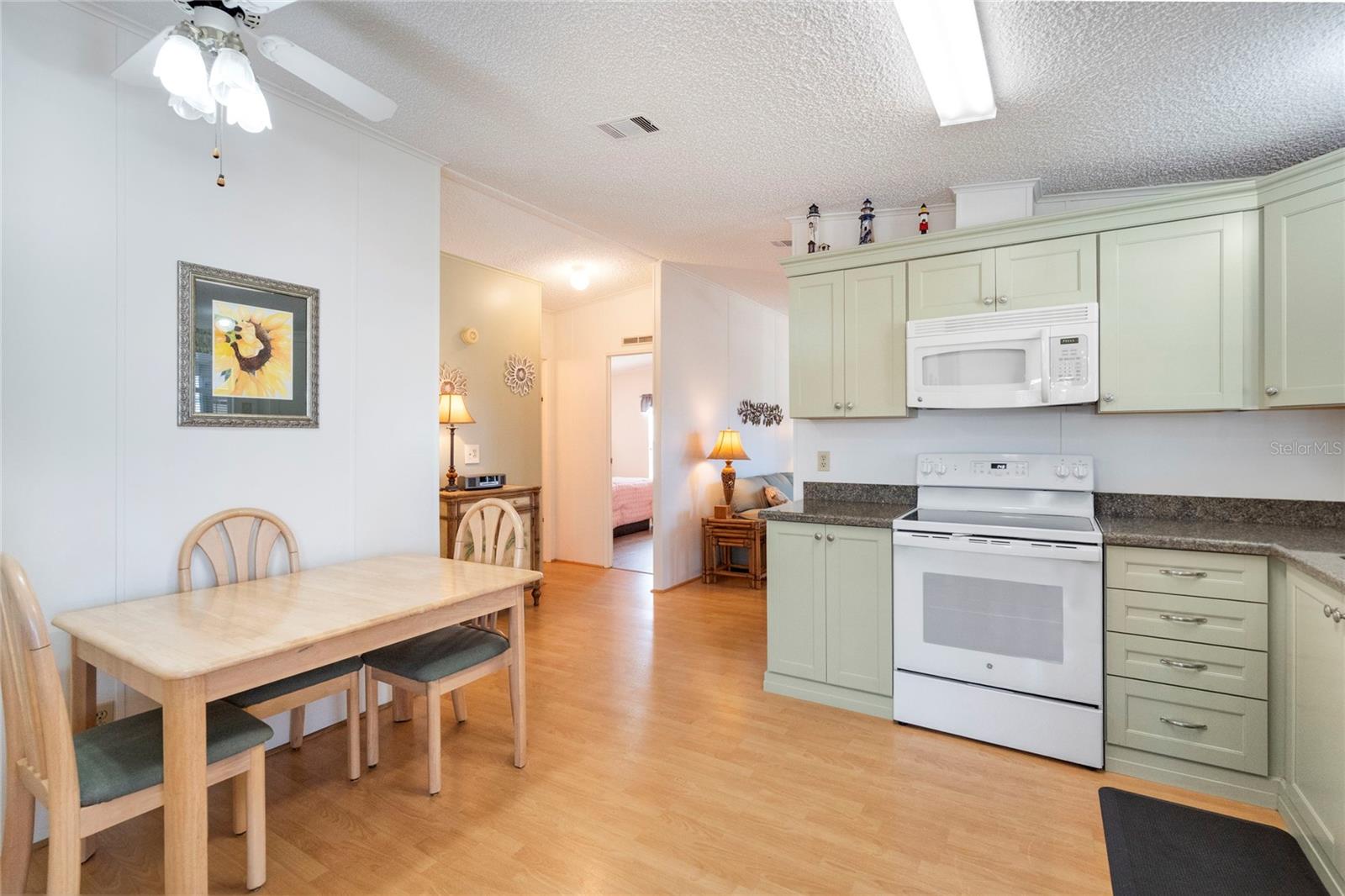 Welcome to Harbor Cove, an affordable, amenity-rich 55+ community along the Myakka River with Gulf access and a 90-slip marina. Residents here enjoy a vibrant lifestyle with a 17,000 sq ft clubhouse hosting dances, parties, picnics, talent shows, card games, and more with an HOA fee of only $175 per month. With a hint of Key West style, this nicely furnished 2-bedroom, 2-bath home features 972 sq ft of living space plus a 120 ft enclosed lanai. The large, updated kitchen with granite counters and newer appliances leads into a spacious living room with sliding doors to the lanai -- perfect for morning coffee or afternoon gatherings with an extra fridge for food and beverages. The primary suite includes an updated bathroom and walk-in closet, while the guest bedroom is generously sized for visitors. Recent upgrades in the last 4 years include an AC unit and ductwork, hot water heater, washer and dryer, carport and lanai roofs, plumbing lines, and even a 50-inch TV. Plenty of dining options to choose from as meals can be enjoyed in the breakfast nook, kitchen dining space, or lanai. The included golf cart is parked under the carport for easy cruising down to the 2 swimming pools, spa, fitness center and various sports courts. A shed housing the washer and dryer provides a bit more storage space. Ideally located near Gulf beaches, dining, shopping, golf courses, spring training baseball parks, farmers markets, and quality medical services offering both recreation and convenience at your doorstep. Schedule a private tour today to see this charming residence!