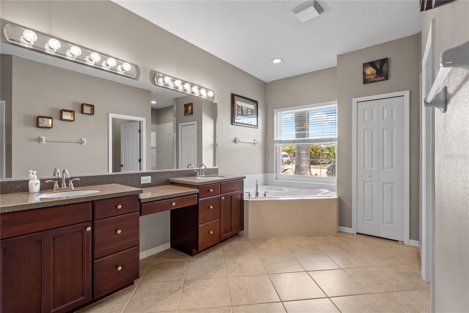 At the heart of the home is a beautifully renovated kitchen featuring brand new stainless steel appliances, ample cabinet space, and a spacious center island perfect for gathering. It also includes a reverse osmosis water filtration system, providing fresh, clean water at your fingertips. The first-floor primary suite is a true retreat, offering a generous walk-in closet and a luxurious en-suite bathroom complete with dual vanities, a garden tub, and a separate shower. An additional bedroom on the first floor makes an ideal guest room or home office.