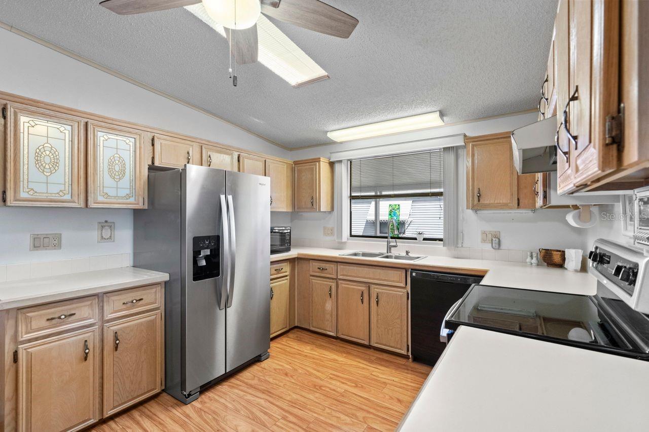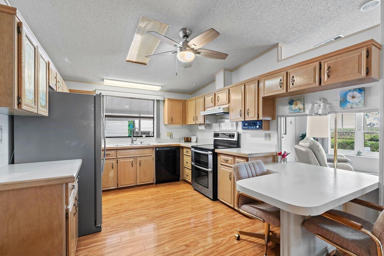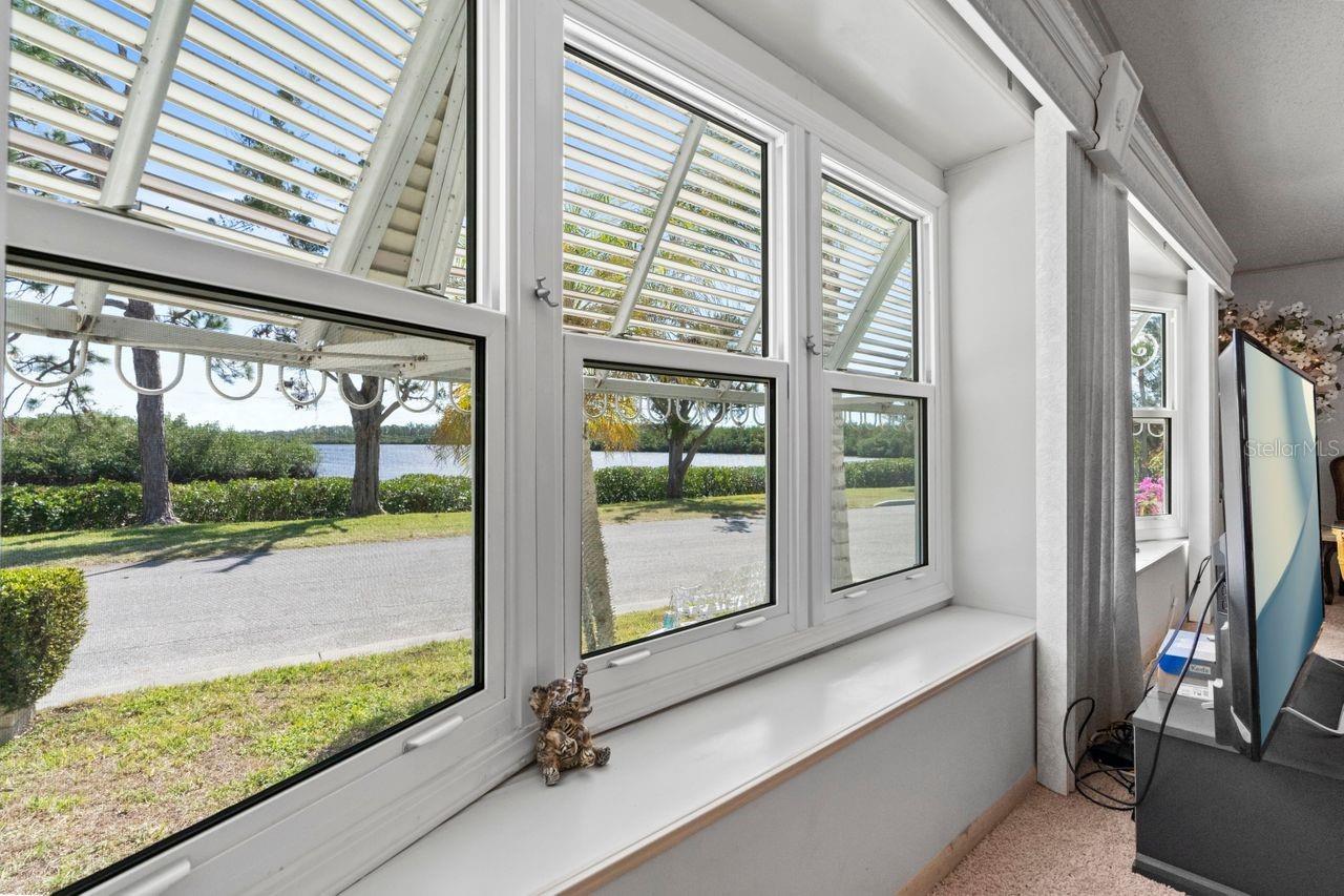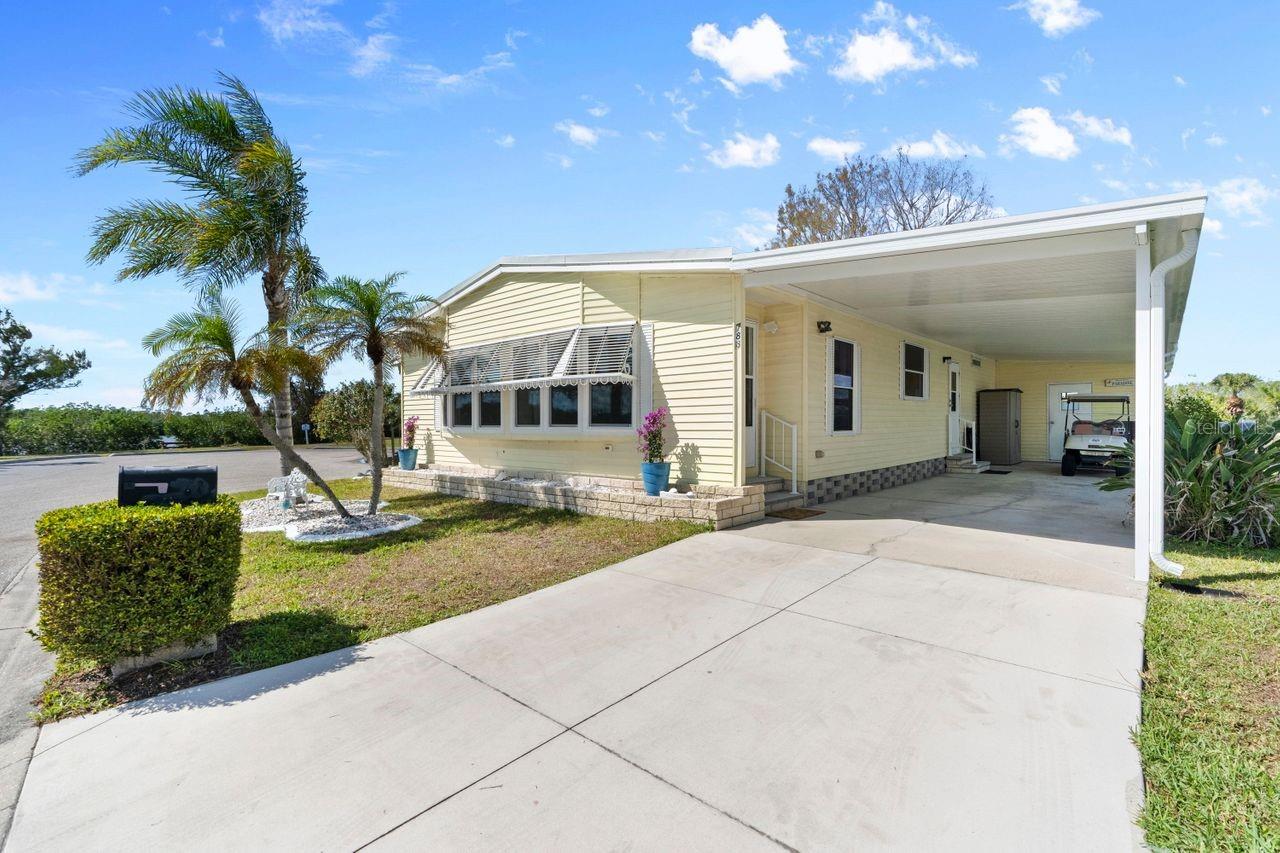 This is the LOCATION YOU HAVE BEEN WAITING FOR! Breathtaking water views of the Myakka River from this 2 bedroom, 2 bathroom home that backs to a lake, providing water views from every window in the house! Located in the 55+ community of Harbor Cove, this rare find is approximately 1,396 SF with an additional 272 SF west-facing lanai. Watch wading birds glide across the water every evening on their way to nesting grounds -- a spectacle that adds magic to your everyday life. View glorious sunsets, and as the last house on the street, nothing will block your view. Launch a kayak or rent a boat slip at the marina for only $100 per year and explore scenic waterways all the way to the Gulf! Inside, find a large open layout with cathedral ceilings and lovely natural light thanks to some new PGT windows in the living room plus multiple new skylights. The roomy kitchen has plenty of counter space and cabinetry, plus a pantry. A sizeable primary suite contains a walk-in closet and French doors leading to the ensuite bathroom with large jacuzzi tub and walk-in shower. The guest room has sliding doors directly to the lanai and the hall bath is nearby. The small bonus room has a storage closet and handy desk area. Lots of parking space on the long driveway with carport and a shed with washer and dryer. The quality furnishings and golf cart are included in the sale and a new roof was just installed. The HOA fees are only $150 per month and include a Share, voting rights and access to incredible amenities including 2 swimming pools, spa, huge 2 story clubhouse overlooking the 90-slip marina, fitness center and various sports leagues and courts. Socialize and make friends at dances, shows, picnics, outings, craft classes, woodworking, etc. Located near shopping, dining, hospitals, parks, golf, spring training baseball stadiums and more. This property is surrounded by nature and is truly enchanting. Come and experience it for yourself!