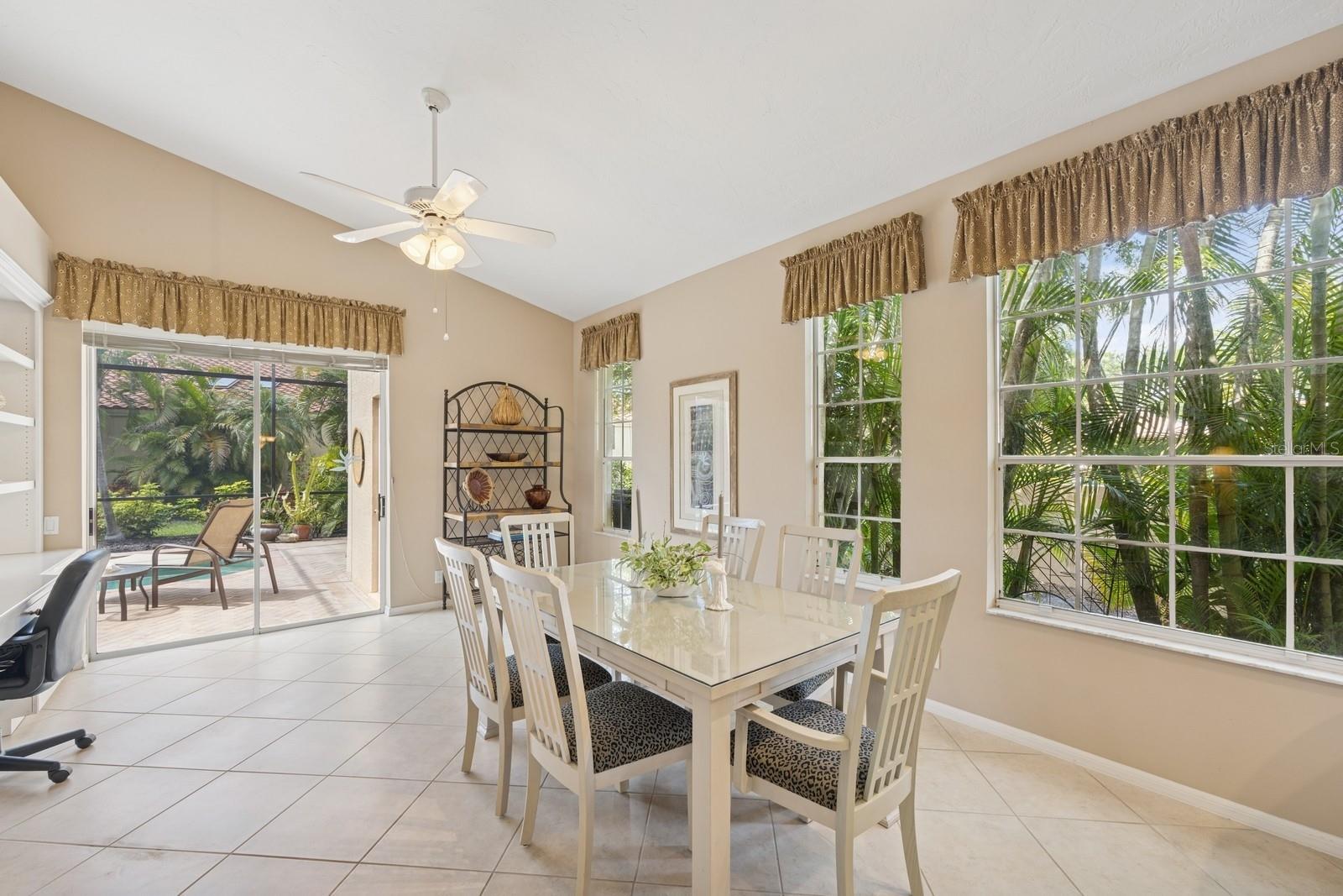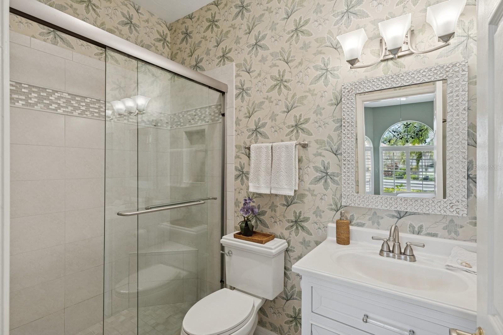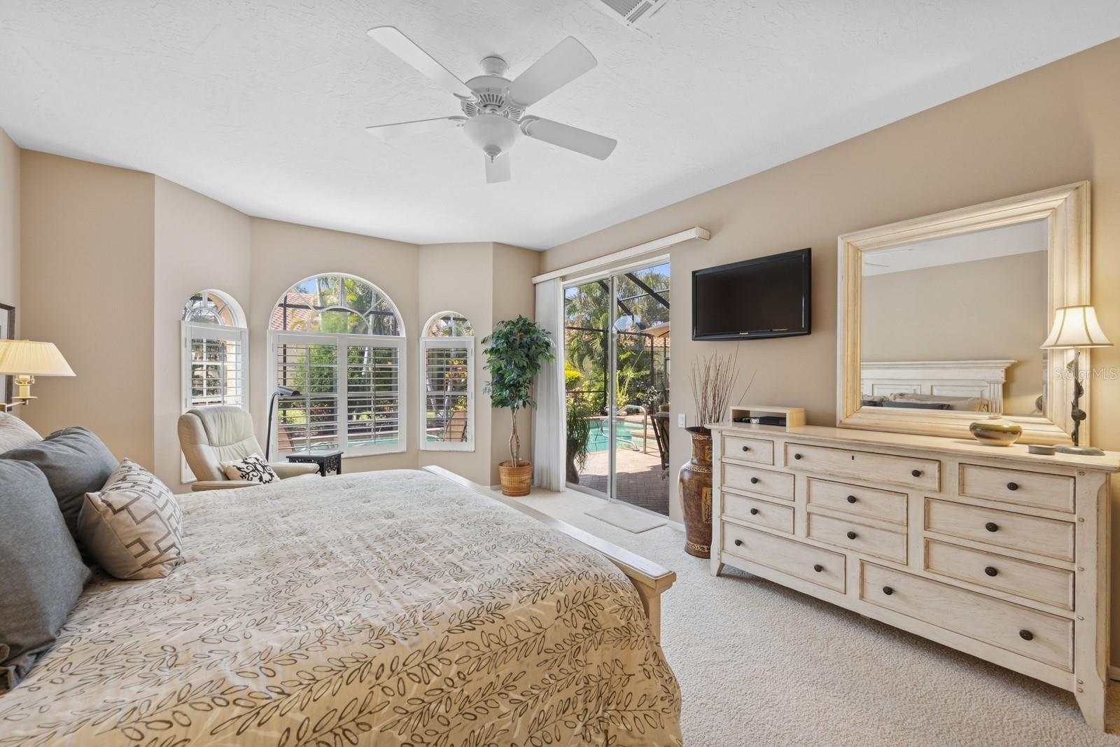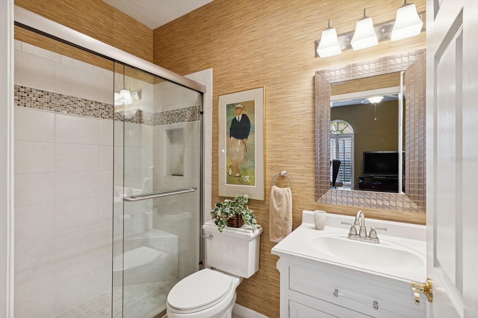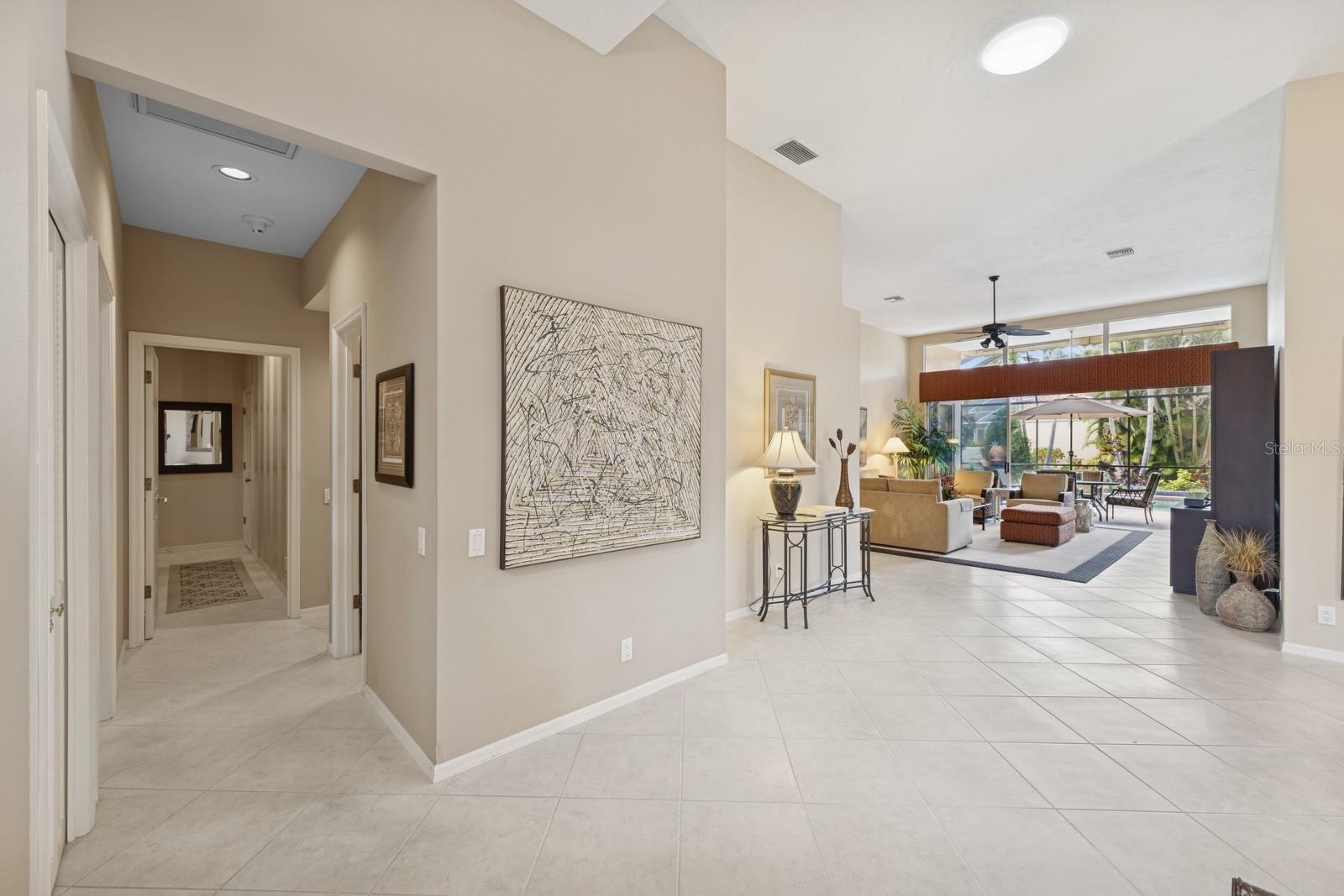 Welcome to Villa Fiore! This residence nestled in the upscale golf club community of TPC Prestancia offers a vibrant lifestyle in a peaceful and intimate environment. Discover the perfect blend of classic charm and modern comfort in this custom built one-story single home presenting over 2700 square feet of living space. Designed with elegant architectural details and soaring ceilings, this home offers a warm and inviting ambiance with a layout that flows effortlessly for both everyday living and entertaining. The kitchen with granite countertops and stainless appliances (new dishwasher and microwave) opens towards the family room. With the spacious living room featuring a wet bar and the dining room, you can easily entertain family and guests. The spacious owner's suite opens toward the lanai and offers ample walk-in closets and plantation shutters. Each of the two guest bedrooms is ensuite, with renovated bathrooms and new flooring and provides ultimate comfort and privacy. The description would not be complete without talking about the expansive lanai showcasing the sparkling heated pool, creating a perfect outdoor retreat in this backyard surrounded by walls on two sides. With a pool bathroom, lawn behind the lanai, and shade at your convenience with the automated awning, you will be pleasantly surprised by this outdoor living space! Laundry and a two-car garage complete this property. The home is extremely well maintained with a tile roof of 2013, an air conditioning unit of 2018 and a newer pool heater. The property was entirely repiped in 2005. With this Mediterranean-inspired home you get the chance to live in a "free maintenance" small community. Bring your imagination to personalize this home to your taste. Offered turnkey, this home is centrally located near Siesta Beach, downtown Sarasota, fine dining and Arts scenes, Sarasota Airport, Sarasota Memorial Hospital. Legacy Trail, Fitness, tennis club and pickleball facilities are minutes away. Bike, jog, walk in this Audubon sanctuary or enjoy two 18-hole golf courses at TPC Golf Club (several memberships are available and optional) and make new friends in this vibrant community. Make your appointment for a private showing! 3D Tour and floorplan available.