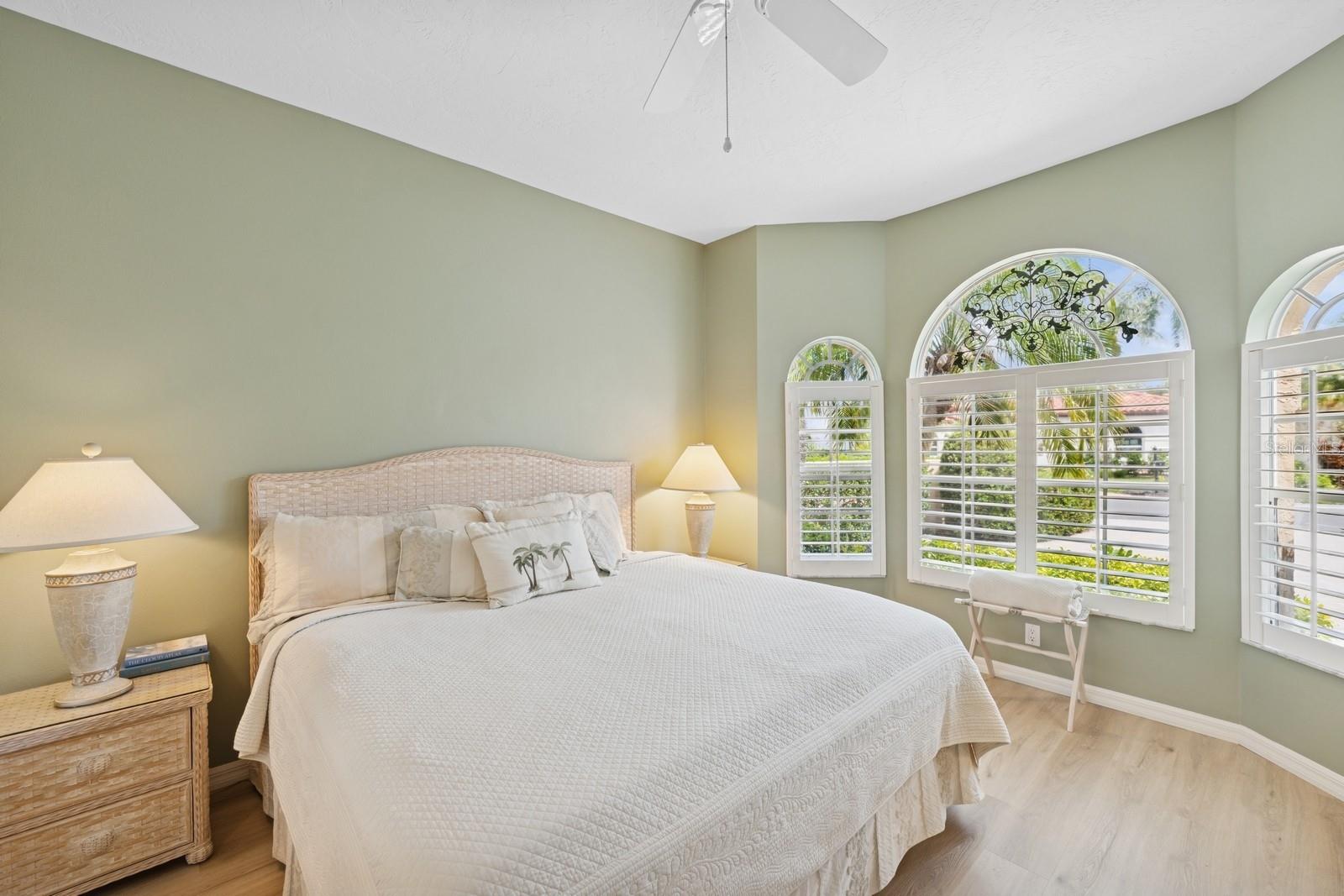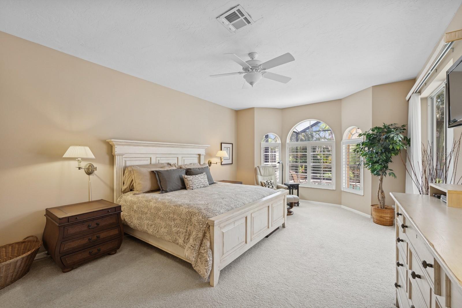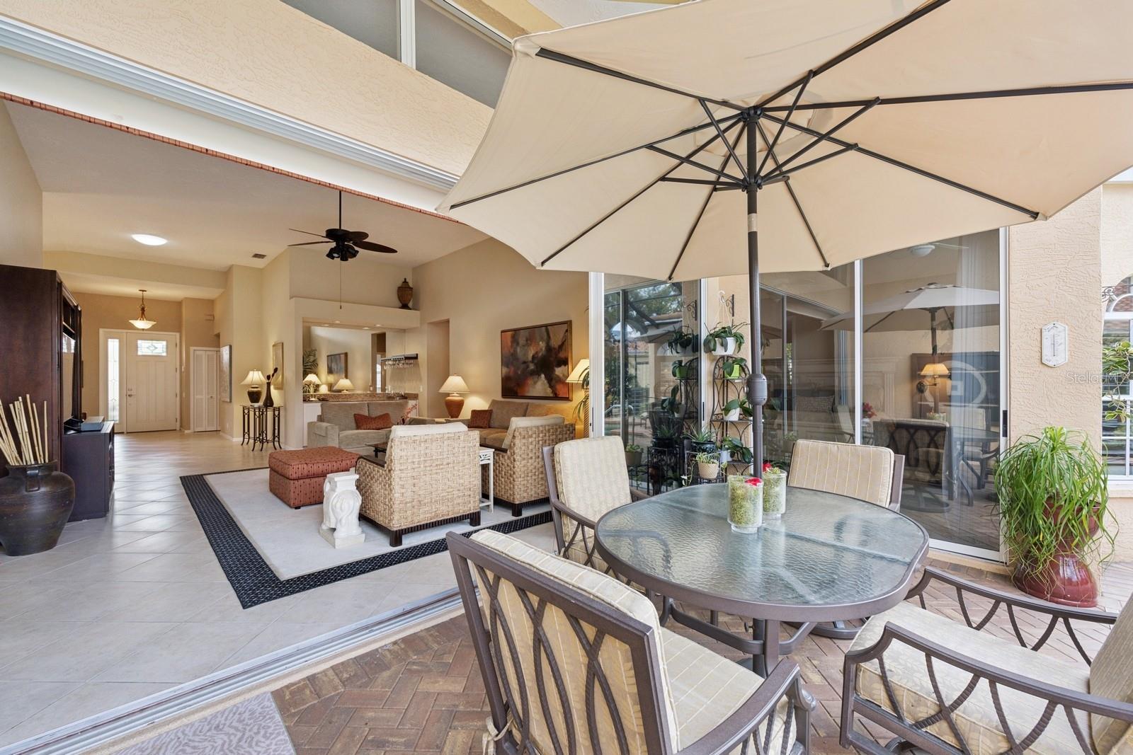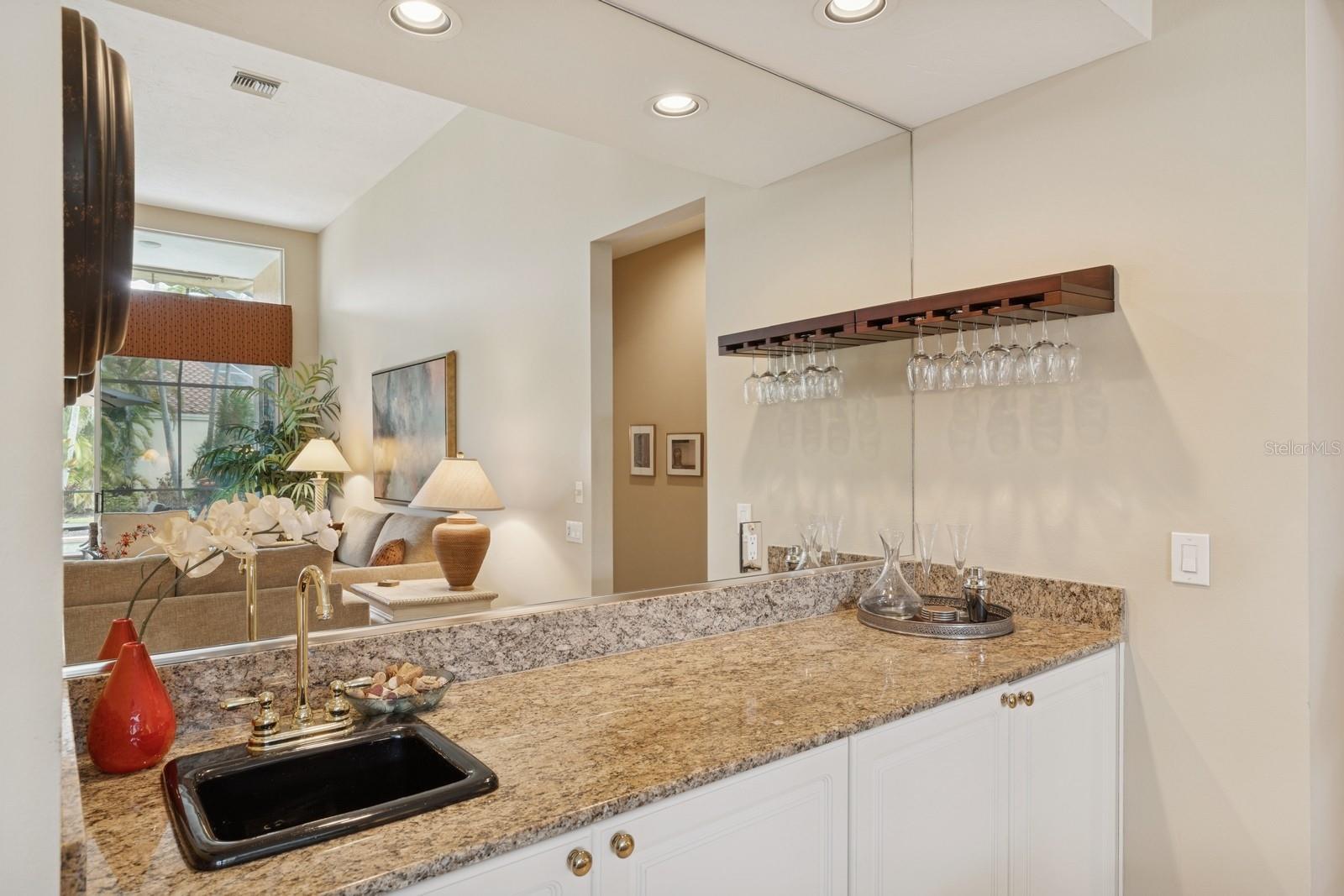 Welcome to Villa Fiore! This residence nestled in the upscale golf club community of TPC Prestancia offers a vibrant lifestyle in a peaceful and intimate environment. Discover the perfect blend of classic charm and modern comfort in this custom built one-story single home presenting over 2700 square feet of living space. Designed with elegant architectural details and soaring ceilings, this home offers a warm and inviting ambiance with a layout that flows effortlessly for both everyday living and entertaining. The kitchen with granite countertops and stainless appliances (new dishwasher and microwave) opens towards the family room. With the spacious living room featuring a wet bar and the dining room, you can easily entertain family and guests. The spacious owner's suite opens toward the lanai and offers ample walk-in closets and plantation shutters. Each of the two guest bedrooms is ensuite, with renovated bathrooms and new flooring and provides ultimate comfort and privacy. The description would not be complete without talking about the expansive lanai showcasing the sparkling heated pool, creating a perfect outdoor retreat in this backyard surrounded by walls on two sides. With a pool bathroom, lawn behind the lanai, and shade at your convenience with the automated awning, you will be pleasantly surprised by this outdoor living space! Laundry and a two-car garage complete this property. The home is extremely well maintained with a tile roof of 2013, an air conditioning unit of 2018 and a newer pool heater. The property was entirely repiped in 2005. With this Mediterranean-inspired home you get the chance to live in a "free maintenance" small community. Bring your imagination to personalize this home to your taste. Offered turnkey, this home is centrally located near Siesta Beach, downtown Sarasota, fine dining and Arts scenes, Sarasota Airport, Sarasota Memorial Hospital. Legacy Trail, Fitness, tennis club and pickleball facilities are minutes away. Bike, jog, walk in this Audubon sanctuary or enjoy two 18-hole golf courses at TPC Golf Club (several memberships are available and optional) and make new friends in this vibrant community. Make your appointment for a private showing! 3D Tour and floorplan available.