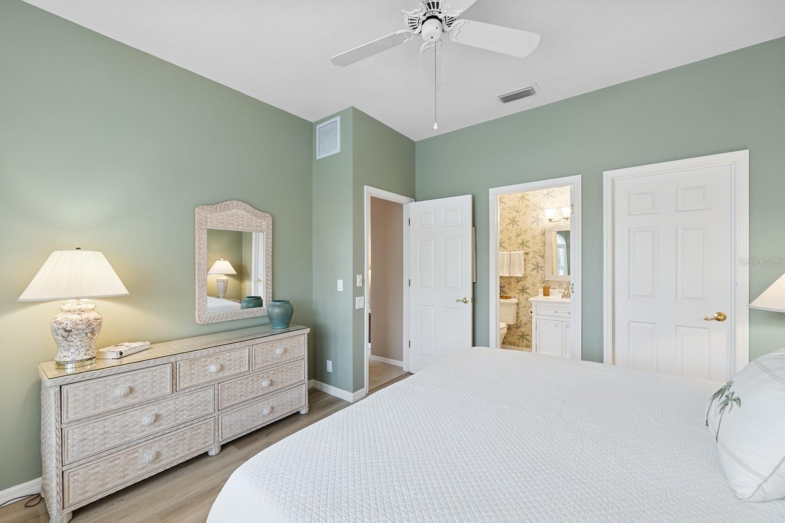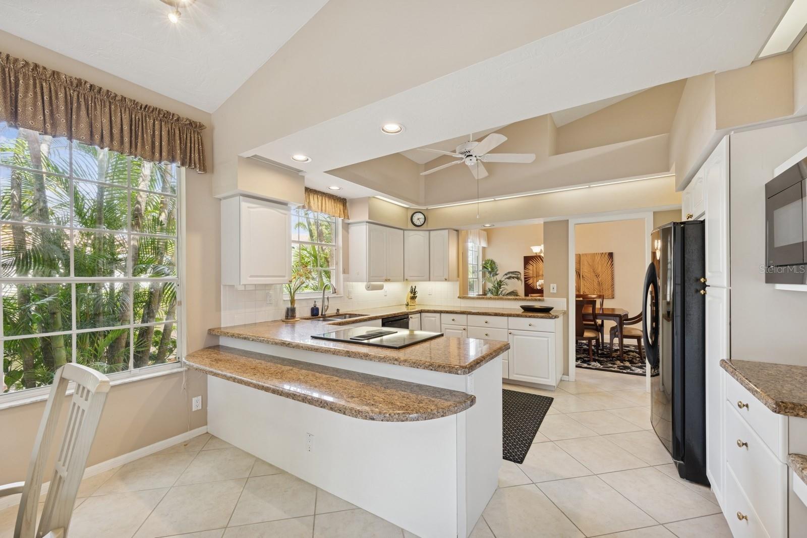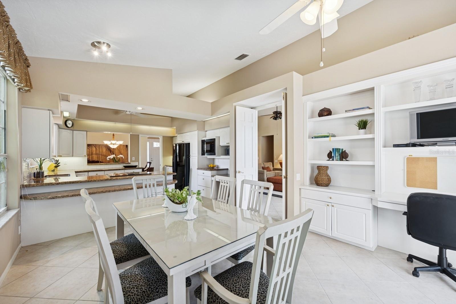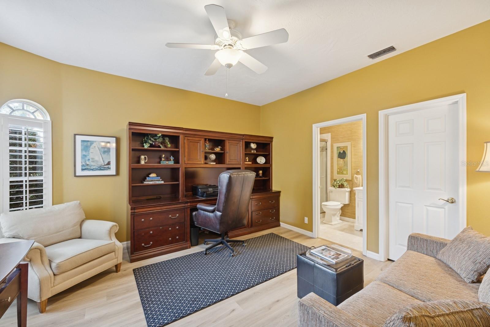Welcome to Villa Fiore! This residence nestled in the upscale golf club community of TPC Prestancia offers a vibrant lifestyle in a peaceful and intimate environment. Discover the perfect blend of classic charm and modern comfort in this custom built one-story single home presenting over 2700 square feet of living space. Designed with elegant architectural details and soaring ceilings, this home offers a warm and inviting ambiance with a layout that flows effortlessly for both everyday living and entertaining. The kitchen with granite countertops and stainless appliances (new dishwasher and microwave) opens towards the family room. With the spacious living room featuring a wet bar and the dining room, you can easily entertain family and guests. The spacious owner's suite opens toward the lanai and offers ample walk-in closets and plantation shutters. Each of the two guest bedrooms is ensuite, with renovated bathrooms and new flooring and provides ultimate comfort and privacy. The description would not be complete without talking about the expansive lanai showcasing the sparkling heated pool, creating a perfect outdoor retreat in this backyard surrounded by walls on two sides. With a pool bathroom, lawn behind the lanai, and shade at your convenience with the automated awning, you will be pleasantly surprised by this outdoor living space! Laundry and a two-car garage complete this property. The home is extremely well maintained with a tile roof of 2013, an air conditioning unit of 2018 and a newer pool heater. The property was entirely repiped in 2005. With this Mediterranean-inspired home you get the chance to live in a "free maintenance" small community. Bring your imagination to personalize this home to your taste. Offered turnkey, this home is centrally located near Siesta Beach, downtown Sarasota, fine dining and Arts scenes, Sarasota Airport, Sarasota Memorial Hospital. Legacy Trail, Fitness, tennis club and pickleball facilities are minutes away. Bike, jog, walk in this Audubon sanctuary or enjoy two 18-hole golf courses at TPC Golf Club (several memberships are available and optional) and make new friends in this vibrant community. Make your appointment for a private showing! 3D Tour and floorplan available.