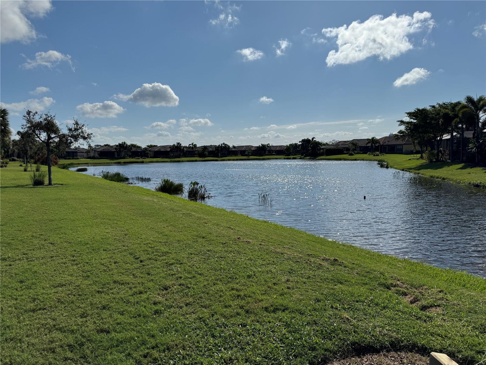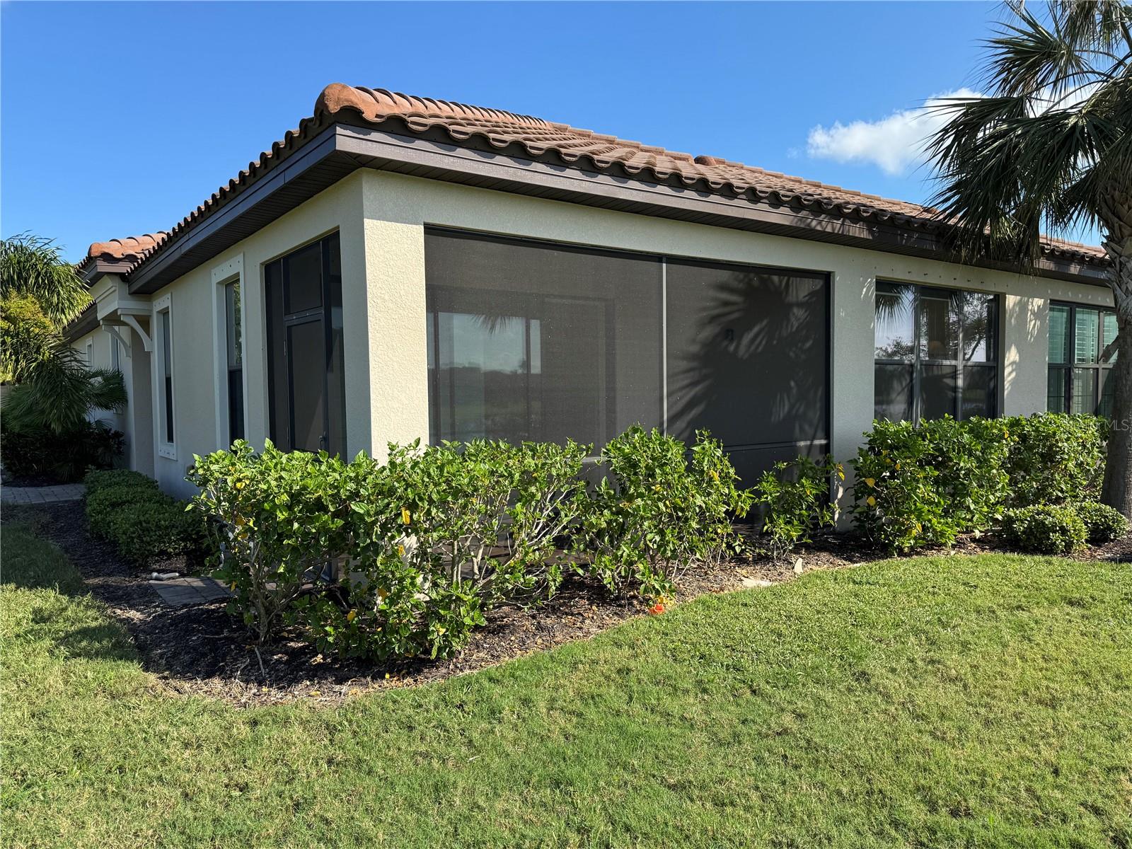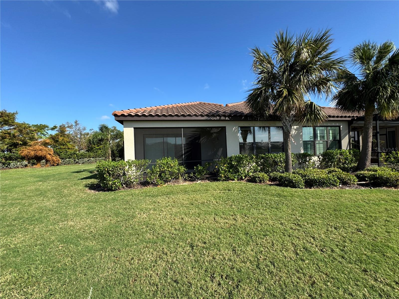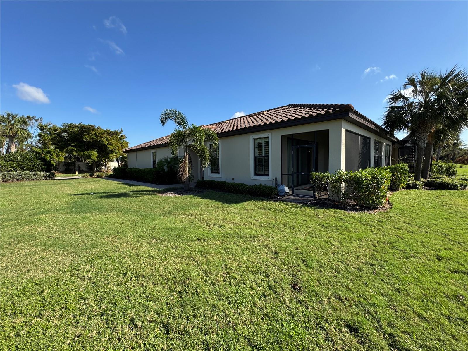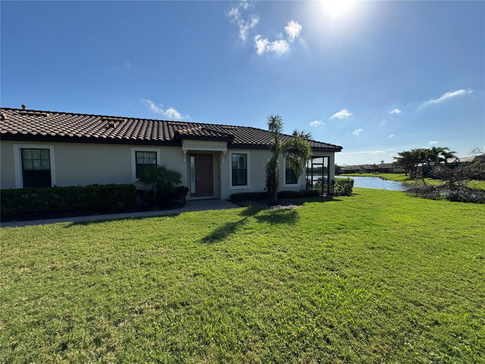 Lowest priced 3 bedroom Villa at this time, don't miss out on this great opportunity. One of the best locations within the Esplanade by Siesta Key. End unit, lake view, located at the end of a cul-de-sac and adjacent open space. This 3-bedroom 2 bath with an office or den is ready for immediate occupancy. The home has 1886 sq ft of living space, with a screened covered porch enclosure overlooking the large lake. The large open floor plan includes the living room with tray ceilings and custom plantation shutters. The kitchen and dining areas make it great for entertaining. The custom kitchen is equipped with all stainless-steel appliances and a six-burner gas range. Beautiful custom cabinets, granite countertops with travertine backsplash. The primary suite overlooks the lake with 3 large windows allowing the natural light in, or use the motorized shades for privacy. The primary bath has dual sinks with a makeup area, and a large walk-in shower with bench. Custom built-ins in the oversize closet should make everyone happy. The 2 additional bedrooms are split with the second bath with tub/shower. The office includes a large custom built-in desk. Great laundry area with folding counter and plenty of cabinet space. Large 2 car garage with an additional refrigerator, overhead storage and custom wall cabinets. DONT FORGET ABOUT THE 22KW GENERAC WHOLE HOUSE GENERATOR AND HURRICANE SHUTTERS. Over at the amenities center there is a large, beautiful resort style pool and hot tub. Lots of seating areas and outdoor grilling space, tennis court, bocce ball, pickle ball, a fully equipped gym with showers and restrooms, a rec room area with kitchen, sitting area, dining tables, a TV, pool table etc. The Esplanade is so close to Siesta Key beaches you can smell the salt air. Many great restaurants and shopping are just minutes away. Easy access with 2 entrances available. Time to enjoy the maintenance free lifestyle, you won't be disappointed...