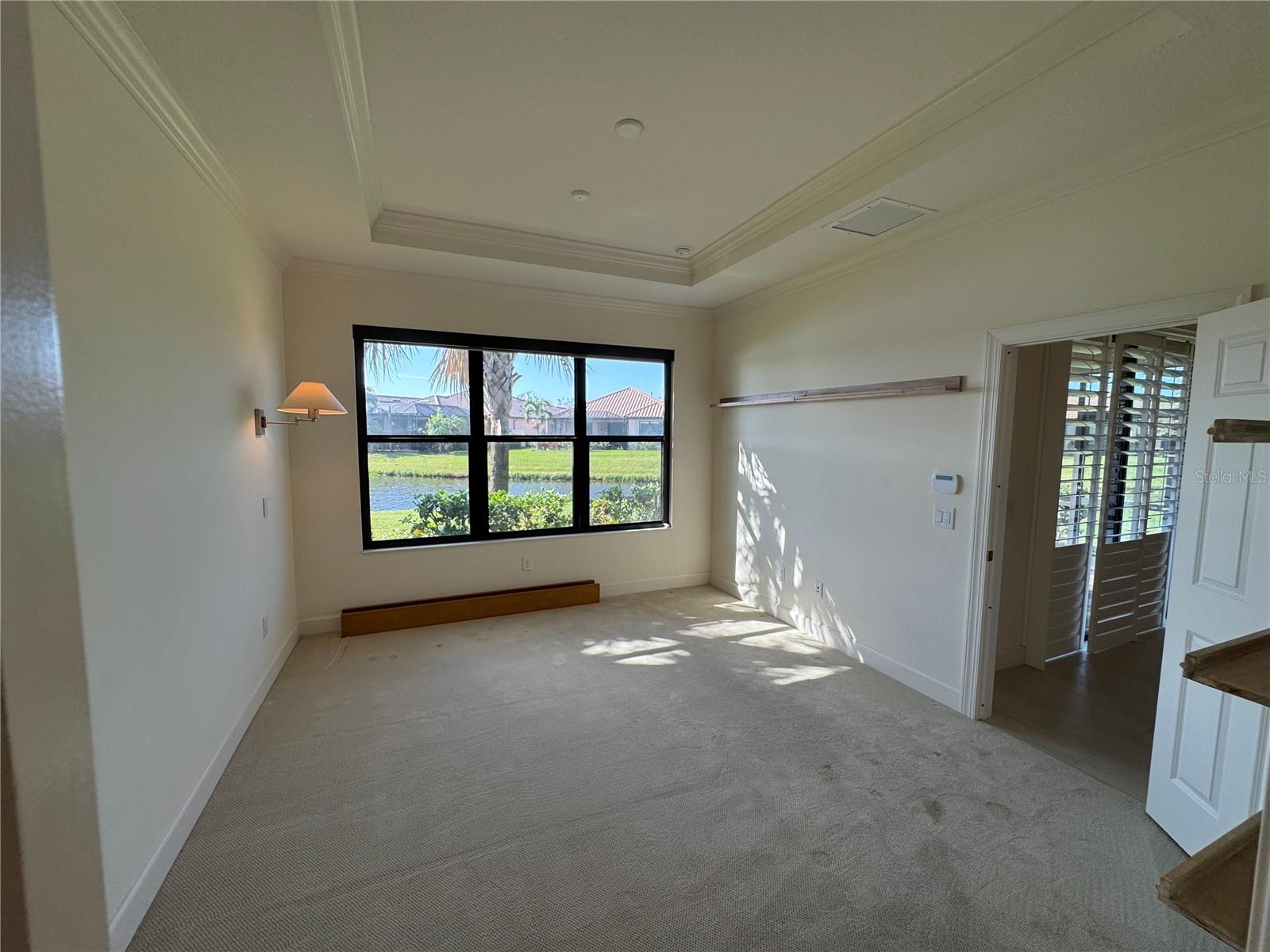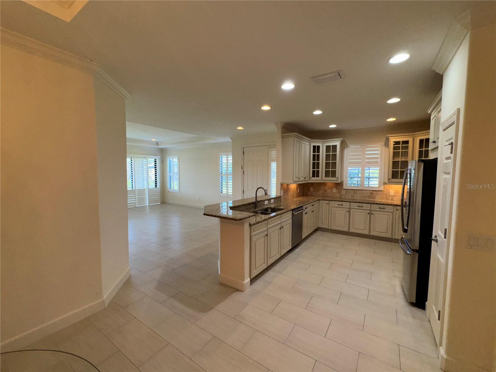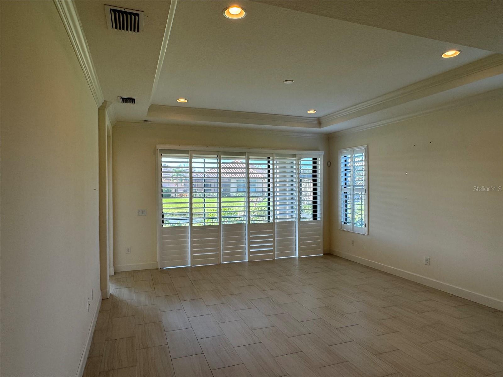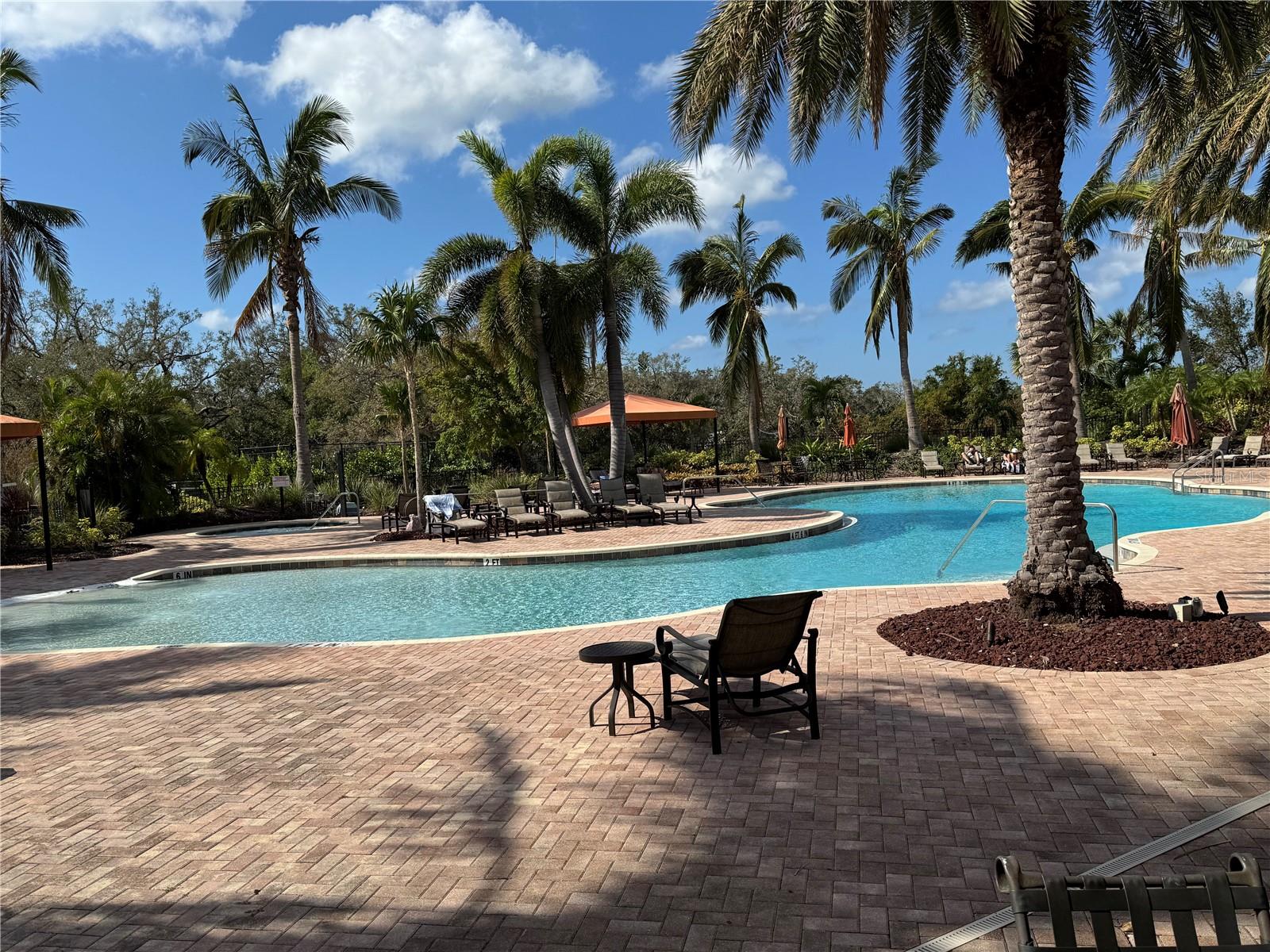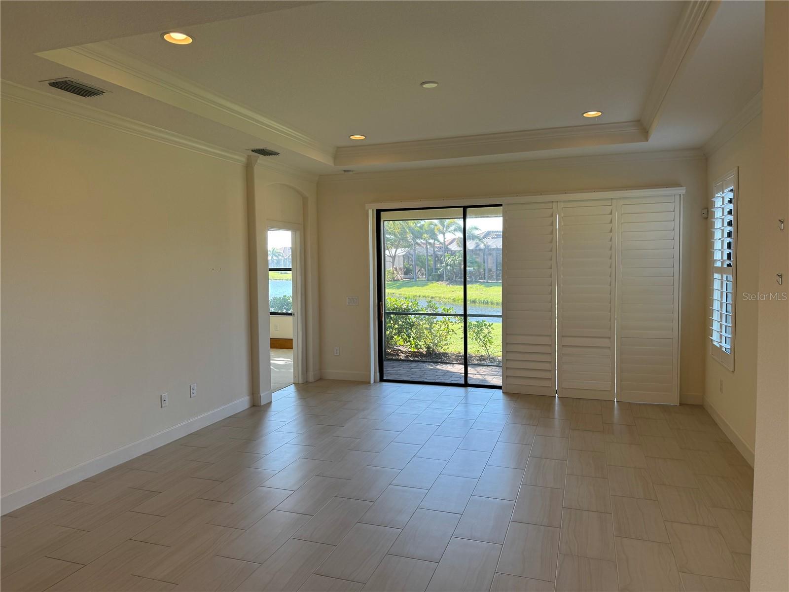 Lowest priced 3 bedroom Villa at this time, don't miss out on this great opportunity. One of the best locations within the Esplanade by Siesta Key. End unit, lake view, located at the end of a cul-de-sac and adjacent open space. This 3-bedroom 2 bath with an office or den is ready for immediate occupancy. The home has 1886 sq ft of living space, with a screened covered porch enclosure overlooking the large lake. The large open floor plan includes the living room with tray ceilings and custom plantation shutters. The kitchen and dining areas make it great for entertaining. The custom kitchen is equipped with all stainless-steel appliances and a six-burner gas range. Beautiful custom cabinets, granite countertops with travertine backsplash. The primary suite overlooks the lake with 3 large windows allowing the natural light in, or use the motorized shades for privacy. The primary bath has dual sinks with a makeup area, and a large walk-in shower with bench. Custom built-ins in the oversize closet should make everyone happy. The 2 additional bedrooms are split with the second bath with tub/shower. The office includes a large custom built-in desk. Great laundry area with folding counter and plenty of cabinet space. Large 2 car garage with an additional refrigerator, overhead storage and custom wall cabinets. DONT FORGET ABOUT THE 22KW GENERAC WHOLE HOUSE GENERATOR AND HURRICANE SHUTTERS. Over at the amenities center there is a large, beautiful resort style pool and hot tub. Lots of seating areas and outdoor grilling space, tennis court, bocce ball, pickle ball, a fully equipped gym with showers and restrooms, a rec room area with kitchen, sitting area, dining tables, a TV, pool table etc. The Esplanade is so close to Siesta Key beaches you can smell the salt air. Many great restaurants and shopping are just minutes away. Easy access with 2 entrances available. Time to enjoy the maintenance free lifestyle, you won't be disappointed...