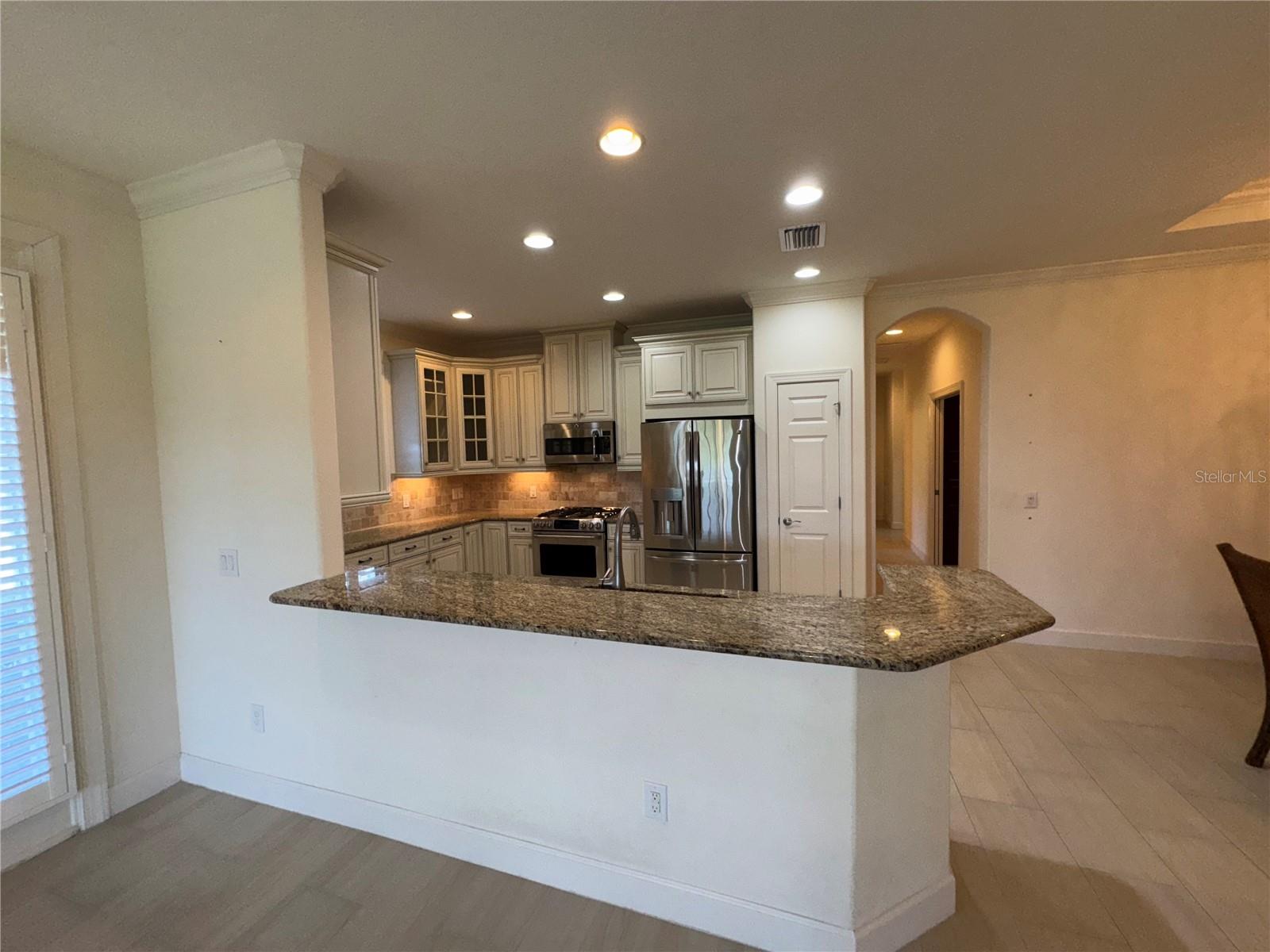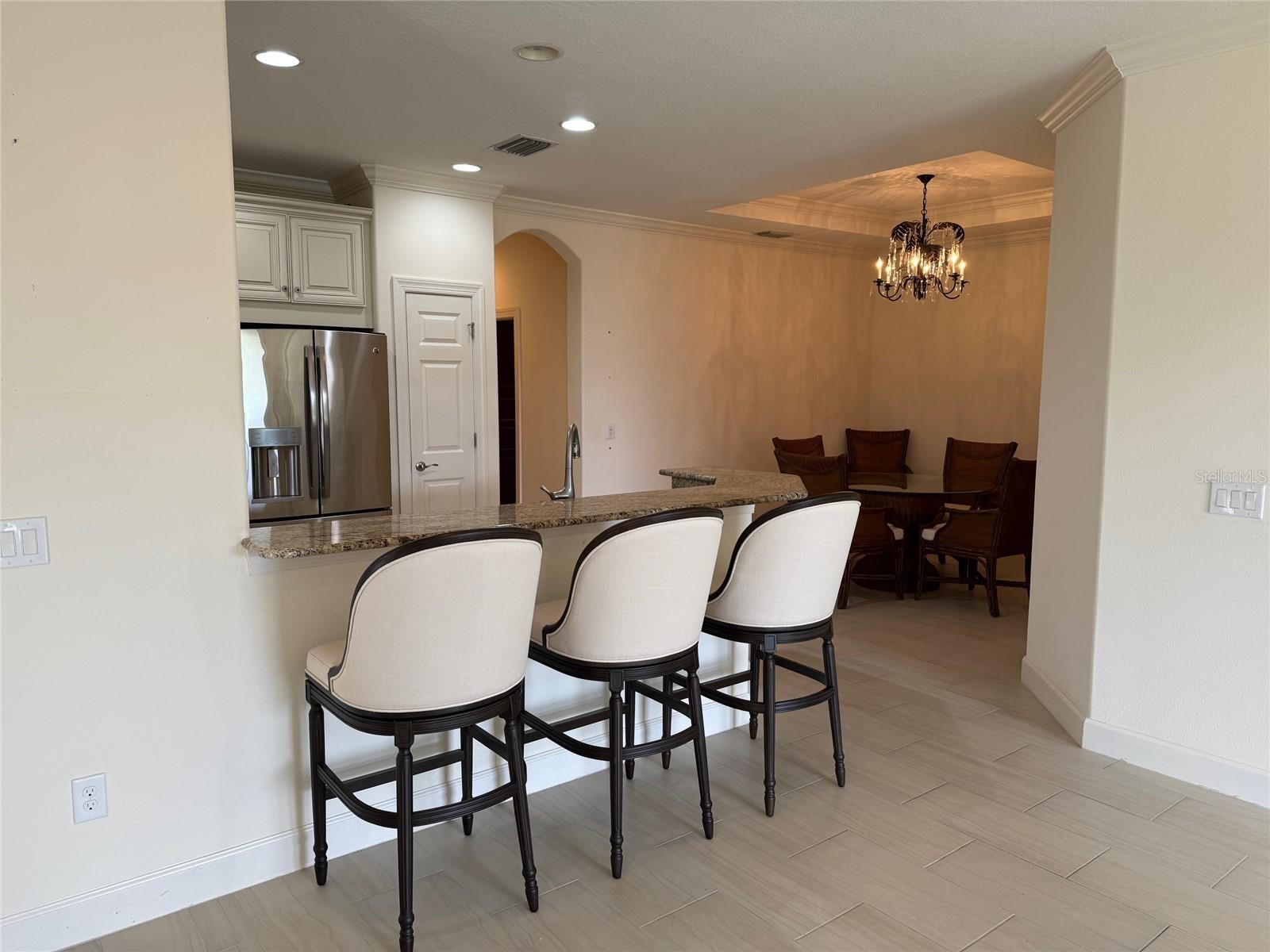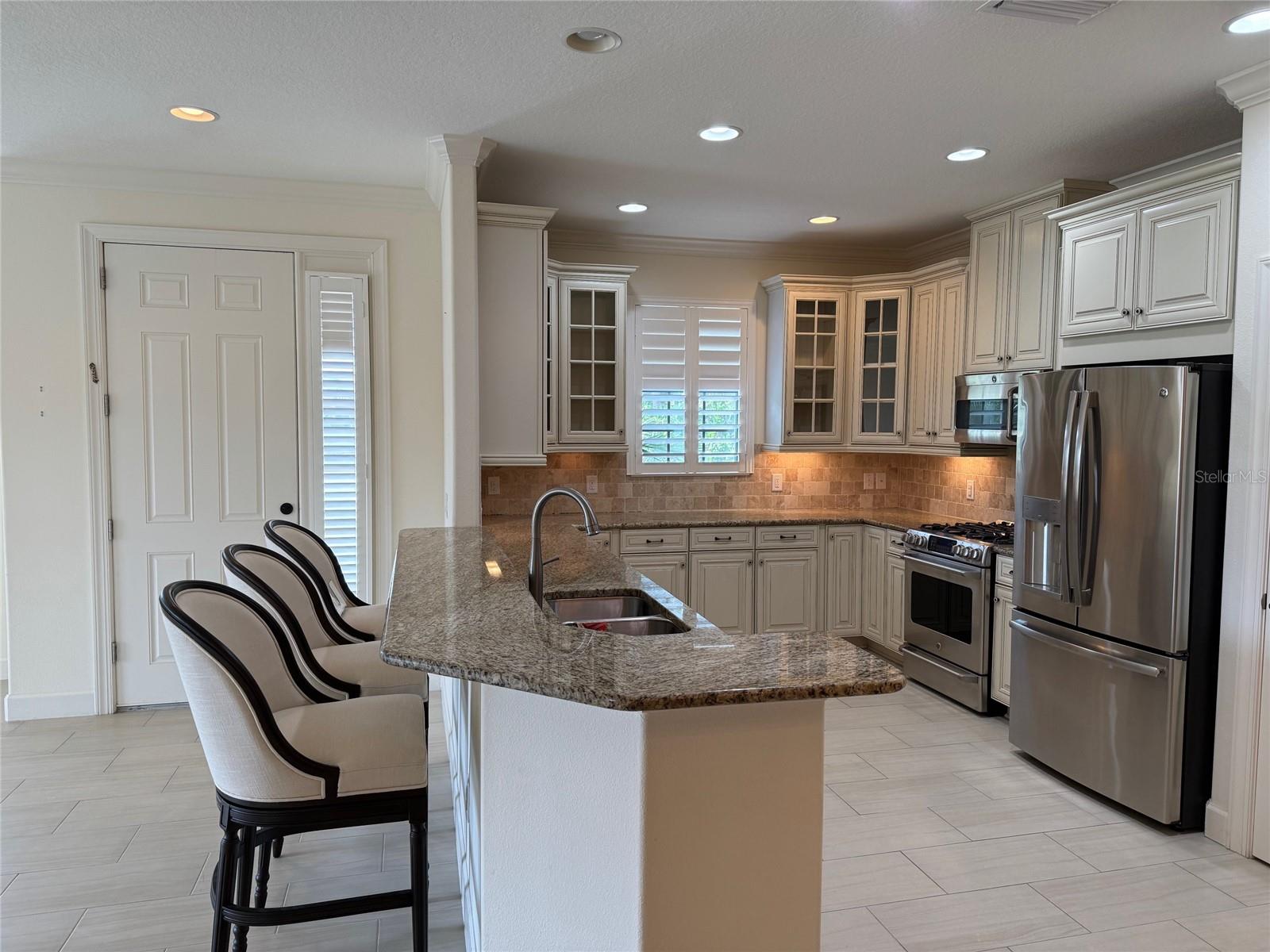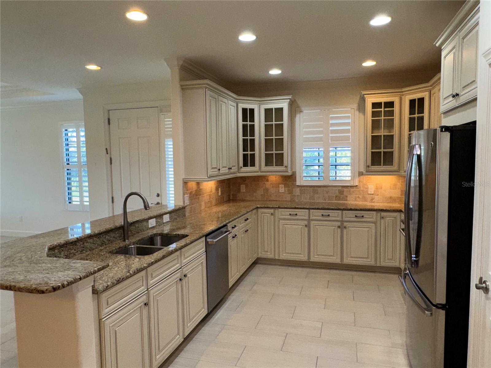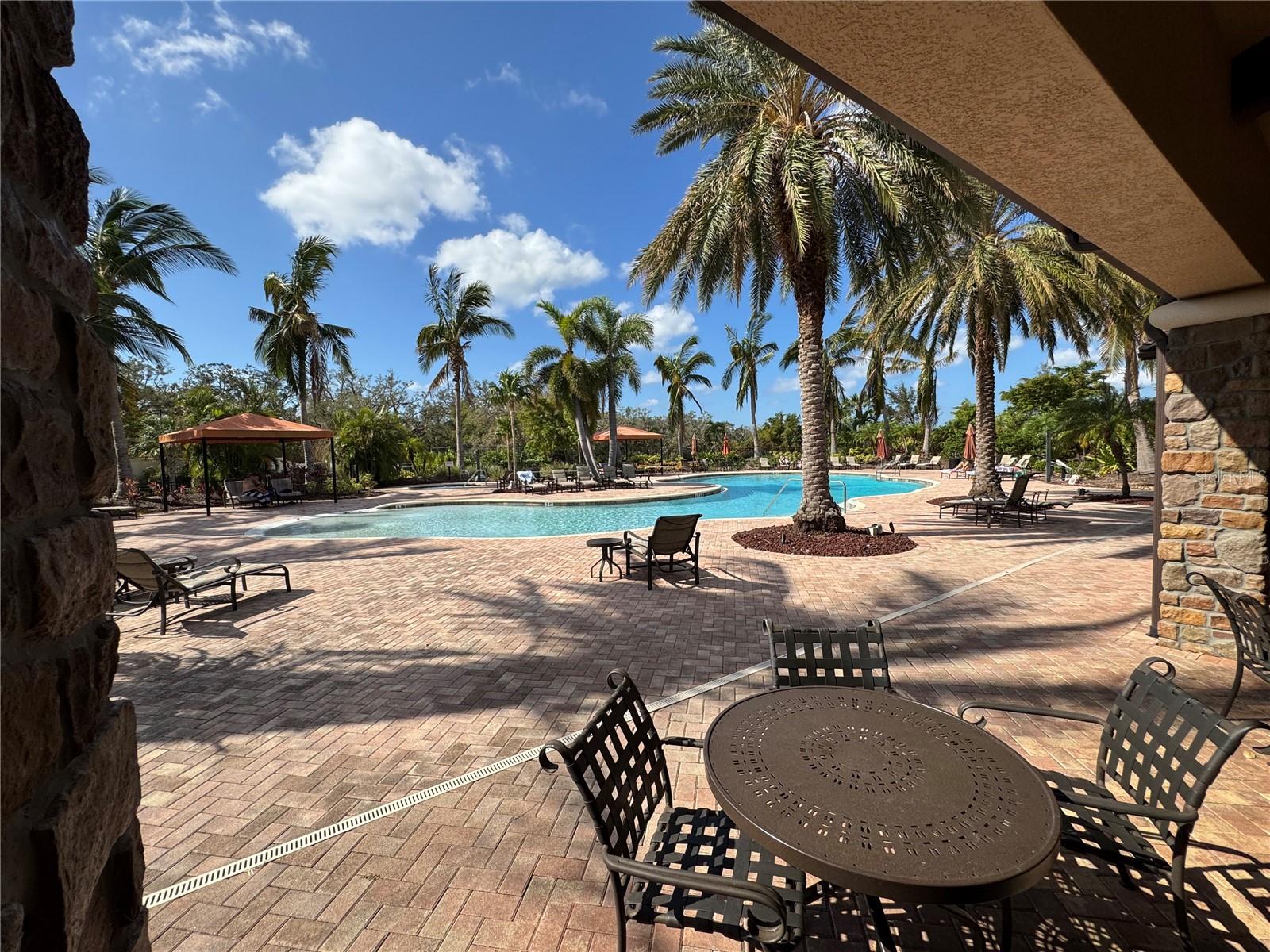 Lowest priced 3 bedroom Villa at this time, don't miss out on this great opportunity. One of the best locations within the Esplanade by Siesta Key. End unit, lake view, located at the end of a cul-de-sac and adjacent open space. This 3-bedroom 2 bath with an office or den is ready for immediate occupancy. The home has 1886 sq ft of living space, with a screened covered porch enclosure overlooking the large lake. The large open floor plan includes the living room with tray ceilings and custom plantation shutters. The kitchen and dining areas make it great for entertaining. The custom kitchen is equipped with all stainless-steel appliances and a six-burner gas range. Beautiful custom cabinets, granite countertops with travertine backsplash. The primary suite overlooks the lake with 3 large windows allowing the natural light in, or use the motorized shades for privacy. The primary bath has dual sinks with a makeup area, and a large walk-in shower with bench. Custom built-ins in the oversize closet should make everyone happy. The 2 additional bedrooms are split with the second bath with tub/shower. The office includes a large custom built-in desk. Great laundry area with folding counter and plenty of cabinet space. Large 2 car garage with an additional refrigerator, overhead storage and custom wall cabinets. DONT FORGET ABOUT THE 22KW GENERAC WHOLE HOUSE GENERATOR AND HURRICANE SHUTTERS. Over at the amenities center there is a large, beautiful resort style pool and hot tub. Lots of seating areas and outdoor grilling space, tennis court, bocce ball, pickle ball, a fully equipped gym with showers and restrooms, a rec room area with kitchen, sitting area, dining tables, a TV, pool table etc. The Esplanade is so close to Siesta Key beaches you can smell the salt air. Many great restaurants and shopping are just minutes away. Easy access with 2 entrances available. Time to enjoy the maintenance free lifestyle, you won't be disappointed...