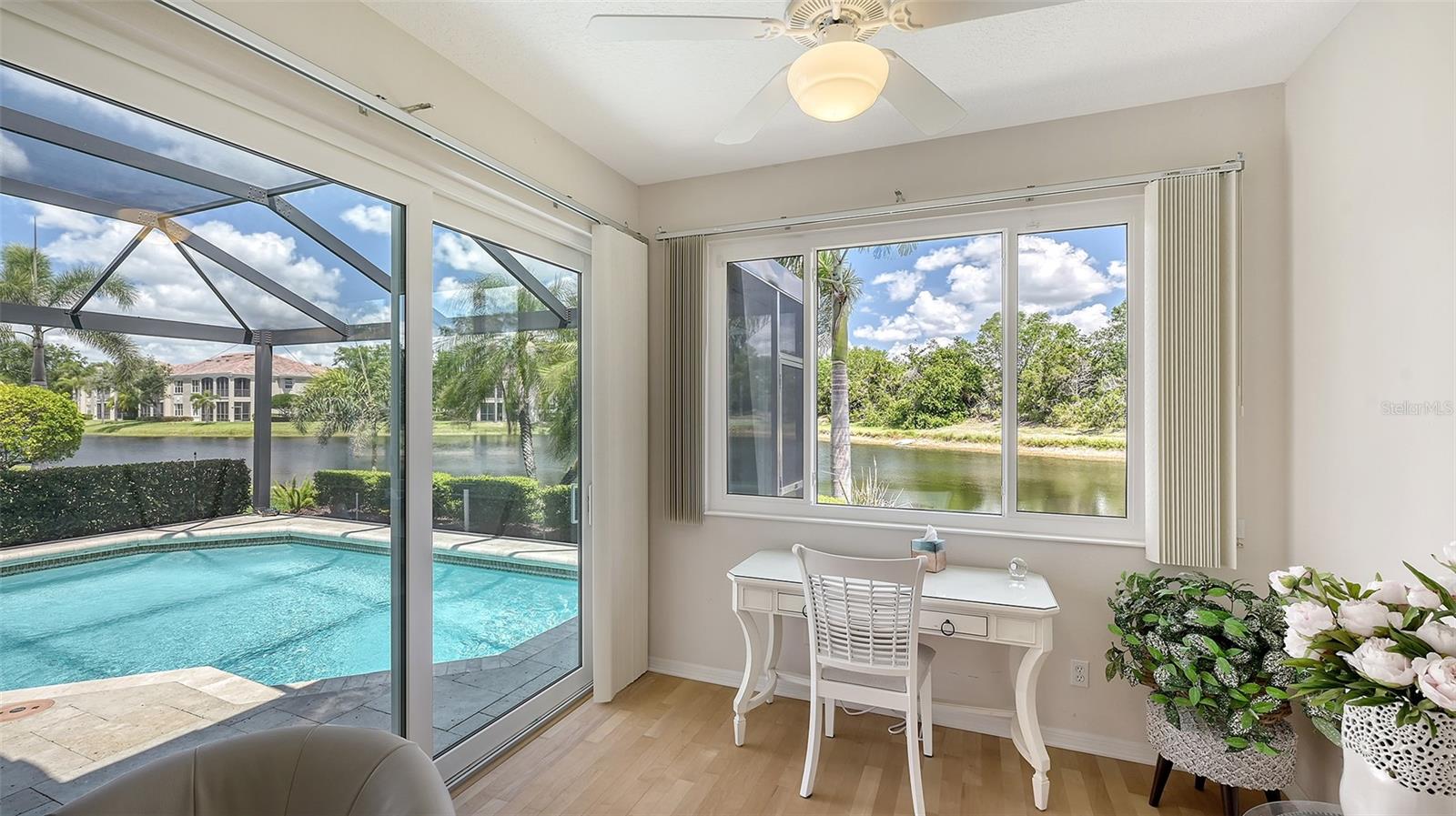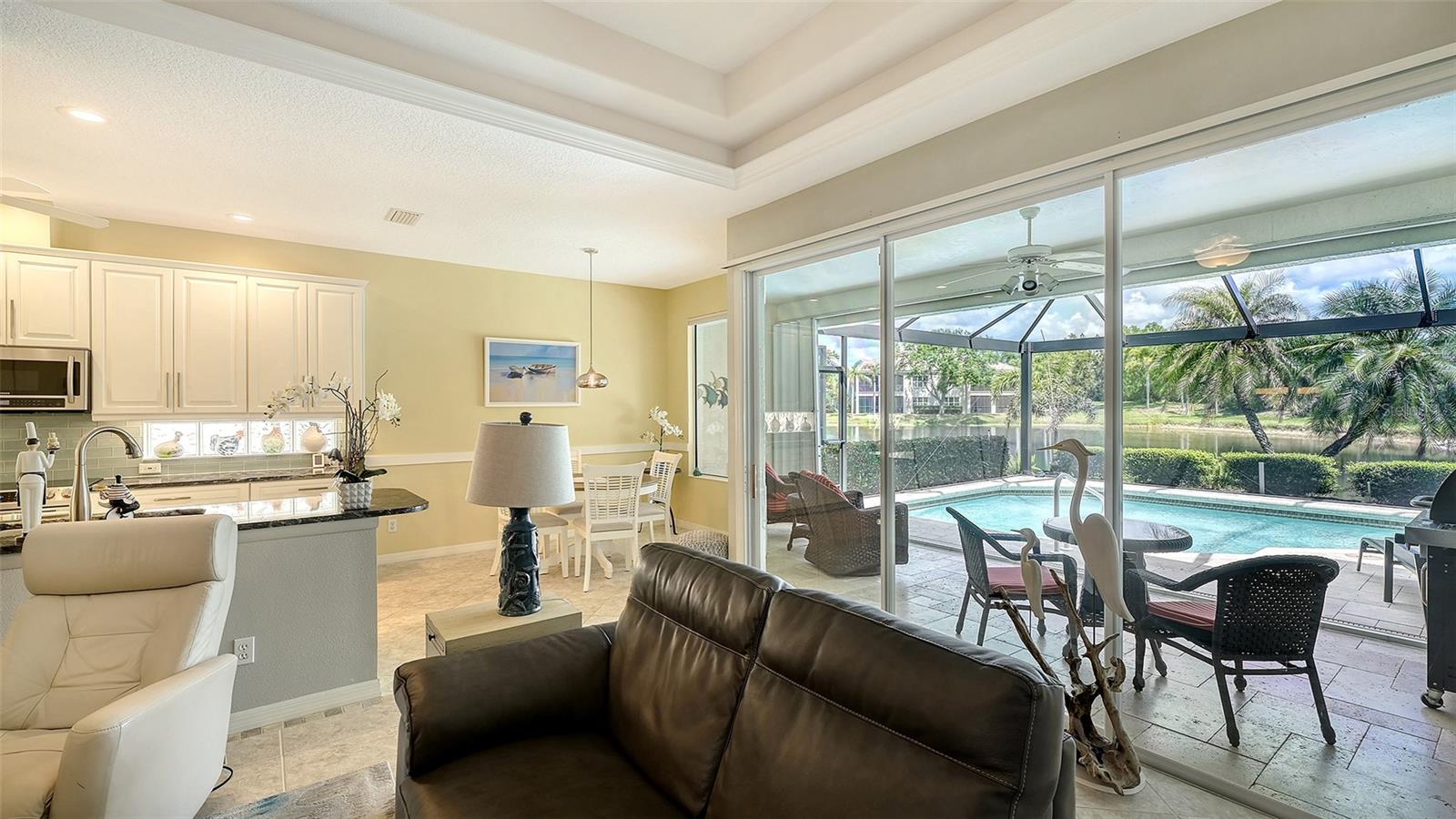 Lovely home built by Lee Wetherington in the maintenance free section of Turtle Rock called Somerset. This home has been exquisitely updated & boasts of 2041 sq. ft. under air with 3 bedrooms plus 2 baths, 3rd bedroom is currently used as a den. Upgrades include: New Tile roof in 2022, ecterior painted in 2021, refinished pool with Travertine pavers, gas pool heater about 3-4 yrs. old, new pool cage in 2019, AC is 3-4 yrs. old, new kitchen update in 2019 with new appliances & granite counters, master bedroom windows sliders, den & guest bedroom have been updated to impact. Nothing to do but move in. Community features; tennis, heated pool, basketball, tot yard, community kitchen & hall, 300 plus acres of nature preserves, lakes & nature trails* Located on Popular Palmer Ranch near world famous Siesta Key Beach, shopping, golf, restaurants, Legacy Bike Trail, YMCA & easy access to I-75